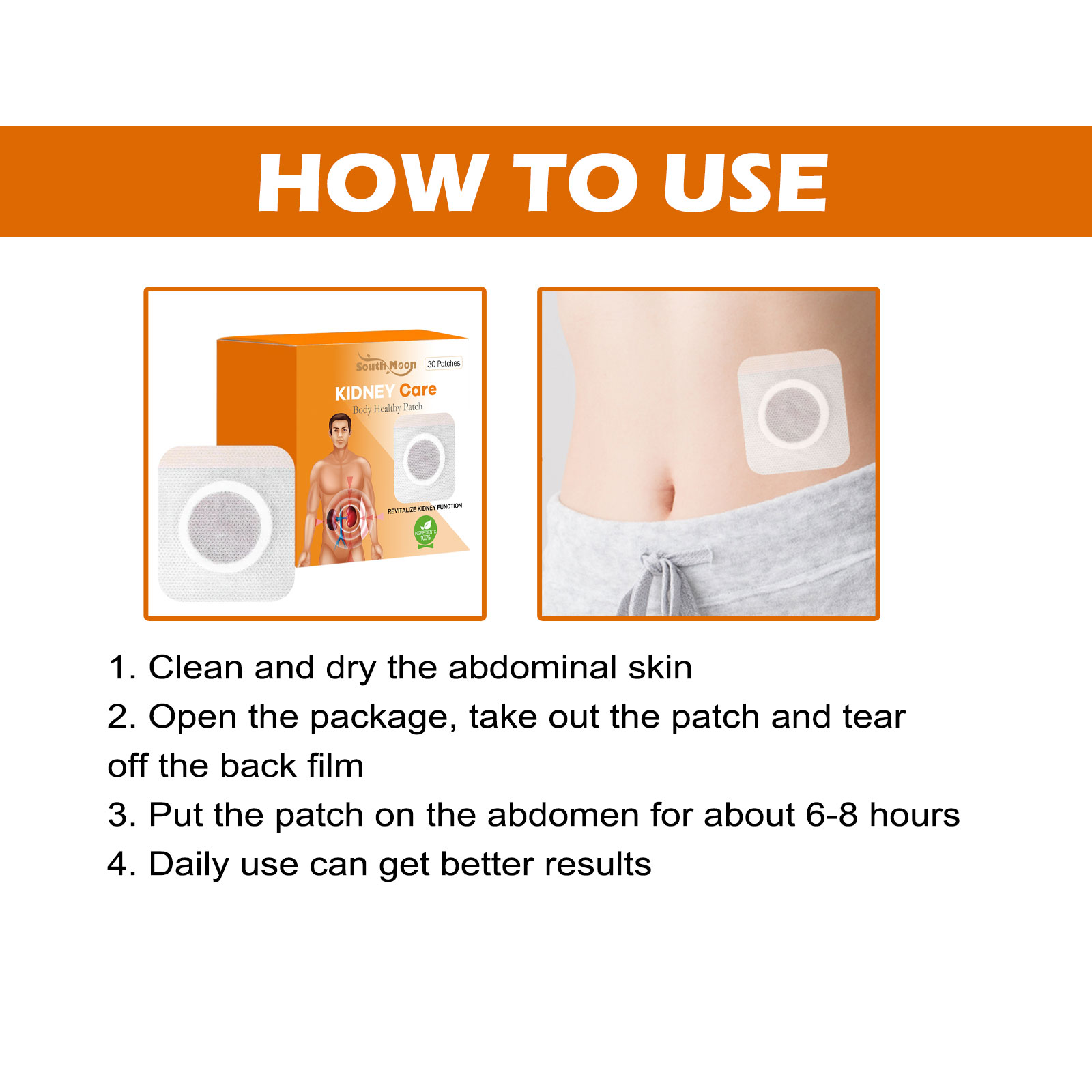 我们的身体护理贴片含有匙羹藤、生姜、当归。它可以缓解筋骨酸痛、腿部不适,消除僵硬,修复受损肌睫。它的使用方法很简单:清洁并擦干腹部皮肤,打开包装,取出贴片后撕掉背膜,将贴片贴在腹部,约6-8小时即可,日常使用可以得到更好的效果。可以很好解决由各种原因引起的关节、肌肉疼痛,包括劳损、挫伤、扭伤、拉伤或跌打损伤等问题。