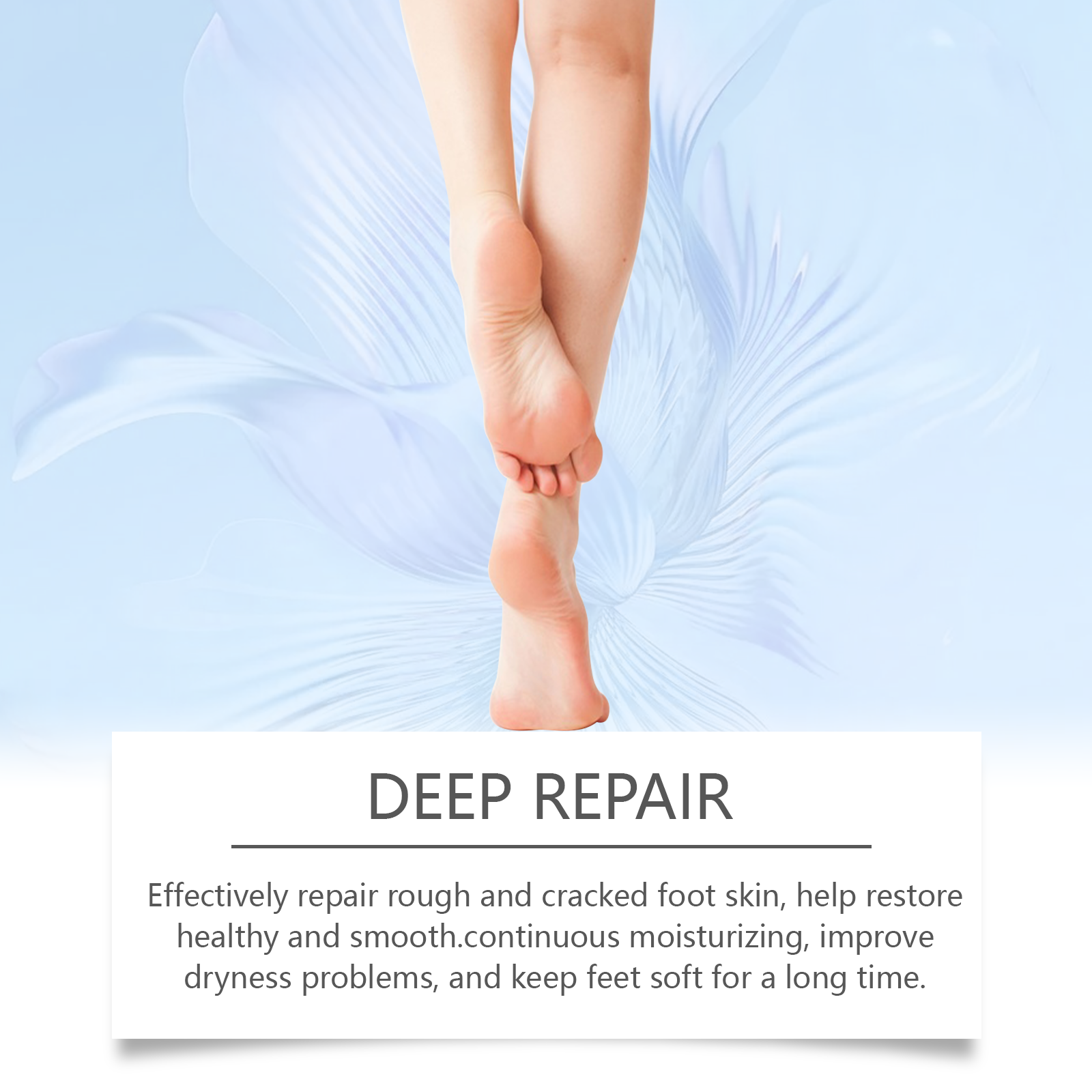 我们的尿素滋润足部修护霜含有芦荟叶提取物、水杨酸。它可以深层滋润,缓解干燥脚部,恢复柔软触感。它的使用方法很简单:清洁脚部皮肤并保持干燥,取适量的面霜,均匀涂抹在脚部皮肤上,轻轻打圈按摩,促进健康,并且可以修复龟裂和粗糙的皮肤,让您的双脚重新焕发活力。