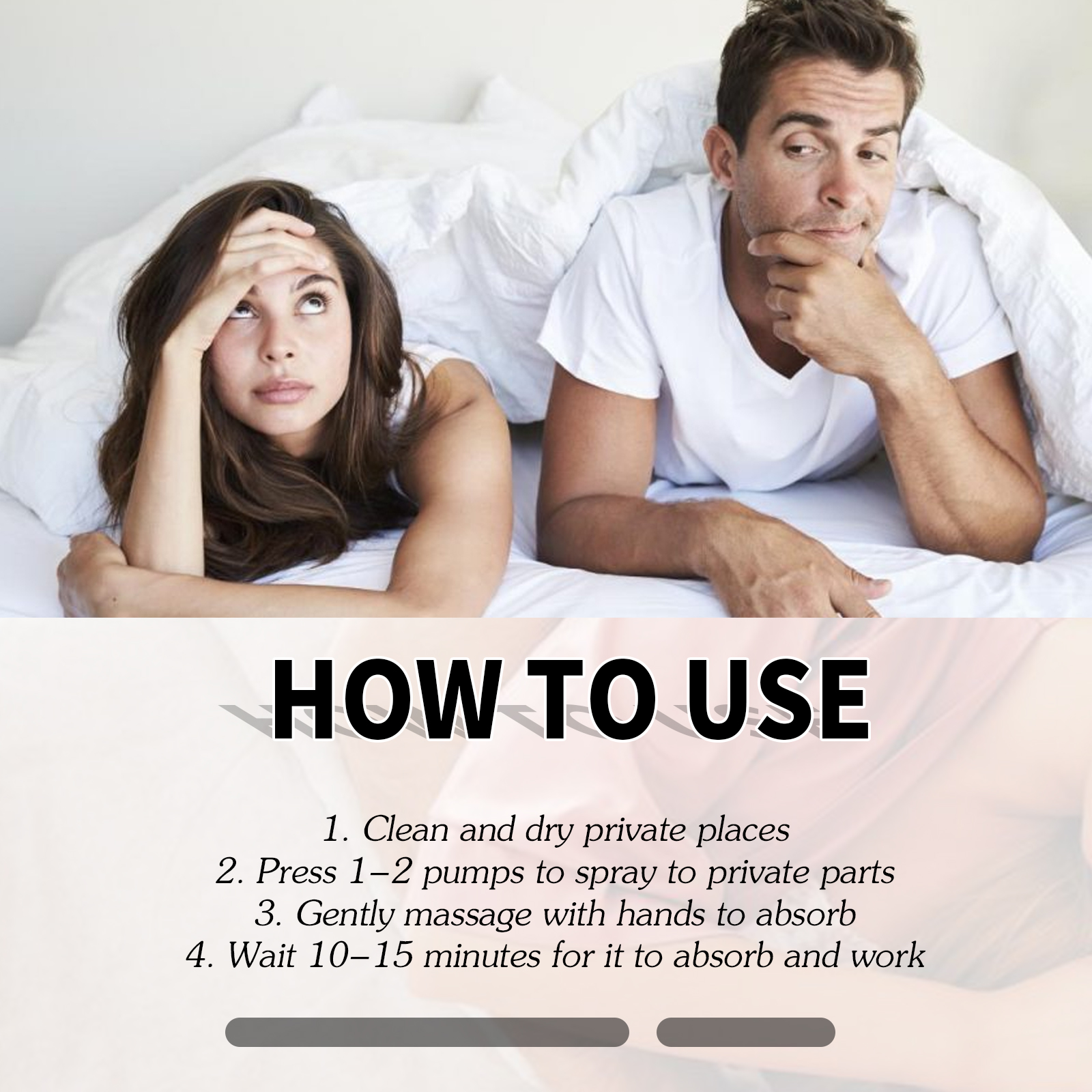 我们的男士护理喷雾,由甘油、尿囊素精心调配而成。专为增加性欲,获得更多的性高潮设计。使用方法极为便捷:1.清洁且干燥的私人区域,2.按 1 - 2 次按钮,对私密部位进行喷洒,3.用双手轻轻按摩以促进吸收,4.等待 10 到 15 分钟,让其充分吸收并发挥作用。并且可以提高硬度,降低敏感性。