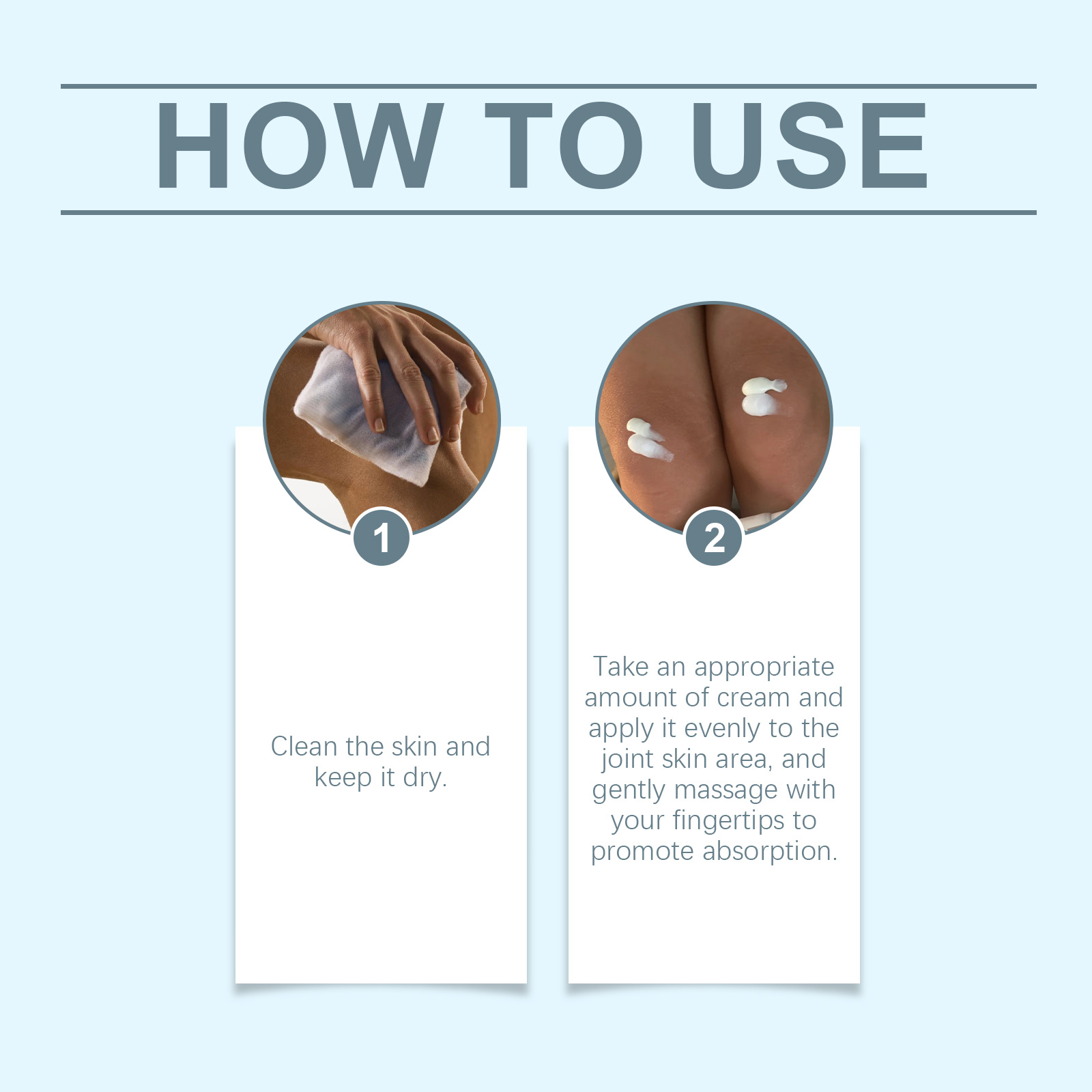 我们的关节护理霜,由矿油、甘油硬脂酸酯、卡波姆精心调配而成。专为渗透肌肤,恢复弹性和光泽设计。使用方法极为便捷:清洁皮肤,保持皮肤干燥,取适量乳霜均匀涂抹于关节皮肤区域,用指尖轻轻按摩,促进吸收。并且可以适合所有肤质,温和无刺激。