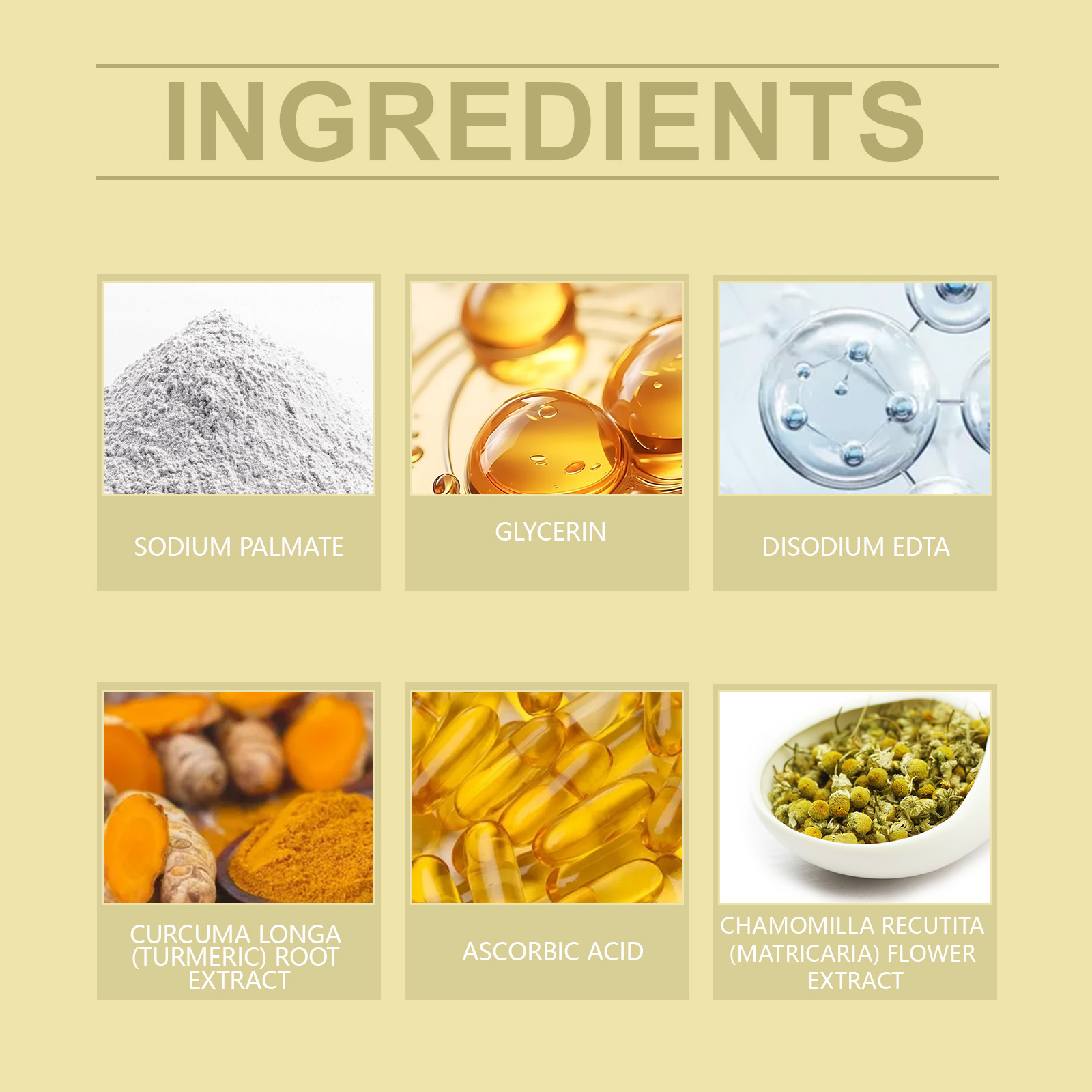 姜黄根提取物、抗坏血酸(维生素C)、母菊花提取物