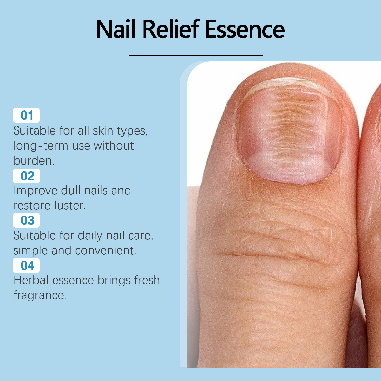 我们的指甲修护喷雾含有甜杏仁油、维生素E。它可以逐渐淡化指甲变色,减少灰指甲的形成。它的使用方法很简单:保持指甲和周围皮肤干燥,将本品均匀涂抹在指甲及周围皮肤上,等待吸收。并且可以有效杀菌,抑制真菌生长,迅速缓解灰指甲的问题。