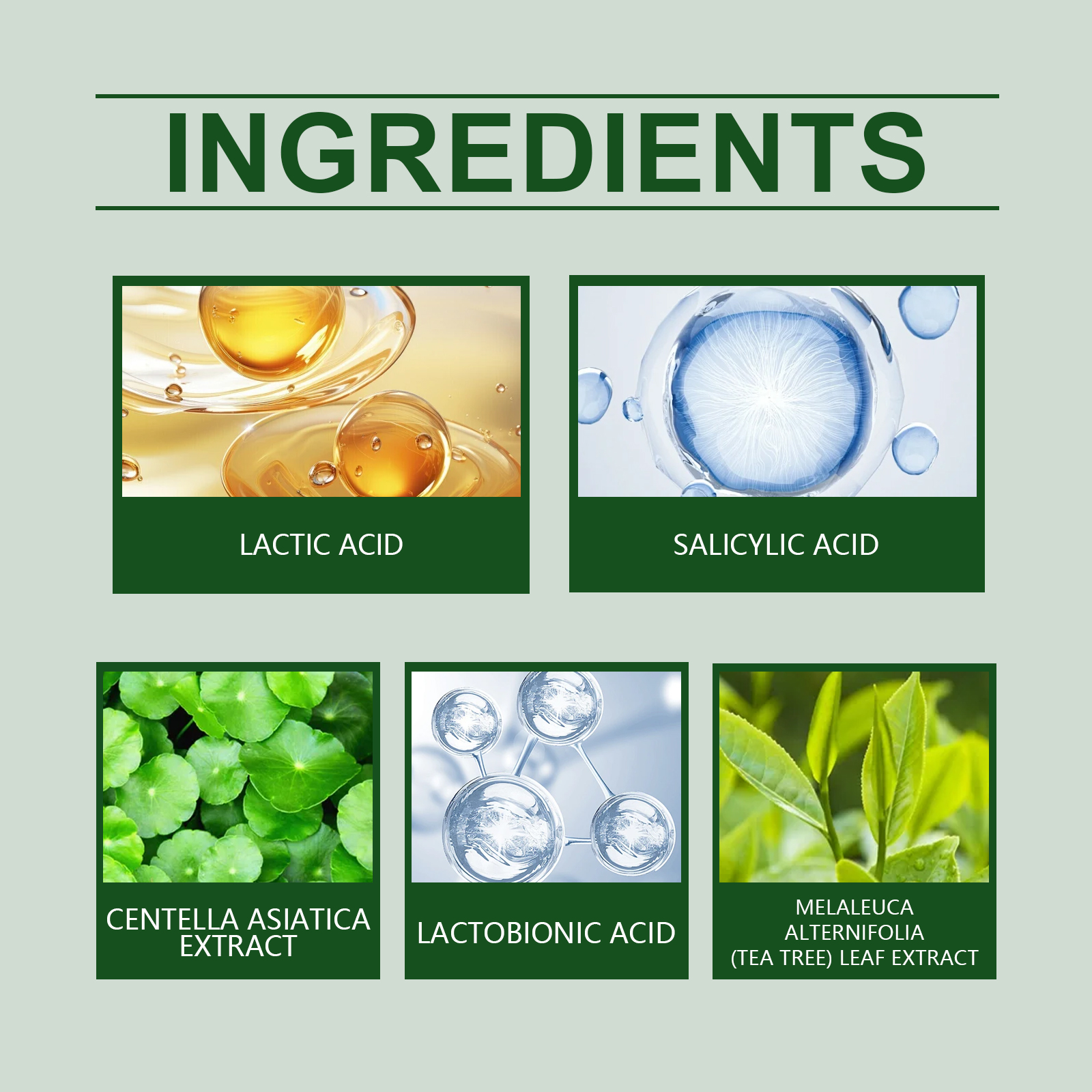 乳糖酸、茶树提取物、积雪草提取物