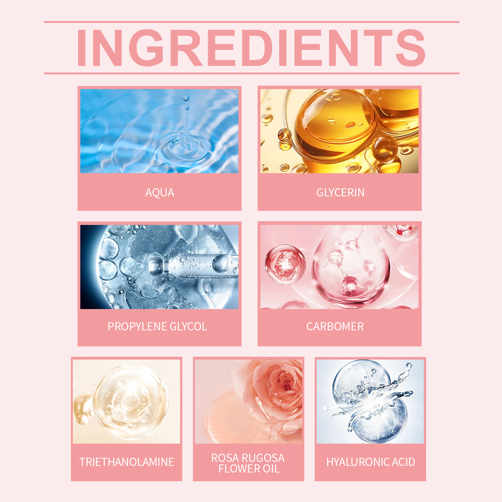 三乙醇胺、玫瑰花油、透明质酸