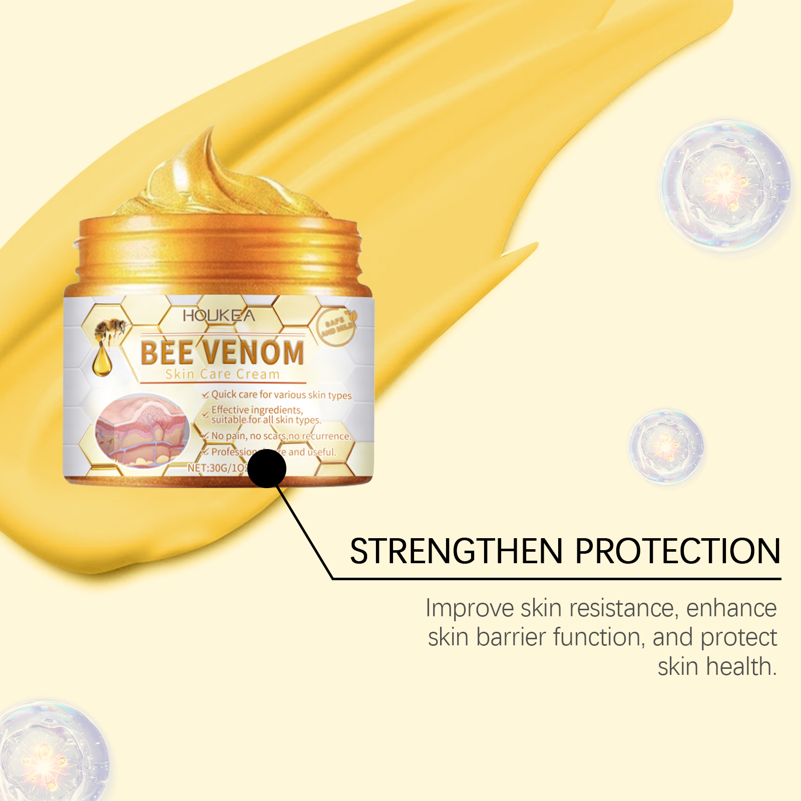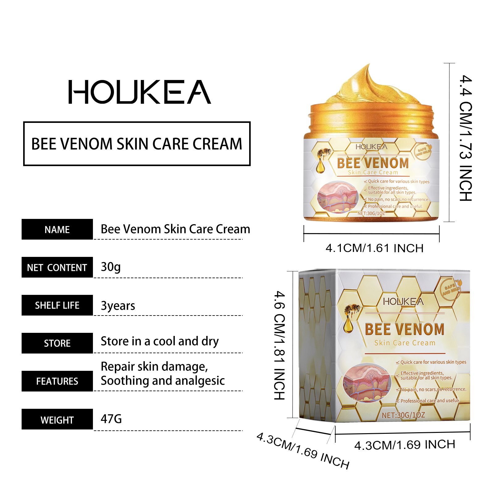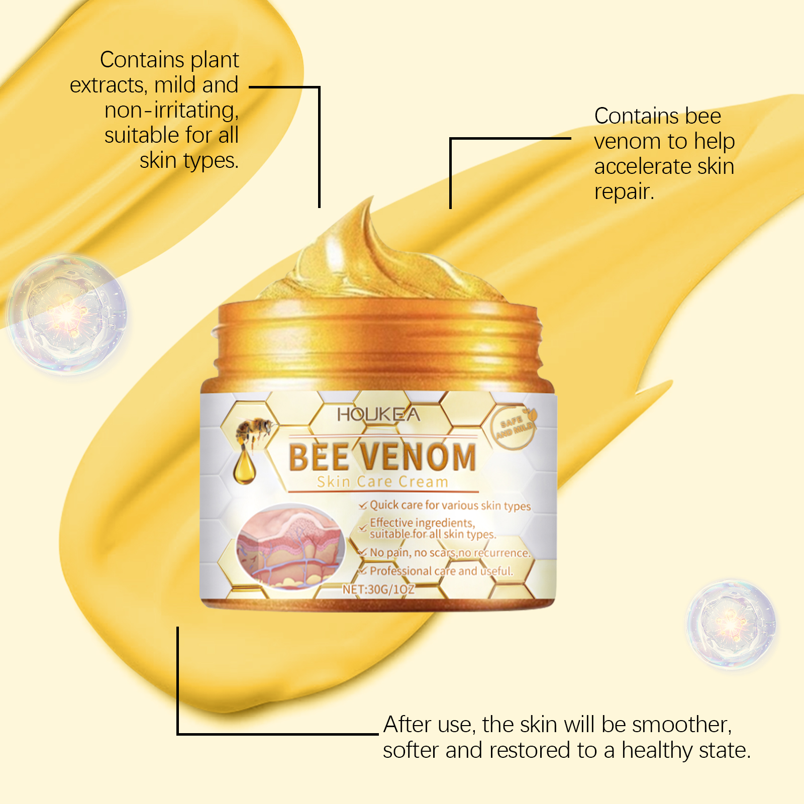 我们的蜂毒护理霜含有蜂毒、薄荷提取物、甘油。它可以缓解疼痛,镇静皮肤,减少外界刺激引起的不适。它的使用方法很简单:1. 清洁面部皮肤,保持干燥。2. 取适量本品均匀涂抹于面部及全身肌肤。3. 轻轻按摩直至吸收。去除皮肤异味,持久保持肌肤清新,适合全天使用。