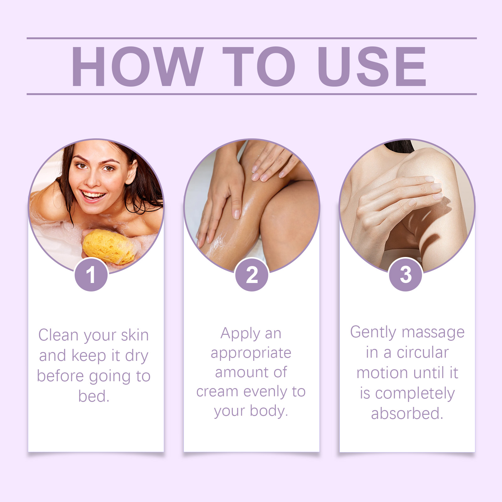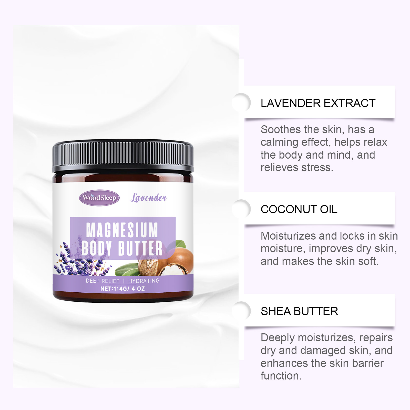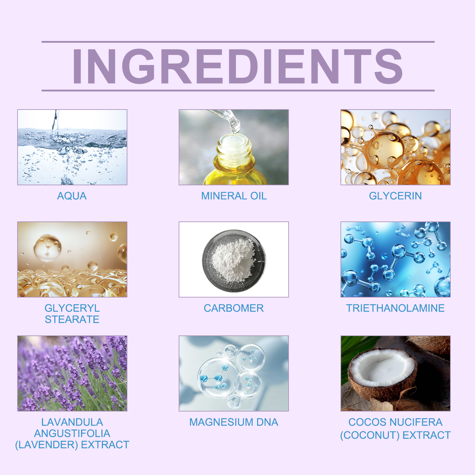 我们的薰衣草身体润肤霜含有矿油、甘油。它可以舒缓肌肤,有镇静作用,帮助放松身心,缓解压力;保湿锁住肌肤水分,改善干燥肌肤,令肌肤柔软。深层滋润、修护干燥受损肌肤,增强肌肤屏障功能。它的使用方法很简单:1. 睡觉前清洁皮肤,保持干燥。2. 将适量的面霜均匀涂抹在身体上。3. 轻轻地循环按摩,直到完全吸收。舒缓和帮助你入睡,创造一个舒适的氛围,并帮助你快速入睡。