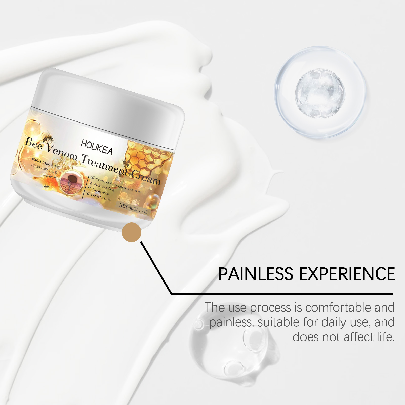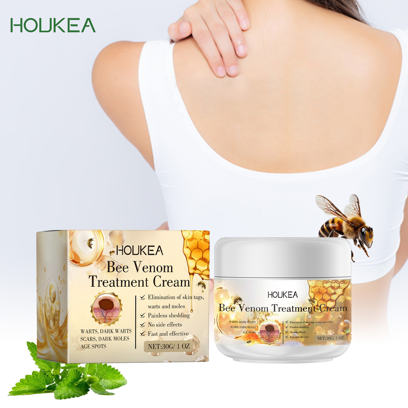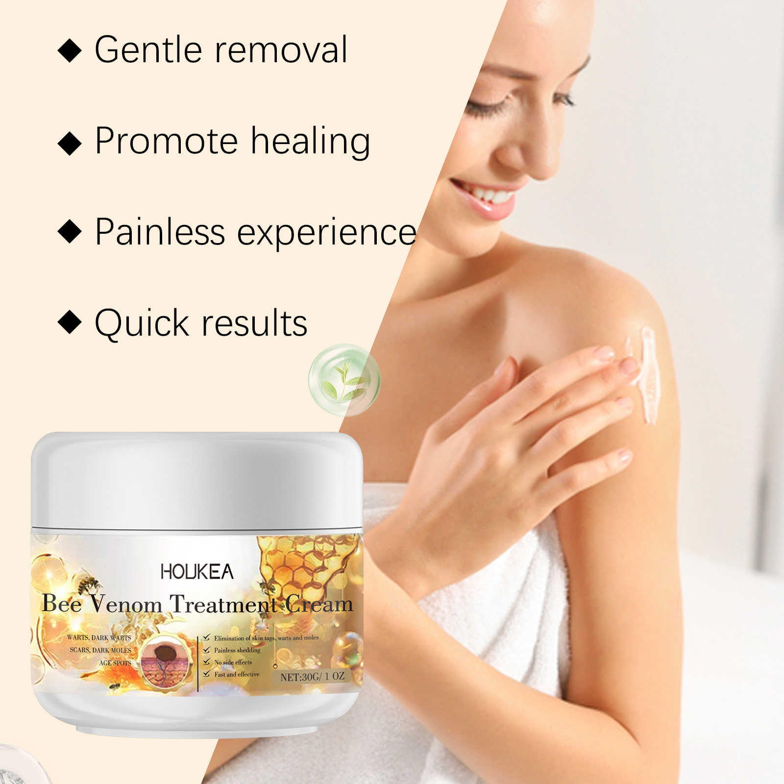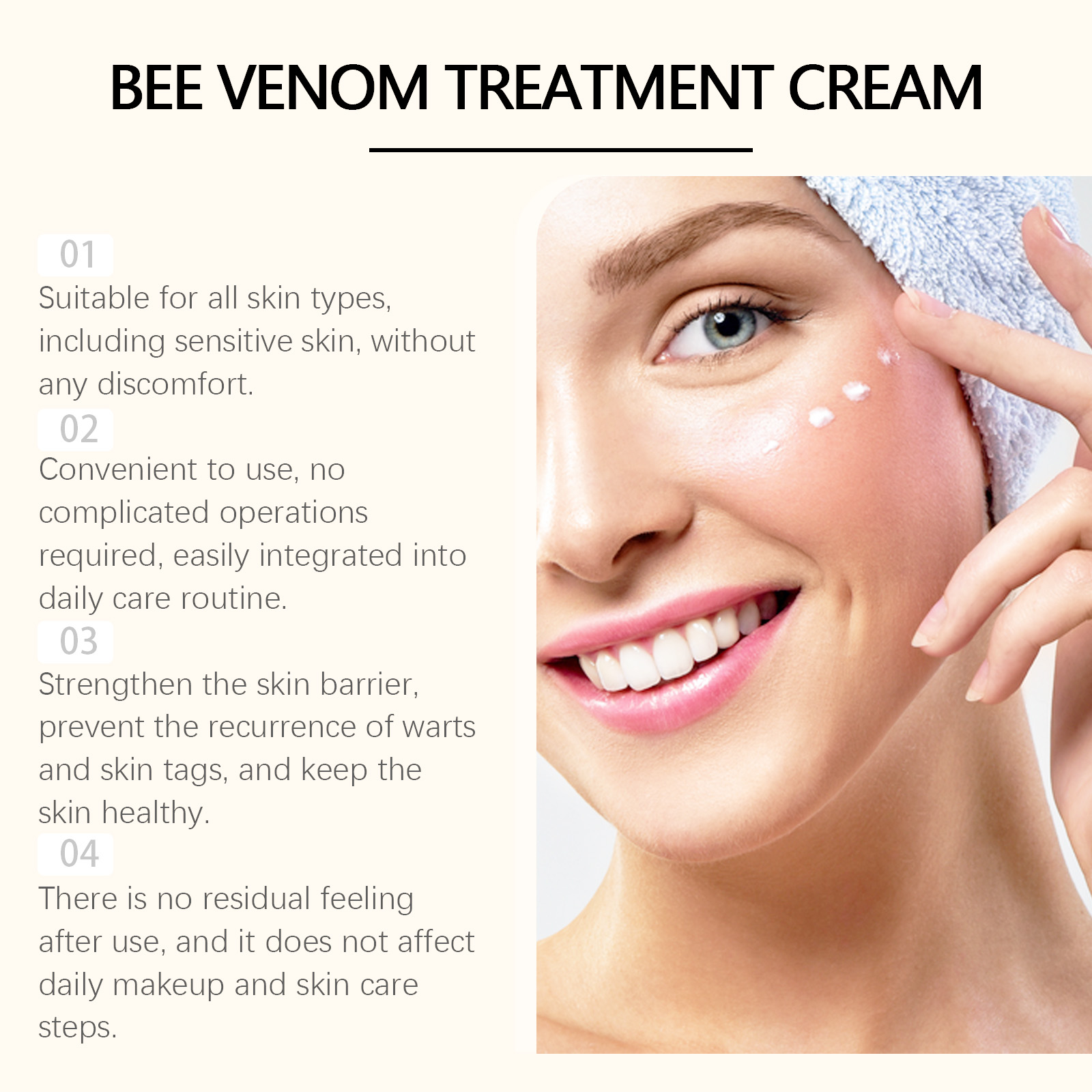 我们的蜂毒皮肤护理霜含有甘油、矿油。它可以激活肌肤的自我修复能力,帮助肌肤快速恢复健康。它的使用方法很简单:清洁皮肤,保持皮肤干燥。取适量本品,涂抹于有皮肤斑点或疣的皮肤上。轻轻按摩至吸收。并且可以专为去除疣和皮肤标签而设计,使用后皮肤光滑无痕。
