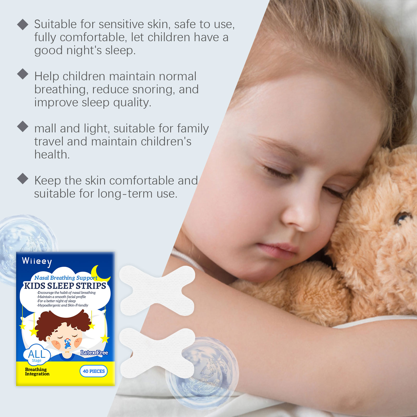 我们的儿童止鼾贴含有无纺布、背胶。它可以帮助孩子养成正确的鼻呼吸习惯,提高睡眠质量。它的使用方法很简单:睡前将贴片贴在嘴上,醒来后取下。并且可以保证合身稳定,不易脱落,并提供持久有效的抗打鼾效果。
