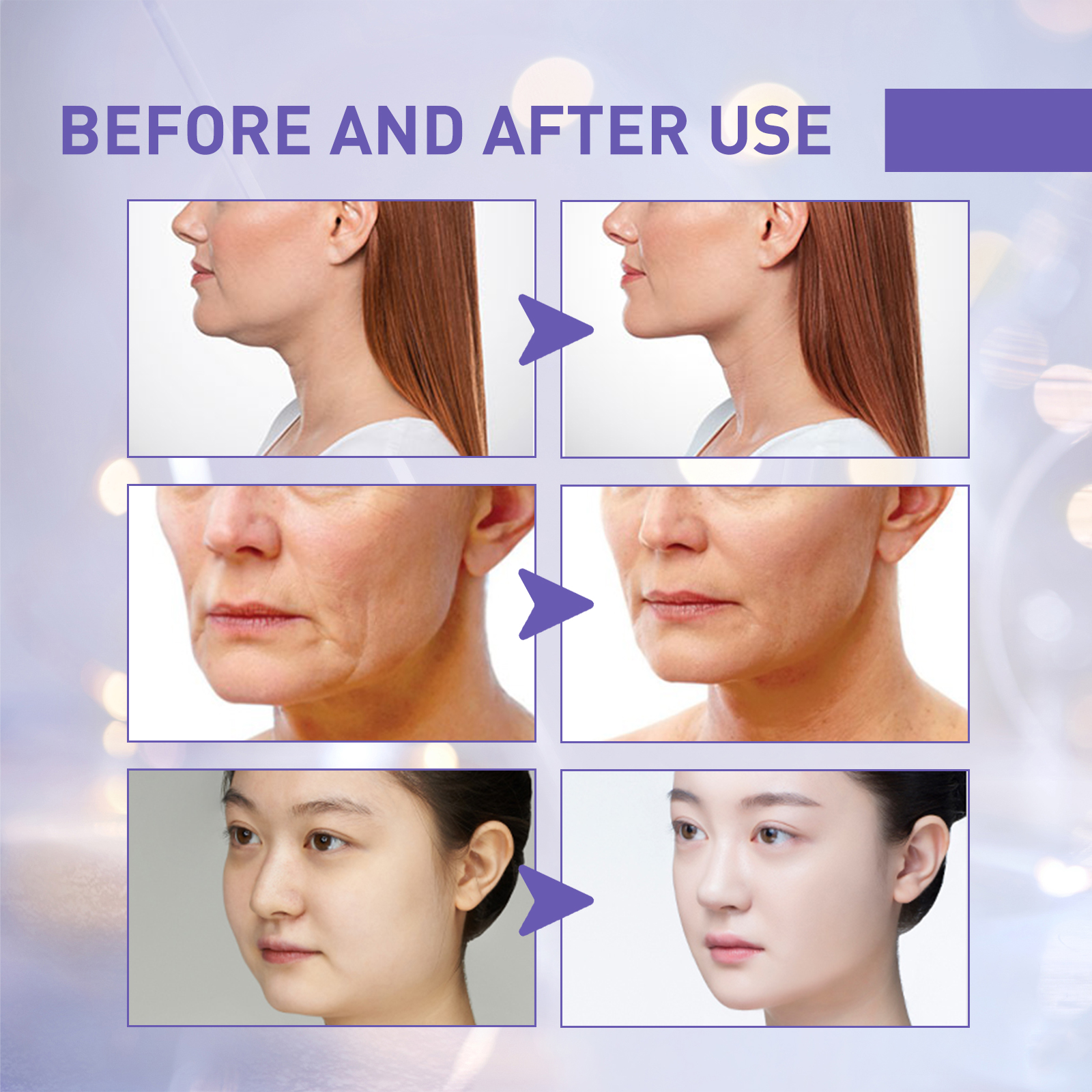 我们的V型脸部提拉贴含有合成凝胶。它可以有效增强面部皮肤的紧致度,隐藏双下巴,提升和紧致面部肌肉,产生v型脸,并使用松紧带获得更好的效果。它的使用方法很简单:把前面的头发收起来,远离耳朵。面部拉皮时,取2条拉皮胶带。不要从胶带的粘接区域取下背衬;将可调松紧带A的金属倒钩(带结)从胶带粘着的一面插入上孔。再拿一段胶带,用B松紧带(带钩)重复一遍;在取下磁带的整个背板之前,请确定磁带在耳朵前面的位置。胶带粘附的一面应该粘在皮肤上,而不是头发上。一旦你对这个姿势感觉舒服了。在不接触粘合剂的情况下,将胶带的整个背面取下(一次一个),分别涂抹在左右耳前。用手指用力按压,揉搓30秒,使其完全粘附;把两边的松紧带拉在一起,根据你想要的脸型,在其中一个结上放一个钩子;您可以根据需要上下移动橡皮筋。它可以提拉脸,使面部线条更平滑紧凑,保持面部细纹,皮肤不紧绷,自然爽朗,散发青春活力。