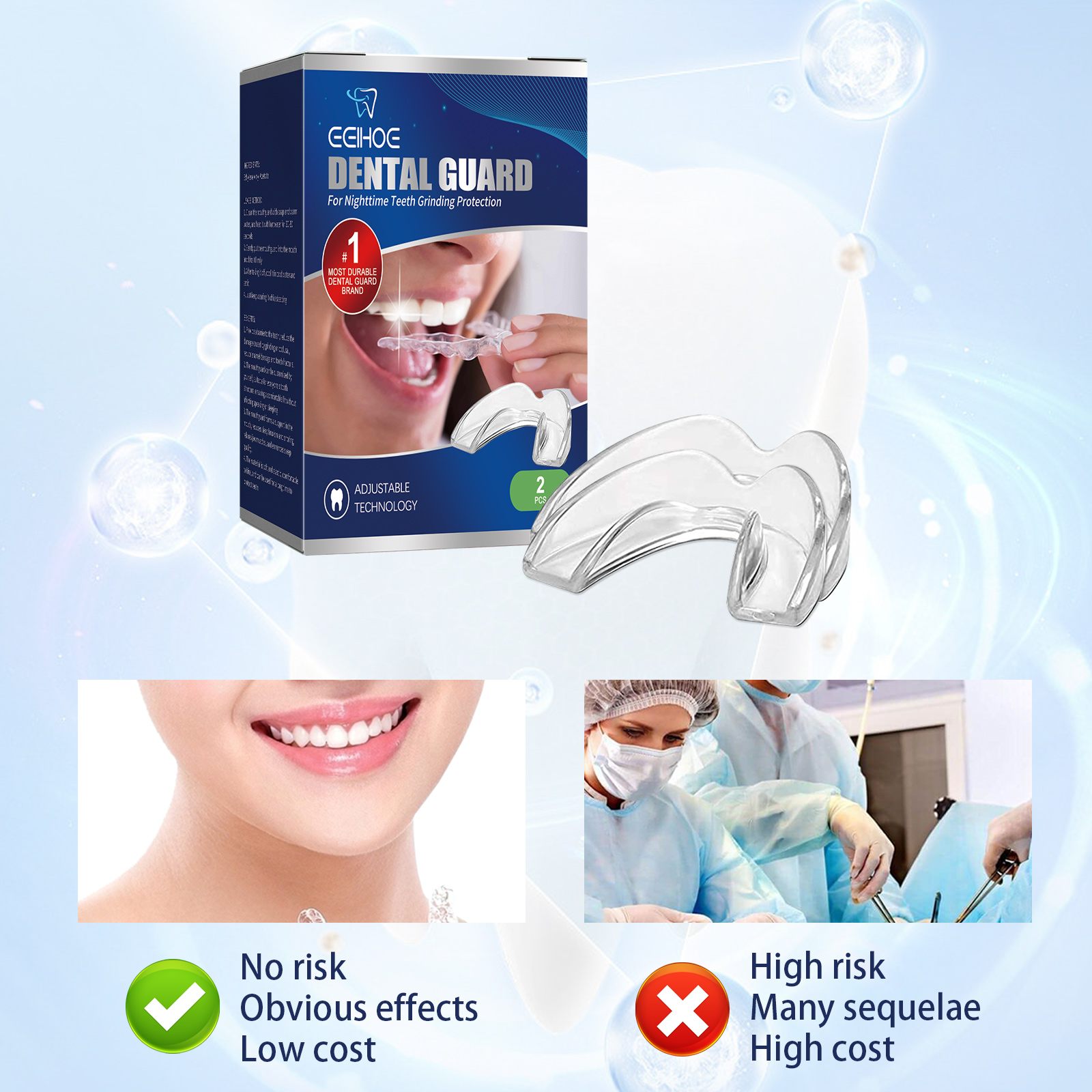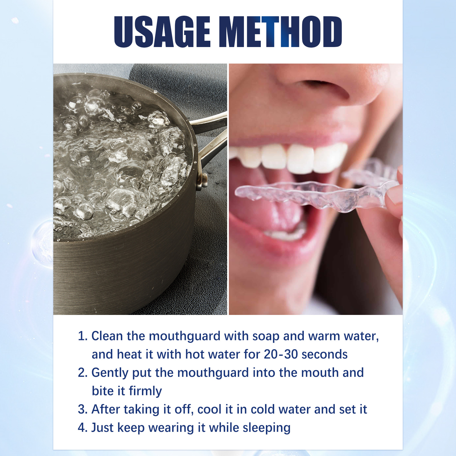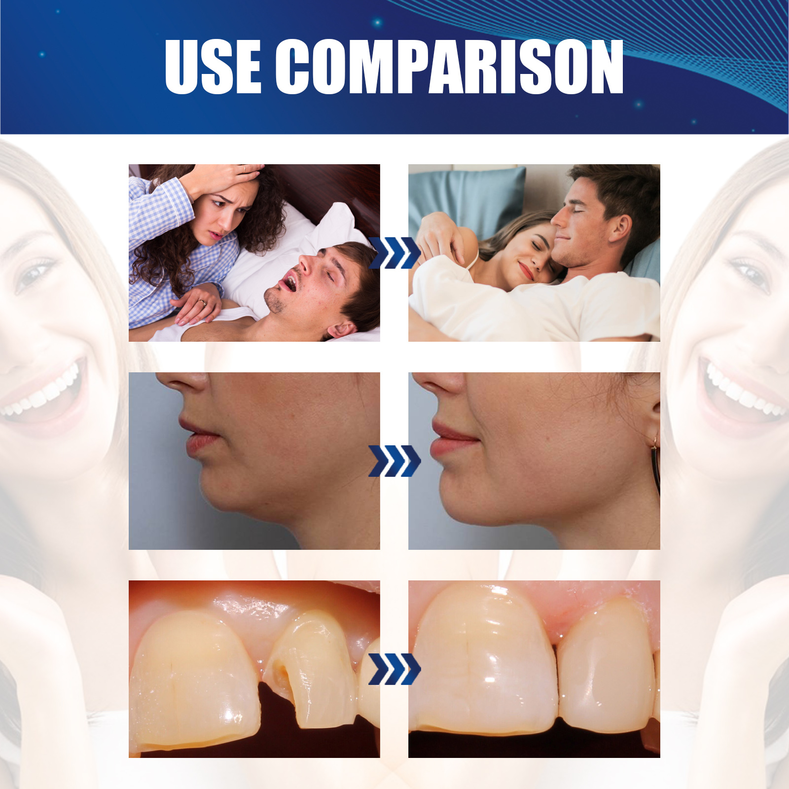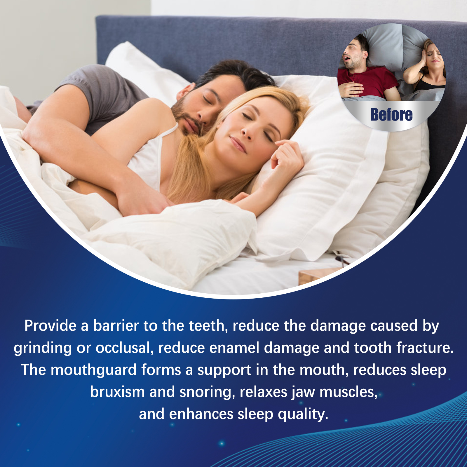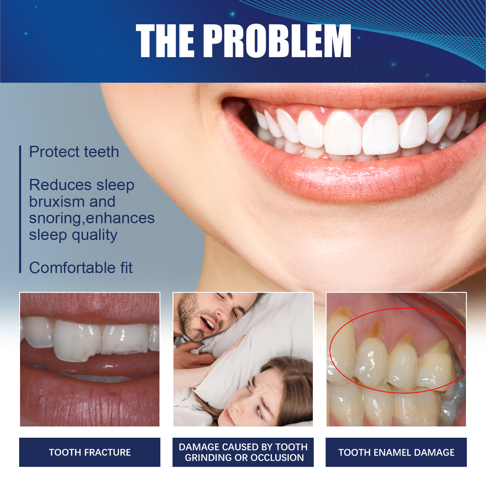 我们的牙齿防护罩含有乙烯醋酸乙烯醋。它可以给牙齿提供一道屏障,减少因磨牙或咬合造成的损伤,减少牙釉质损伤和牙齿断裂。护齿器在口腔中形成支撑,减少睡眠磨牙和打鼾,放松下领肌肉,提高睡眠质量。它的使用方法很简单:用肥皂和温水清洗护齿套,用热水加热20-30秒,轻轻地把护齿套放进嘴里,紧紧咬上一口,取下后,在冷水中冷却,并设置,睡觉的时候继续戴着。有效地保护牙齿,减少睡眠中磨牙和打鼾,提高睡眠质量,舒适贴合。