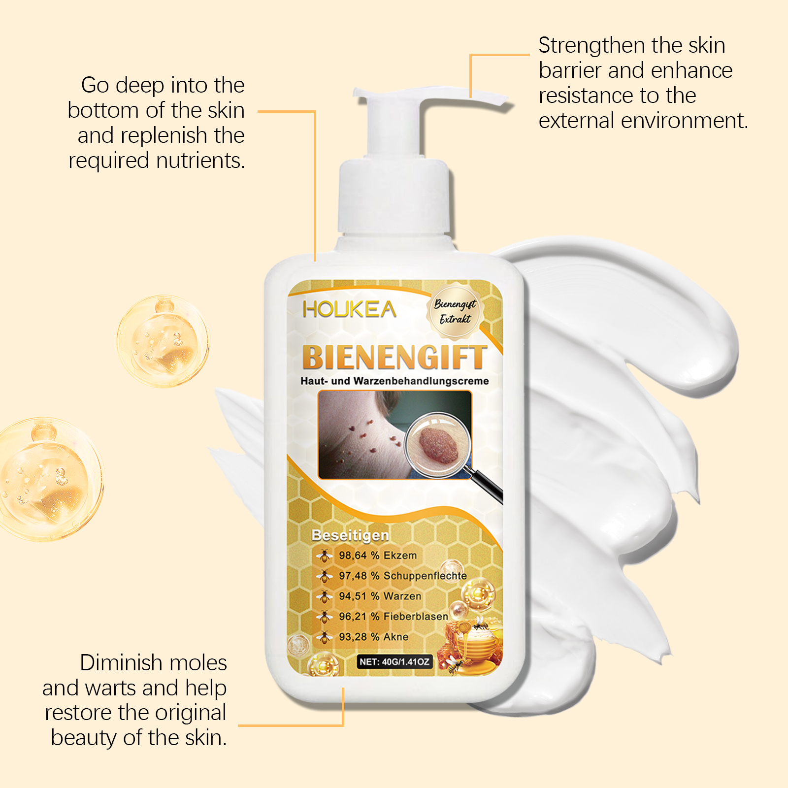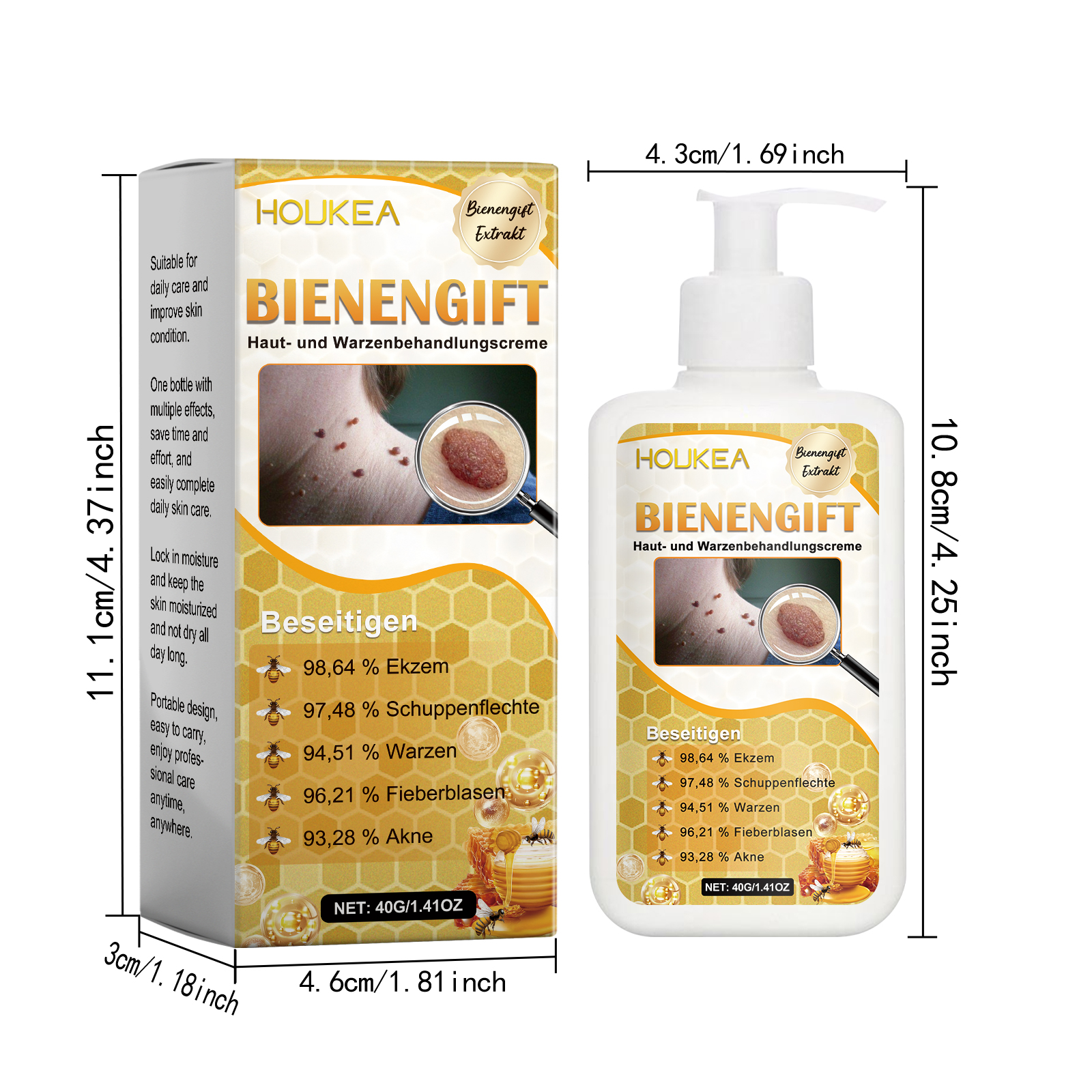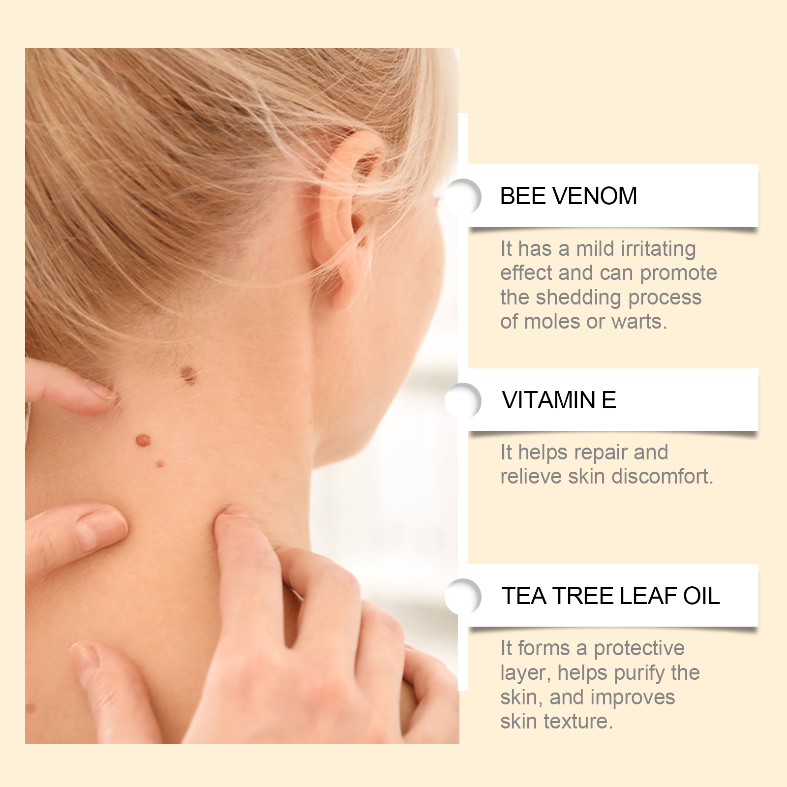 我们的蜂毒克尤护理霜含有三乙醇胺、蜂毒、水杨酸。它可以轻轻移除疣和痣并恢复光滑度。抗氧化保护,减缓皮肤老化的迹象。抑制痘痘的再生,长期使用能使皮肤更加均匀。它的使用方法很简单:清洁皮肤,在疣和痣上涂抹适量乳膏,然后均匀涂抹,等待吸收。并且可以帮助提亮肌肤,恢复美丽和紧致。轻盈不油腻,适合所有皮肤类型的日常使用。