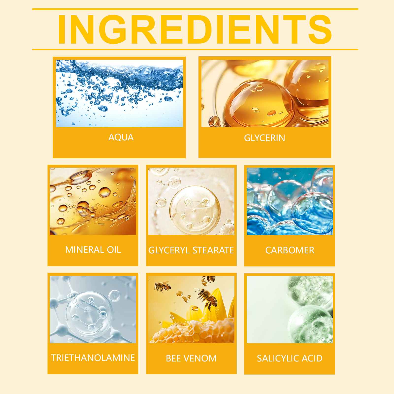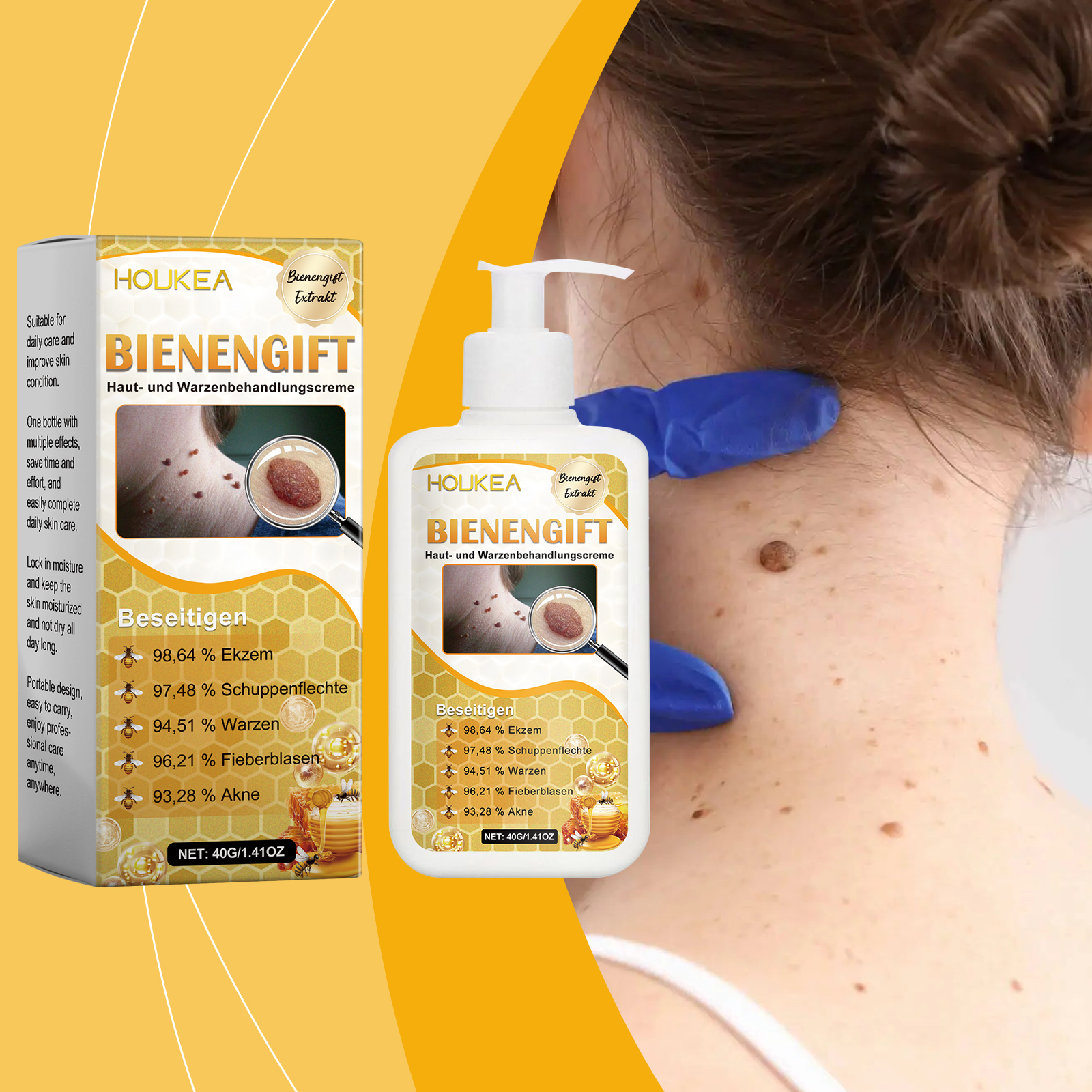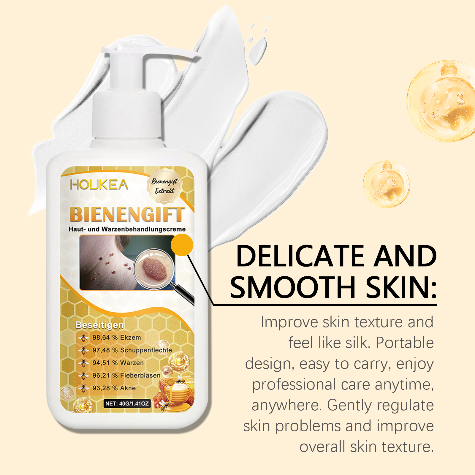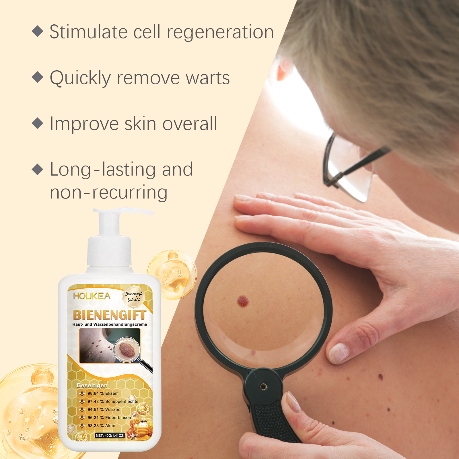 我们的蜂毒克尤护理霜含有三乙醇胺、蜂毒、水杨酸。它可以轻轻移除疣和痣并恢复光滑度。抗氧化保护,减缓皮肤老化的迹象。抑制痘痘的再生,长期使用能使皮肤更加均匀。它的使用方法很简单:清洁皮肤,在疣和痣上涂抹适量乳膏,然后均匀涂抹,等待吸收。并且可以帮助提亮肌肤,恢复美丽和紧致。轻盈不油腻,适合所有皮肤类型的日常使用。