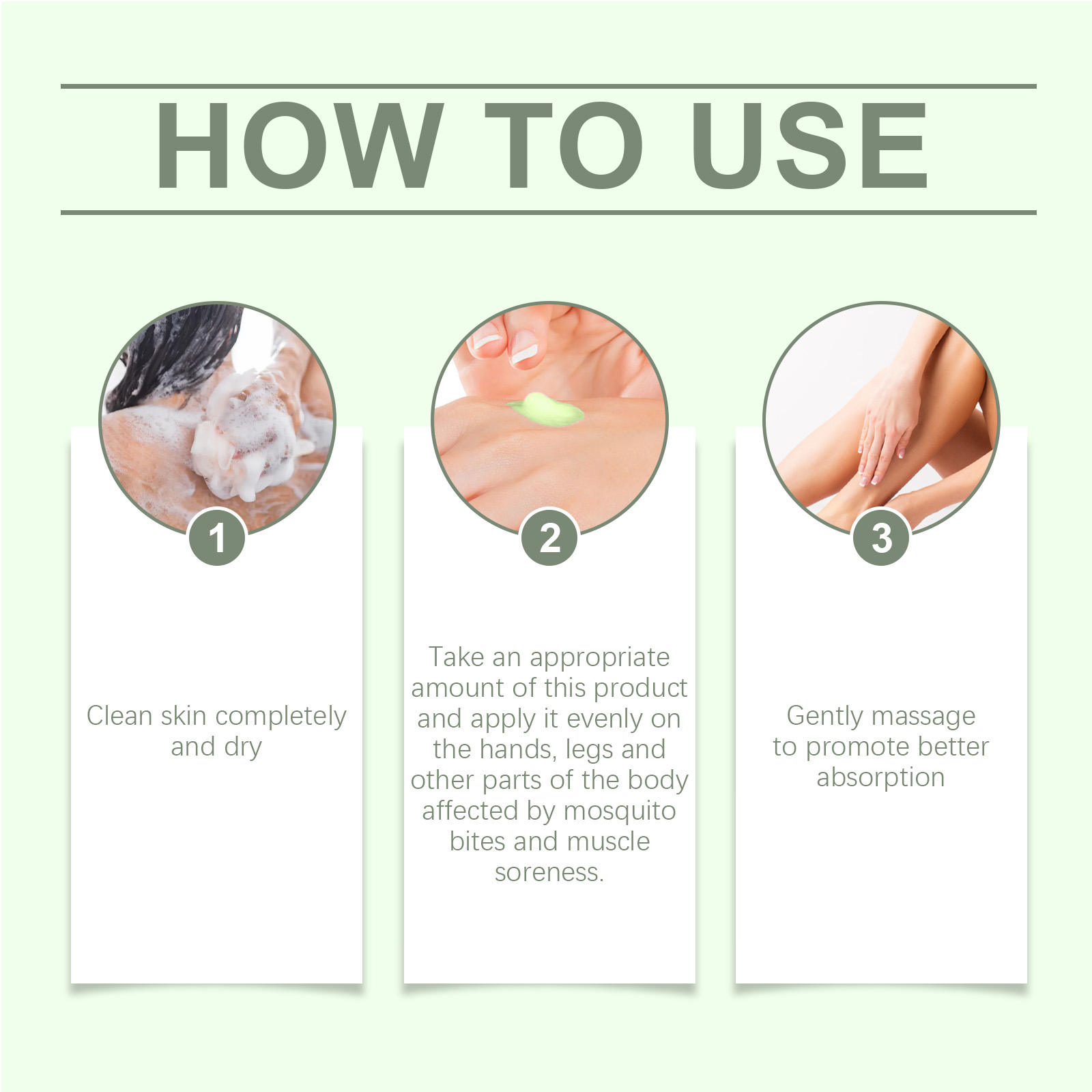 我们的草本护理霜含有椰子油、生育酚(维生素E)。它可以有效减少蚊虫叮咬后皮肤红肿,促进皮肤自然修复。它的使用方法很简单:彻底清洁皮肤并使其干燥,取适量本品,均匀涂抹于手、腿等受蚊虫叮咬及肌肉酸痛影响的部位,轻轻按摩,促进更好的吸收。并且可以快速缓解蚊虫叮咬引起的瘙痒,减轻皮肤红肿不适。