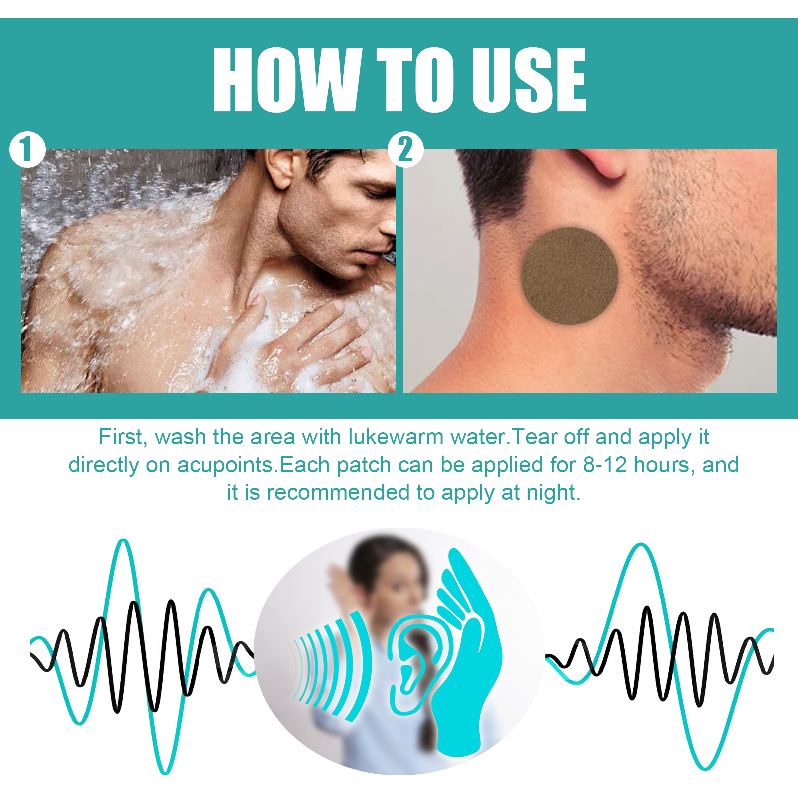 我们的耳鸣贴含有生育酚(维生素E)、香橙果提取物。它有助于缓解耳鸣。它的使用方法很简单:首先,用温水清洗患处。撕下来,直接敷在穴位上。每个贴片可以敷8-12个小时,建议晚上敷。使用后缓解耳鸣和其他听力障碍。