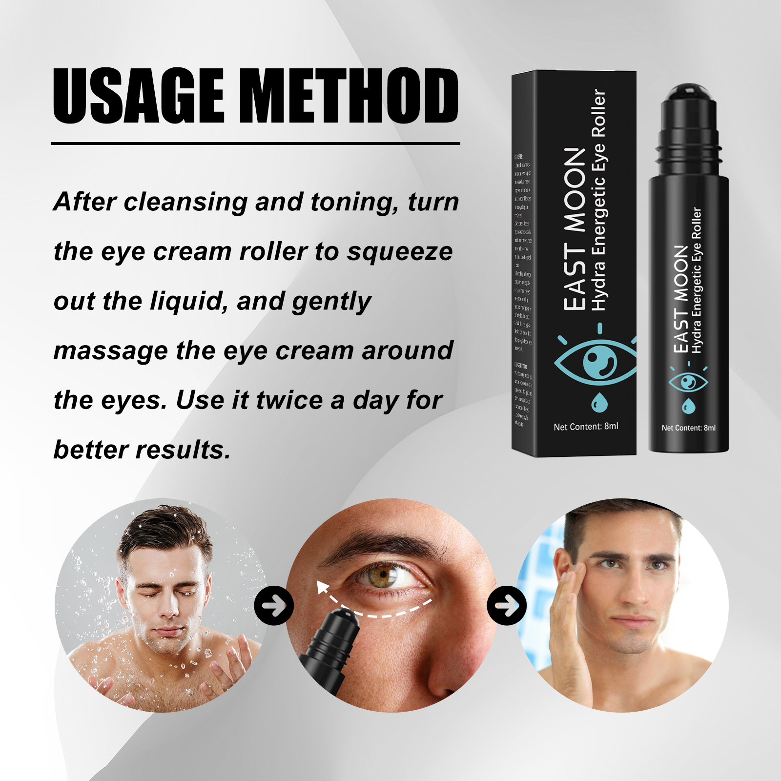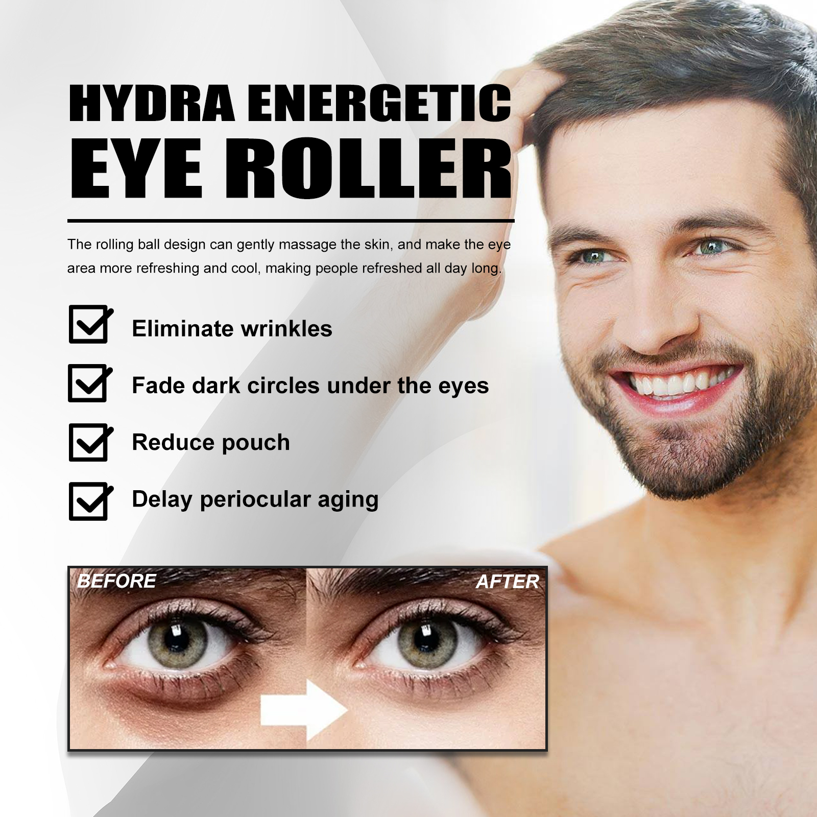 我们的水润活力眼部滚珠含有曲酸、透明质酸。它由优质成分配制而成,使眼周娇嫩的肌肤焕发青春。它的使用方法很简单:洁面和爽肤后,转动眼霜滚筒挤出液体,轻轻按摩眼部周围。每天使用两次效果会更好。并且可以抚平眼部周围的皱纹,支持皮肤弹性改善眼部周围的皮肤紧致度,减少眼袋和鱼尾纹舒缓和滋润皮肤,补充和锁住水分提亮肤色,减少黑眼圈。