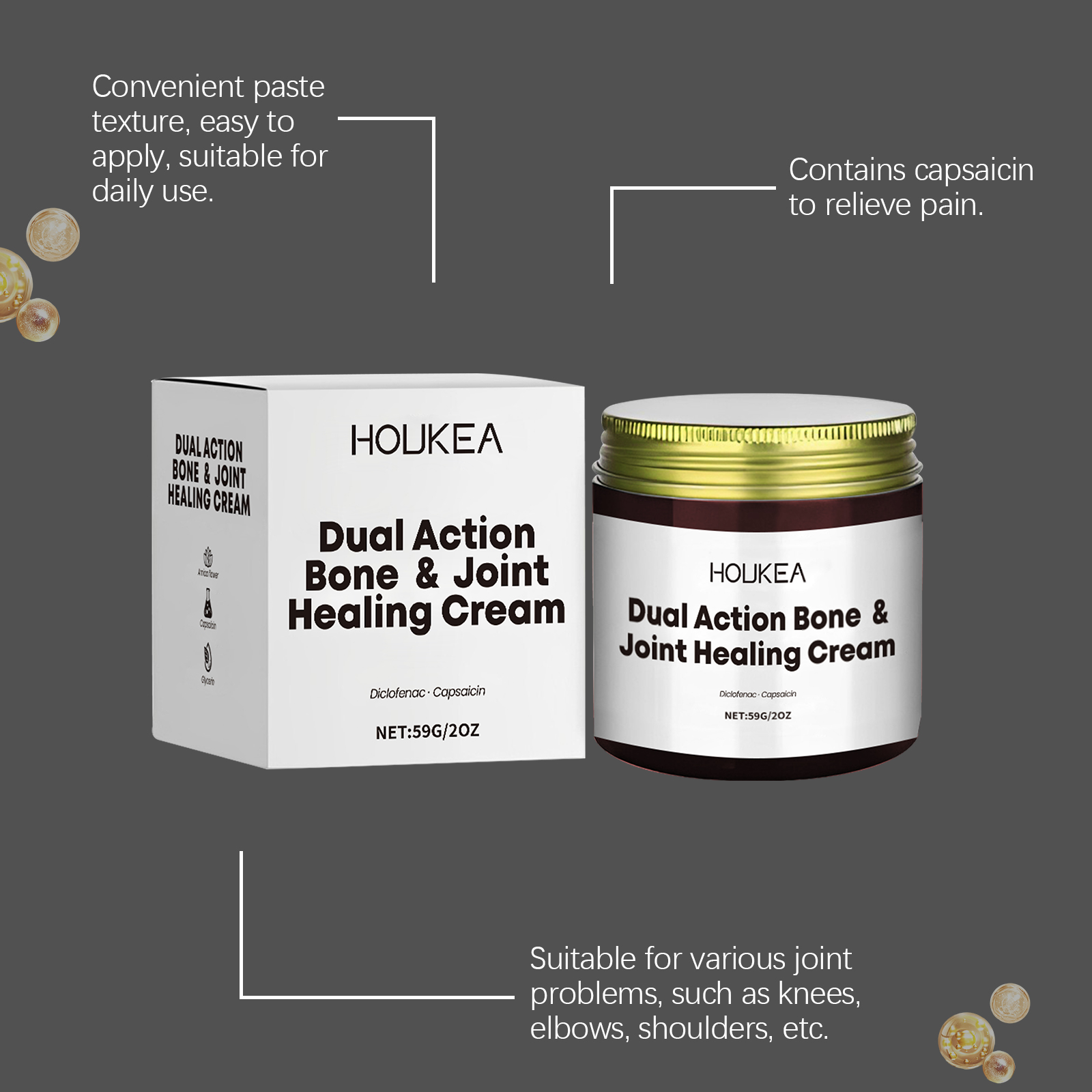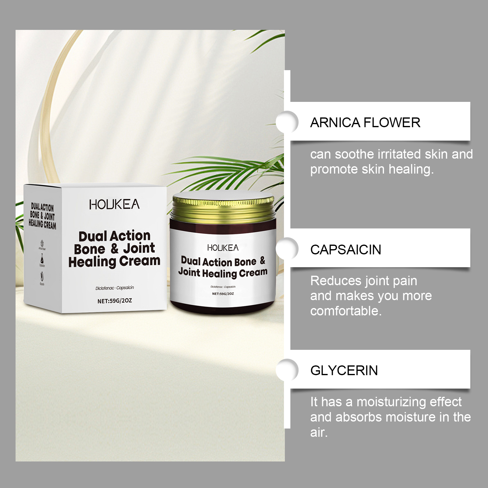 我们的关节修护霜含有辣椒素、甘油、尿囊素。它可以减轻关节僵硬提高活动能力。它的使用方法很简单:取本品适量涂于疼痛的关节及骨骼,轻轻按摩以促进吸收。并且有很强的消炎和舒缓作用。