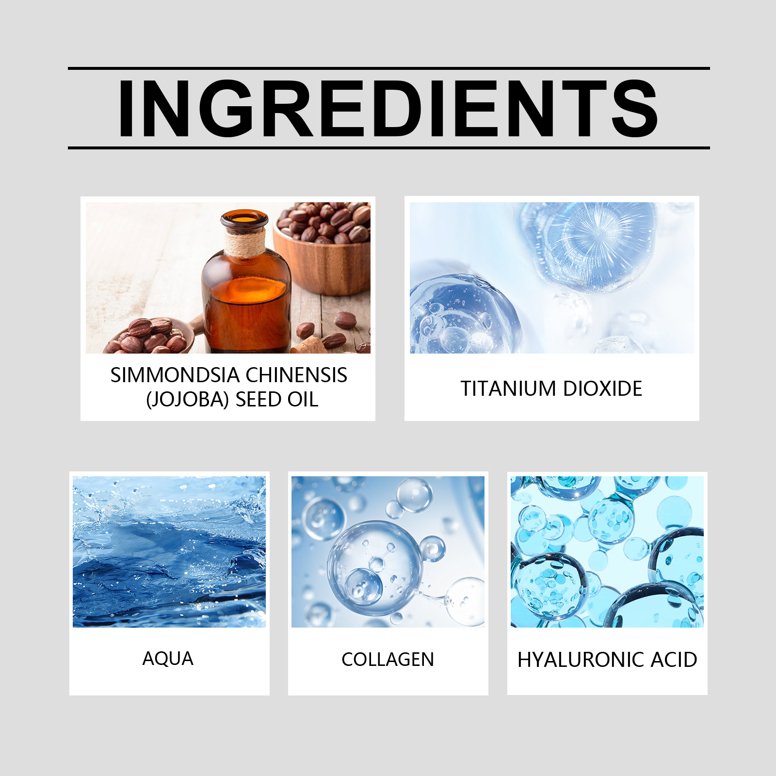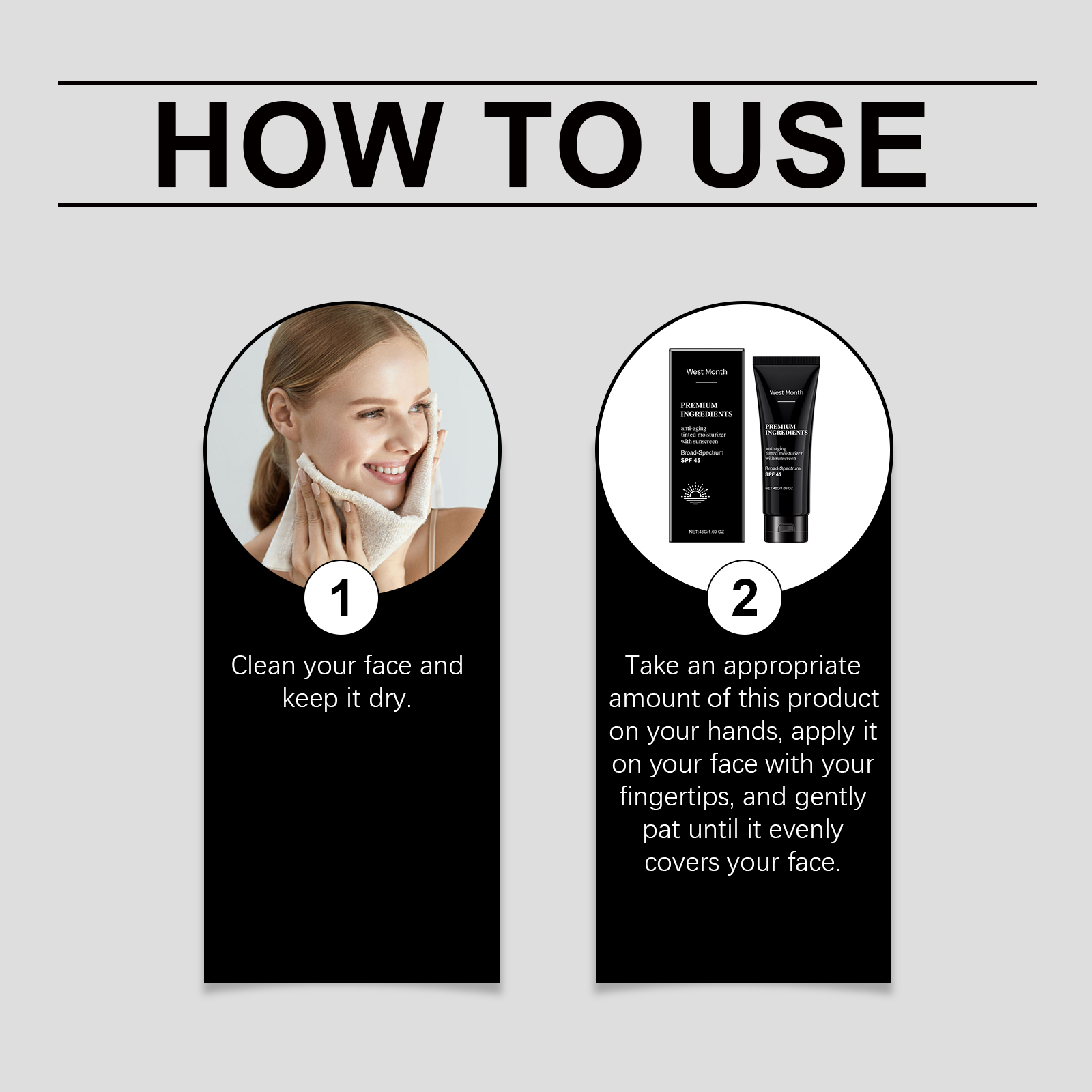 我们的防护保湿霜含有霍霍巴籽油、胶原蛋白、二氧化钛。它可以有效防晒,深层保湿,全天候保护肌肤。含有UVA和uvb过滤器,防止太阳黑子的形成。它的使用方法很简单:1.洗脸并保持干燥。2.取适量本品于双手,用指尖涂抹于面部,轻轻拍打直至均匀覆盖面部。舒缓因日晒引起的皮肤不适,修复受损皮肤。提供强大的抗氧化保护,减少自由基损害。