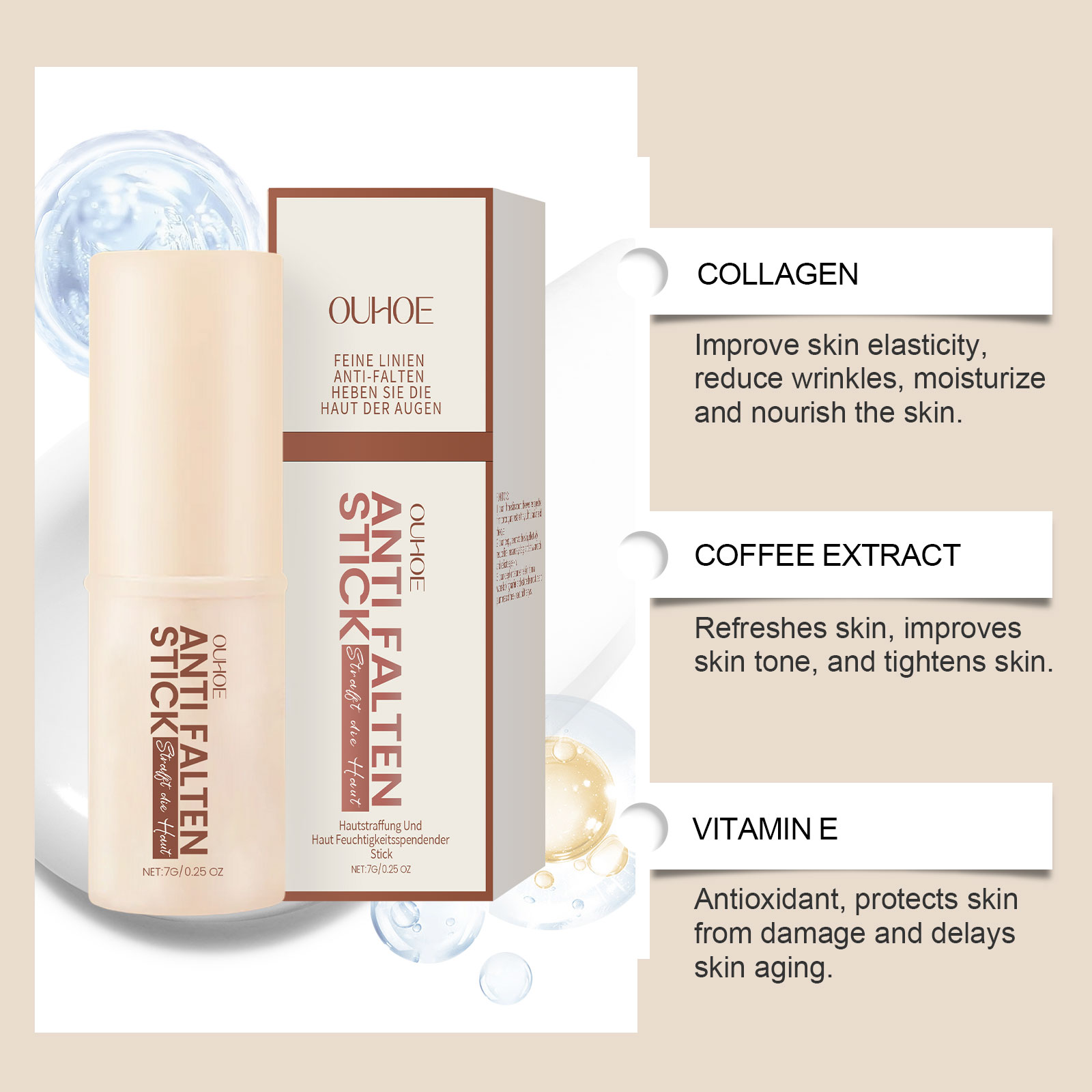 我们的眼周护理棒含有甘油、咖啡提取物、胶原。它可以改善眼周松弛,保持肌肤紧致。有效减少眼周细纹和皱纹,使肌肤更光滑。它的使用方法很简单:1.清洁并擦干眼周皮肤;2.取适量本品均匀涂抹于眼周;3.轻轻按摩至吸收。提高肌肤弹性,减少皱纹,滋润滋养肌肤。清新肌肤,改善肤色,紧致肌肤。