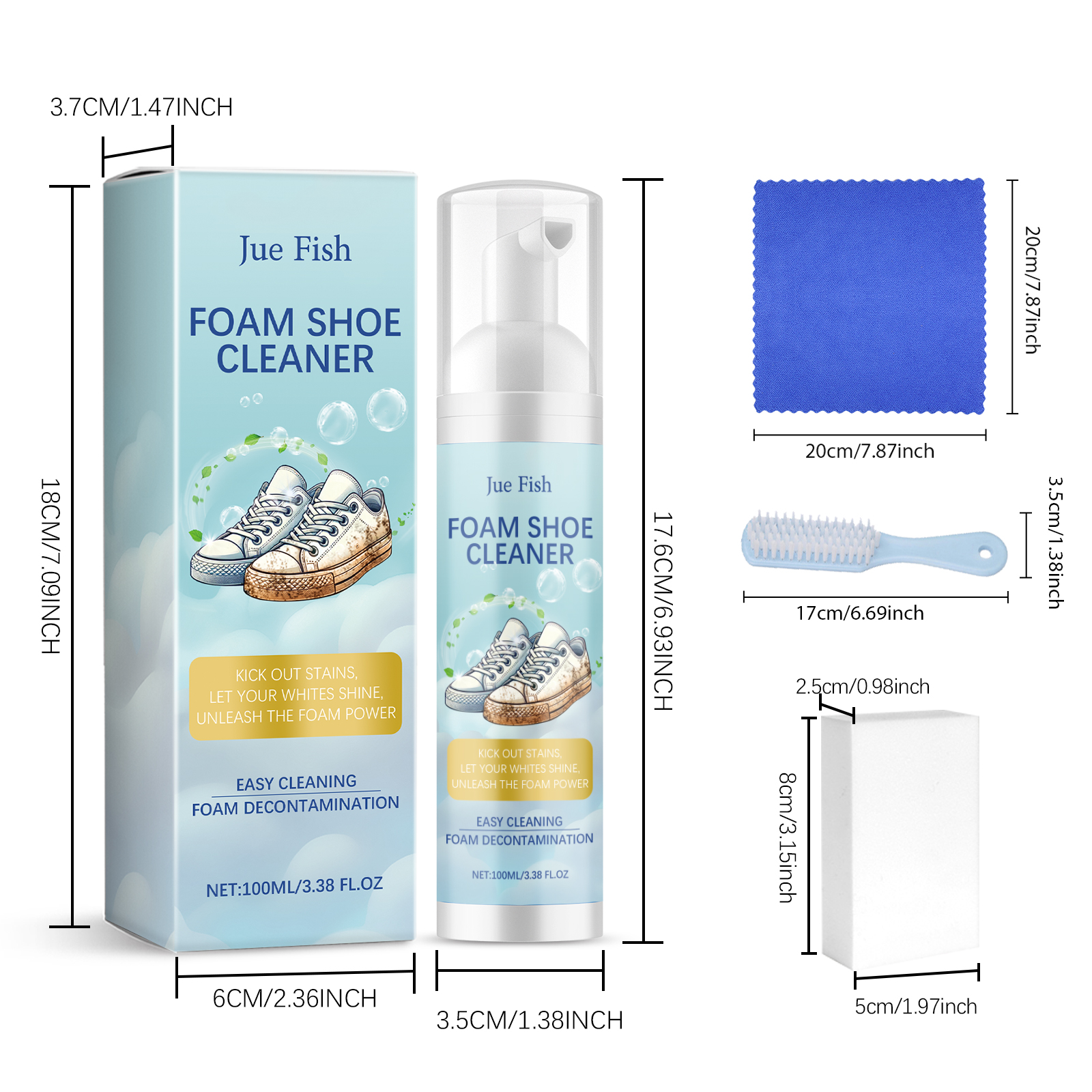 白鞋泡沫清洁剂:3.5*17.6cm,毛巾:20*20cm,海绵:5*2.5*8cm,刷子:3.5*17cm
