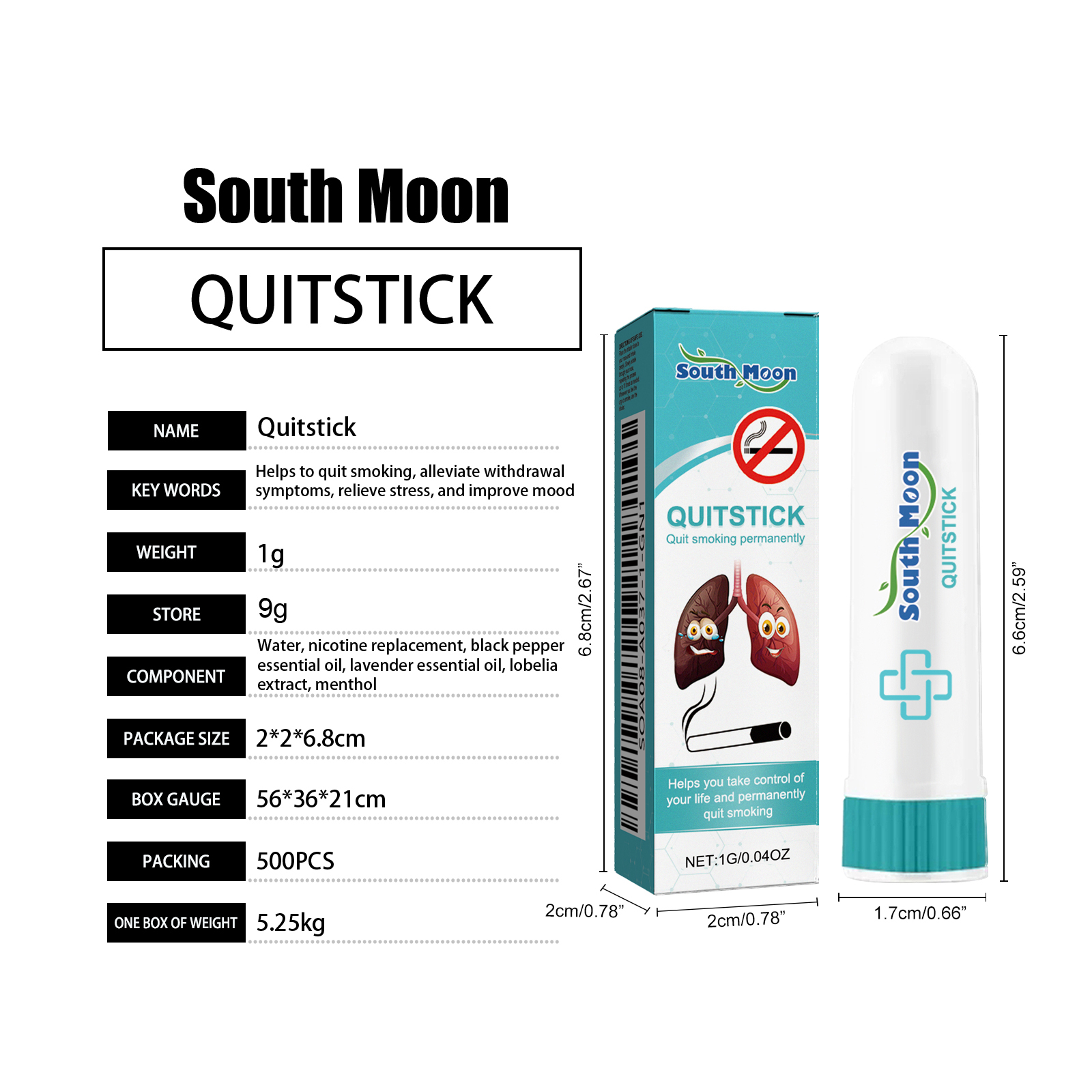 我们的通鼻棒含有黑胡椒精油、薰衣草精油、半边莲提取物。它可以改变尼古丁的消耗方式,无畏戒断反应,摆脱顽固的成瘾控制,逐步减少尼古丁摄入量,戒除生理烟瘾,协助戒除心理依赖,实现全面戒烟。它的使用方法很简单:将本产品靠近鼻子并深吸气,通过鼻子缓慢地呼气,根据需要重复该过程多达10次,每当你有吸烟的冲动时,请使用本产品。帮助你控制自己的生活,永久戒烟。