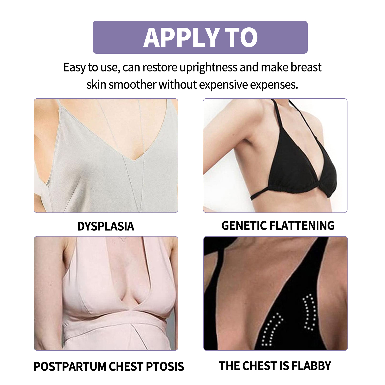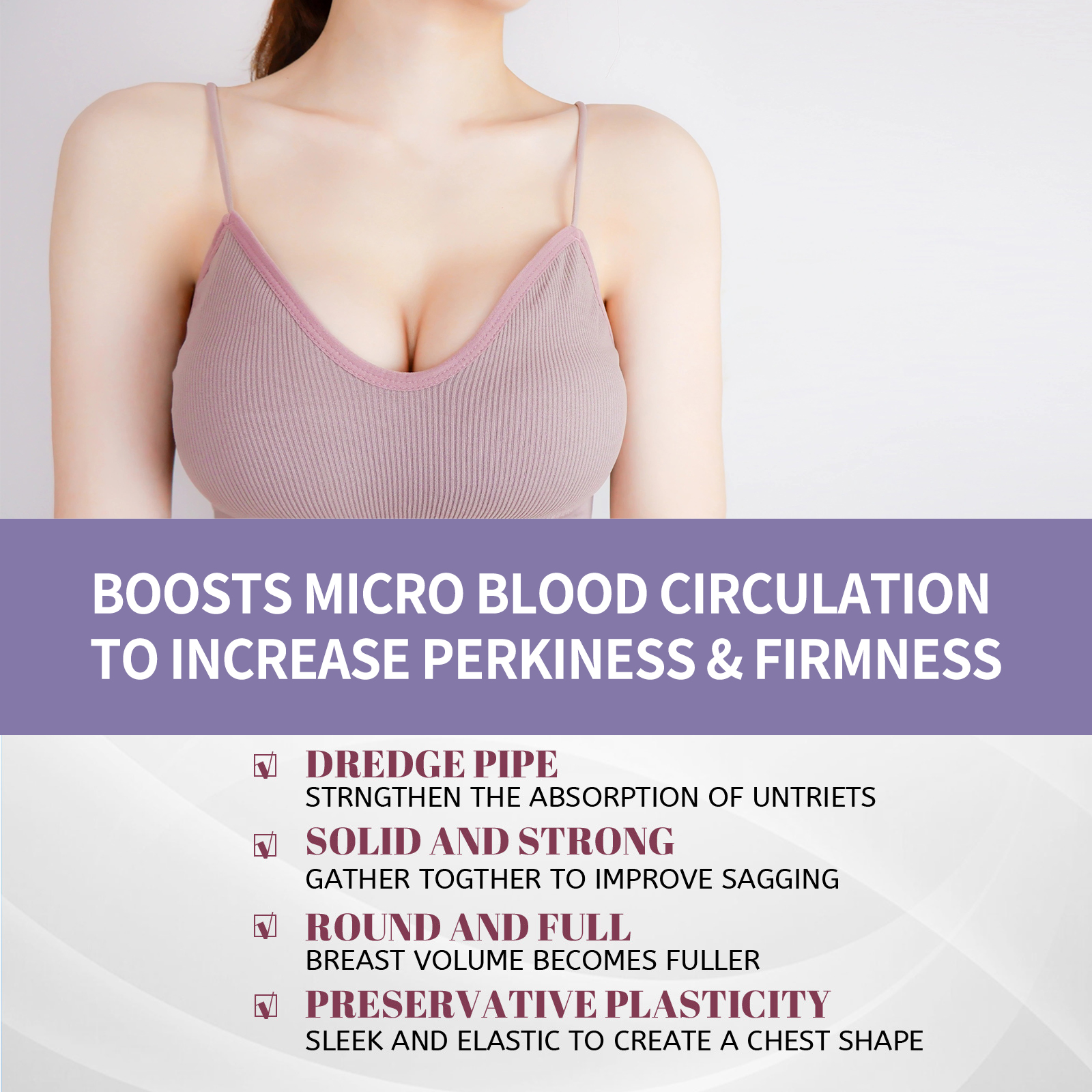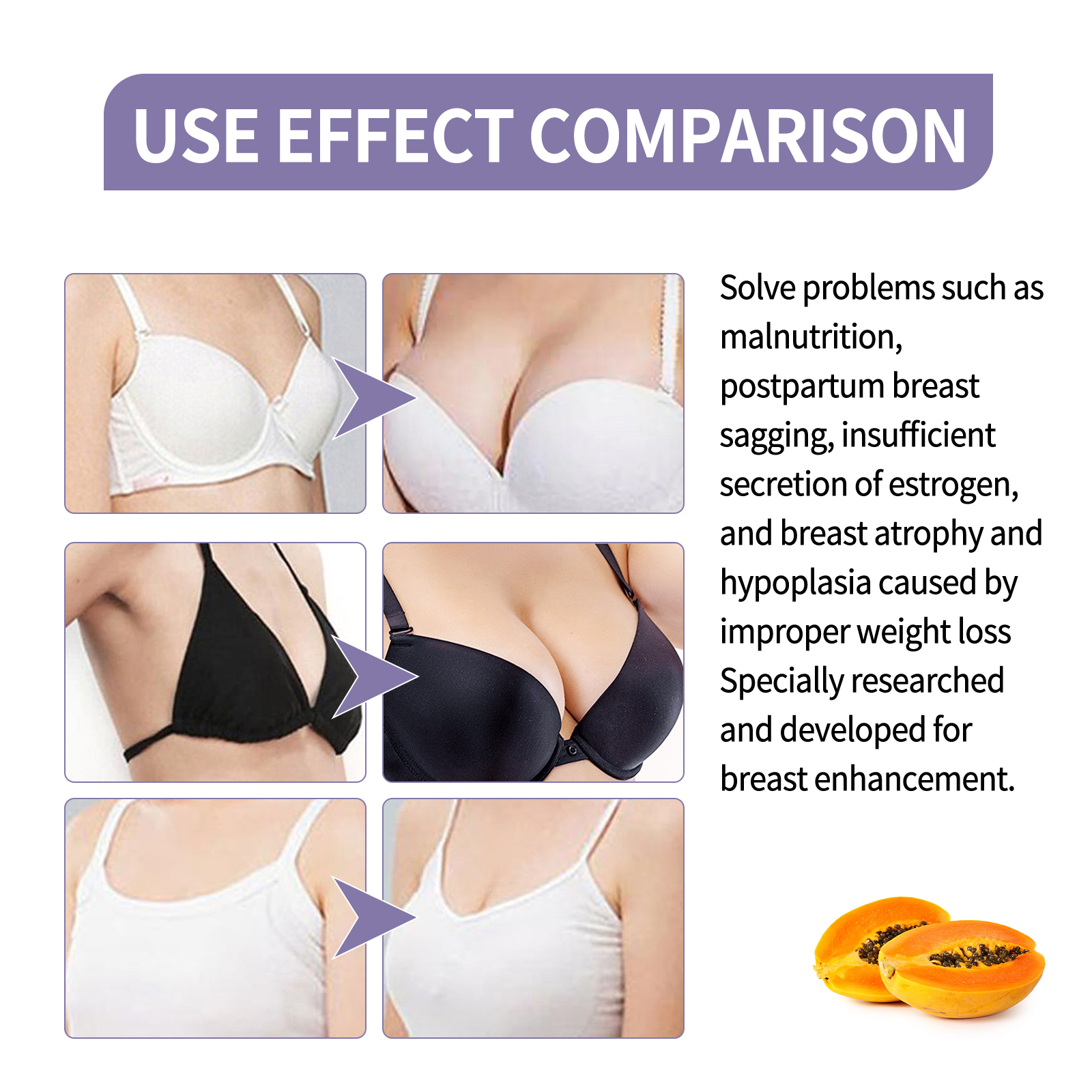 我们的胸部按摩精油,由木瓜提取物、啤酒花、透明质酸钠精心调配而成。专为血液循环和淋巴循环设计。使用方法极为便捷:首先,用热毛巾敷在乳房上1-2分钟。取适量精油,均匀涂抹于胸部。从下到上抬起胸部,并交替使用双手(大约10次)从内向外充分按摩,直到吸收。并且可以通过调节不同组织细胞的代谢活动,促进乳房发育。