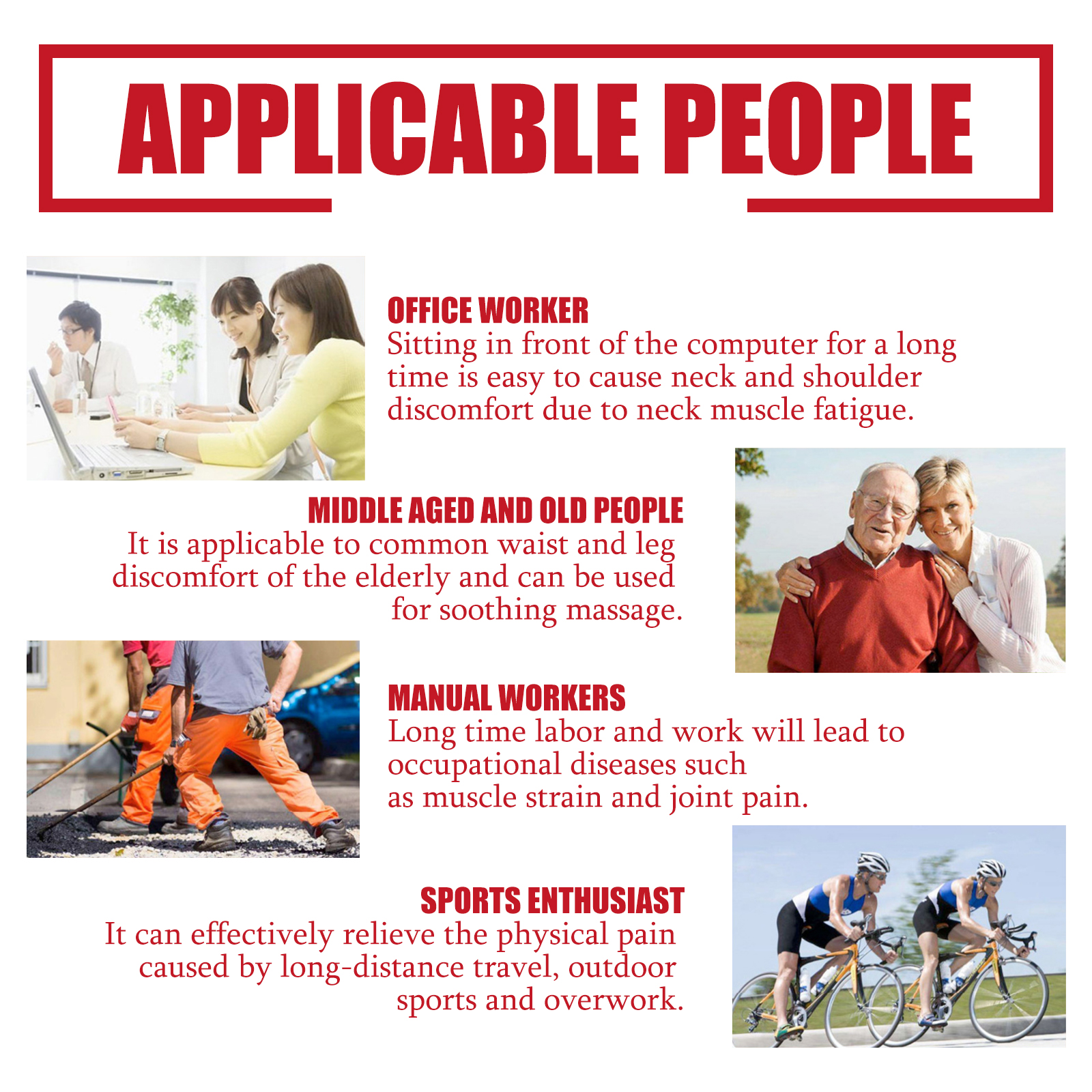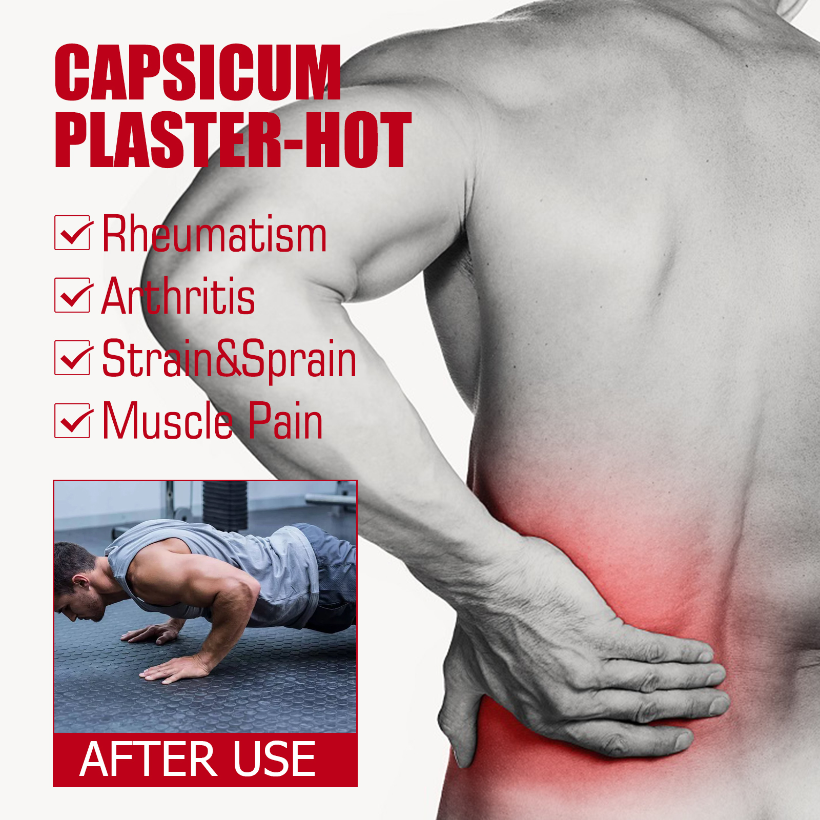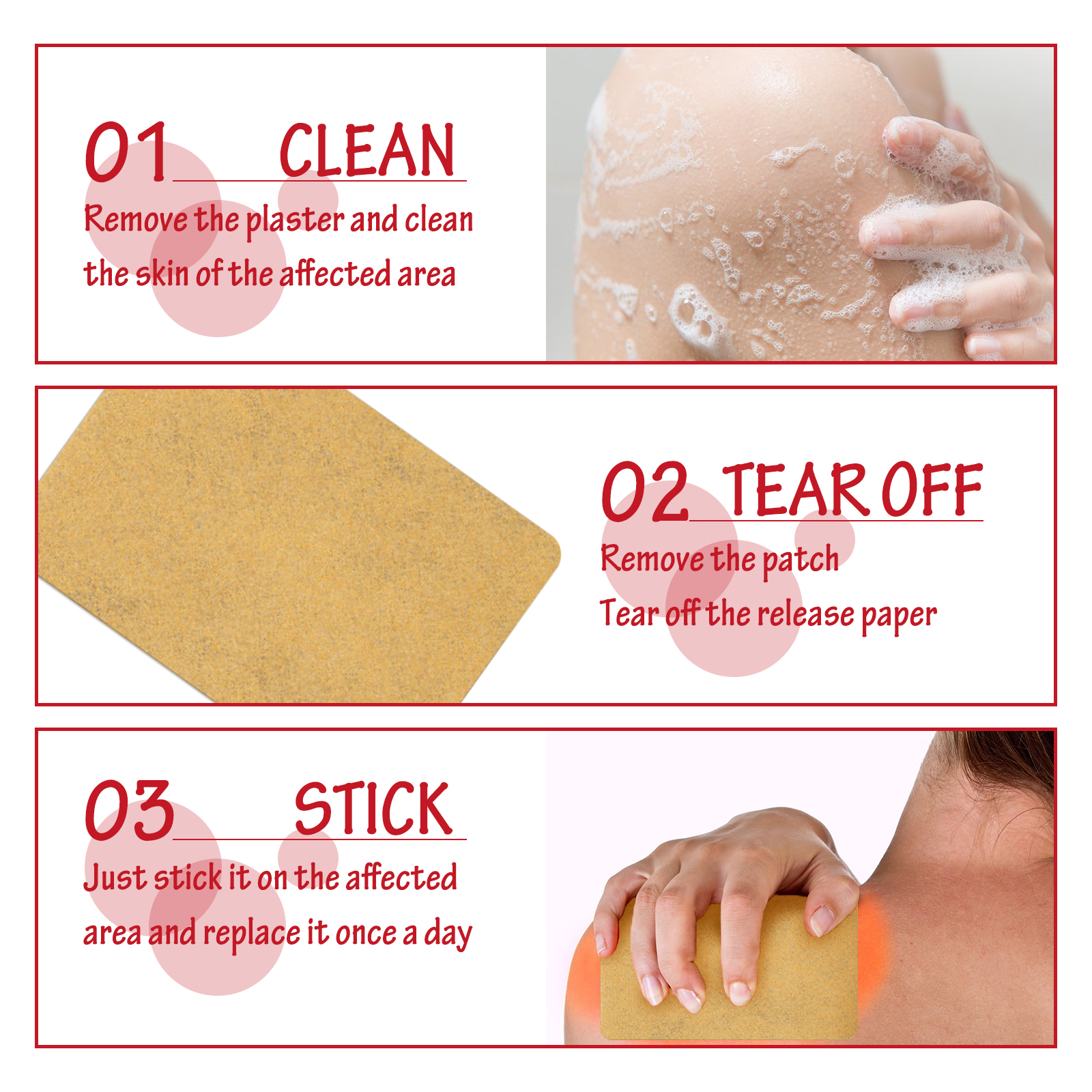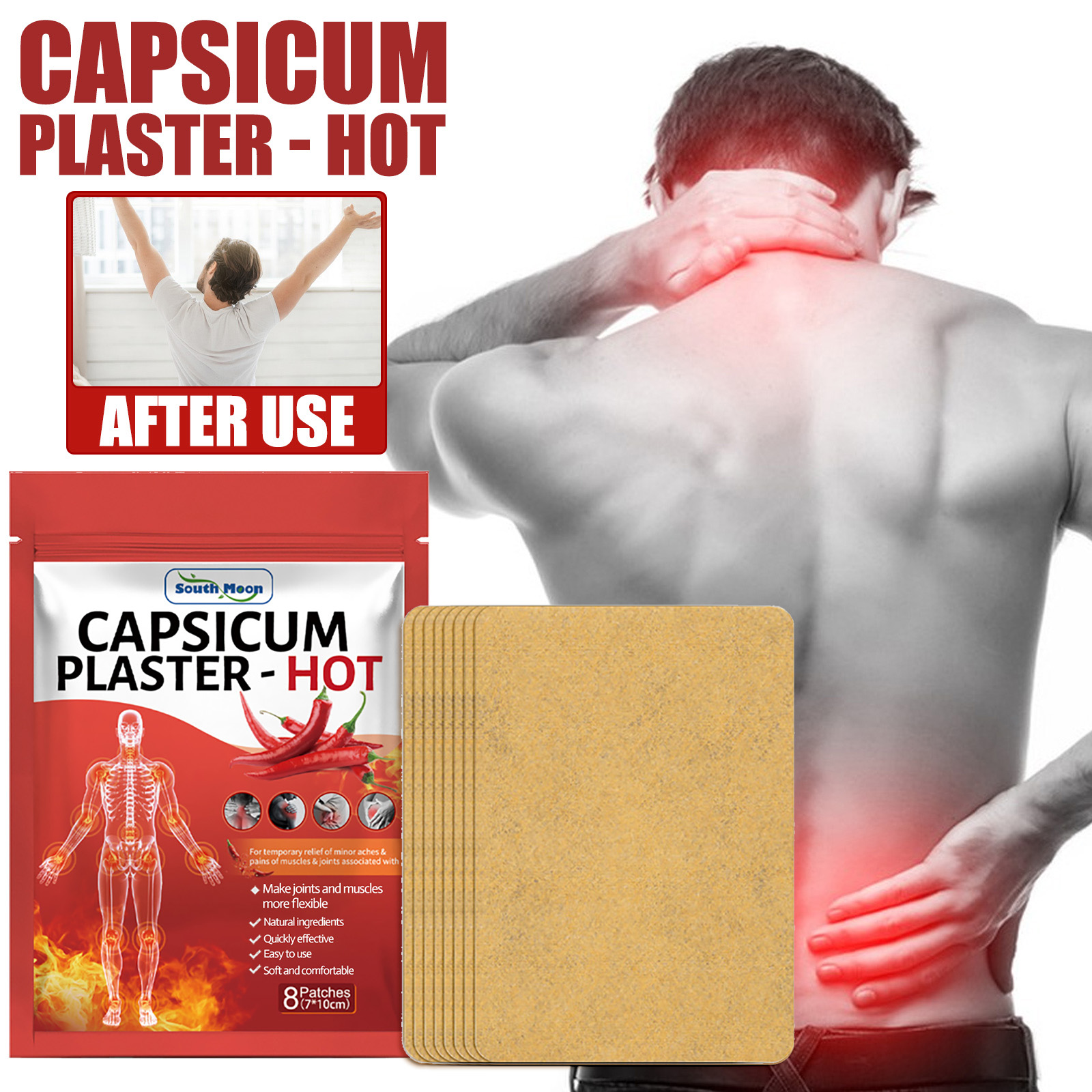我们的辣椒膏药贴含有辣椒素。它可以缓解肌肉和关节的疼痛,使用时提供柔软舒适的热量,在运动前为你的肌肉和关节做好准备。它的使用方法很简单:取下膏药并清洁患处皮肤,取出本品撕掉离型纸,将产品贴在患处,每天更换一次即可。深层渗透,有效缓解关节和肌肉酸痛,活络筋骨。