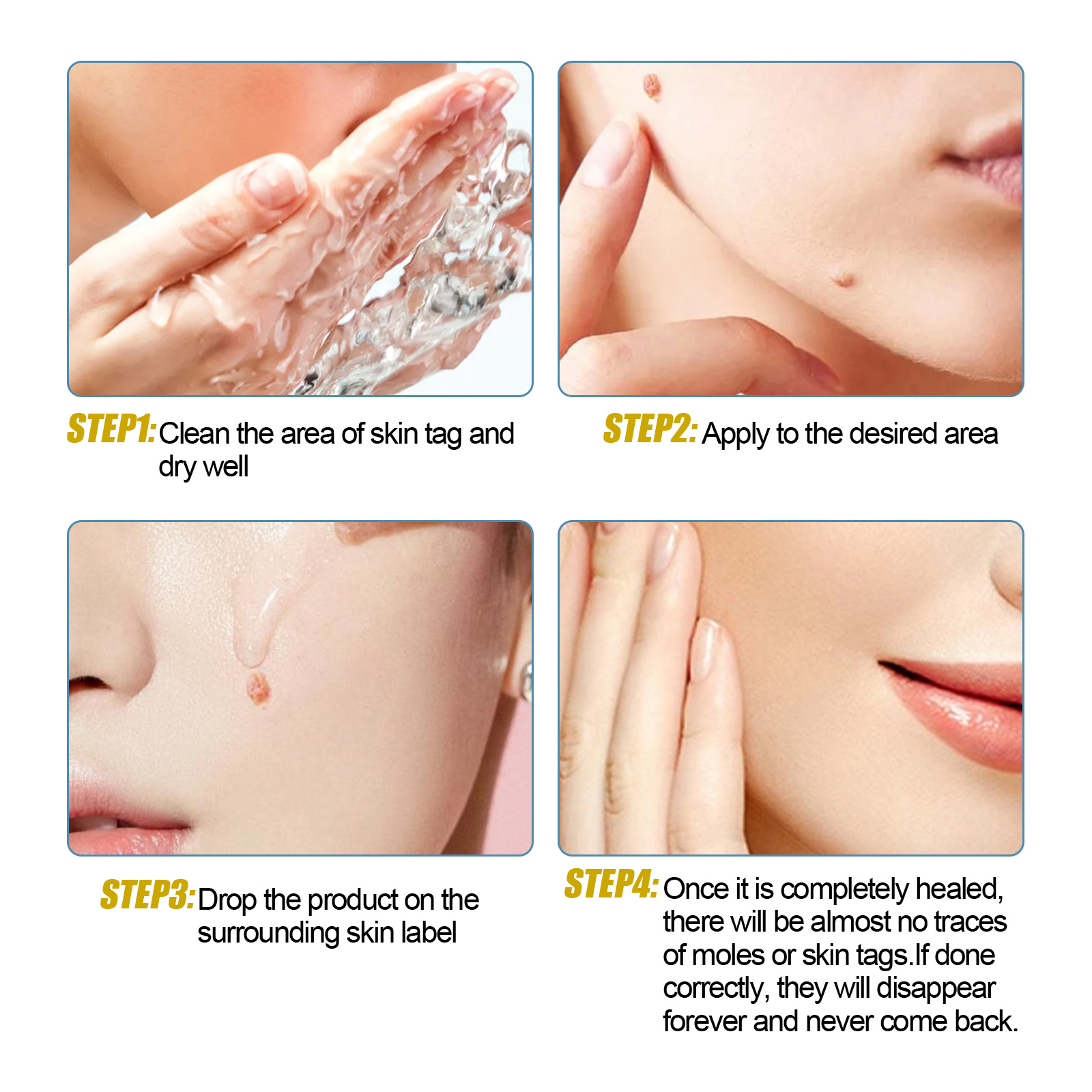 我们的克疣精华液含有血根草、紫苏。它有助于克痣修复皮肤。它的使用方法很简单:第一步:清洁皮肤标签区域并干燥,第二步:适用于所需区域,第三步:将产品滴在周围的皮肤标签上,第四步:一旦完全愈合,几乎不会有痣或皮赘的痕迹。如果方法正确,它们将永远消失,永远不会再出现。使用后斑点变暗,逐渐软化角蛋白直至溶解,去除疣。