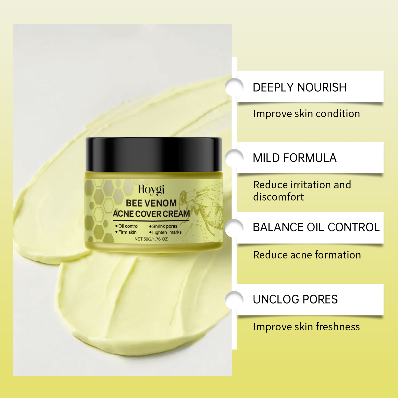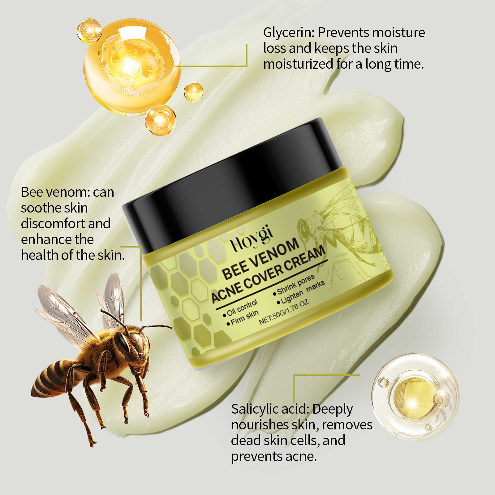 我们的蜂毒净痘霜含有甘油、蜂蜡、水杨酸。它可以改善皮肤状况,展现健康状态。它的使用方法很简单:清洁你的脸,取适量本品均匀涂于面部,轻轻打圈按摩,促进吸收。并且采用温和配方减少刺激和不适,适合敏感肌肤使用。