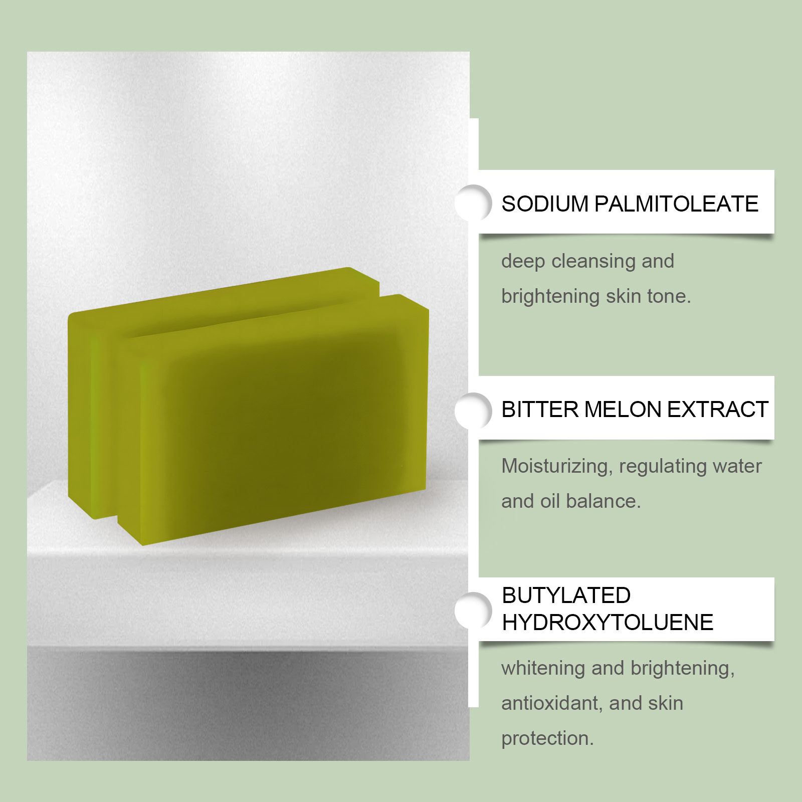 我们的苦瓜草本浴皂含有棕榈油酸钠、甘油。它可以深层清洁毛孔,去除污垢和油脂。锁住水分,有效滋润,并保持肌肤柔软嫩滑。它的使用方法很简单:用清水将肥皂搓出泡沫,涂抹在皮肤上按摩1分钟,再用清水冲洗干净。并且可以调节皮肤油脂分泌,防止面部油脂泛滥。
