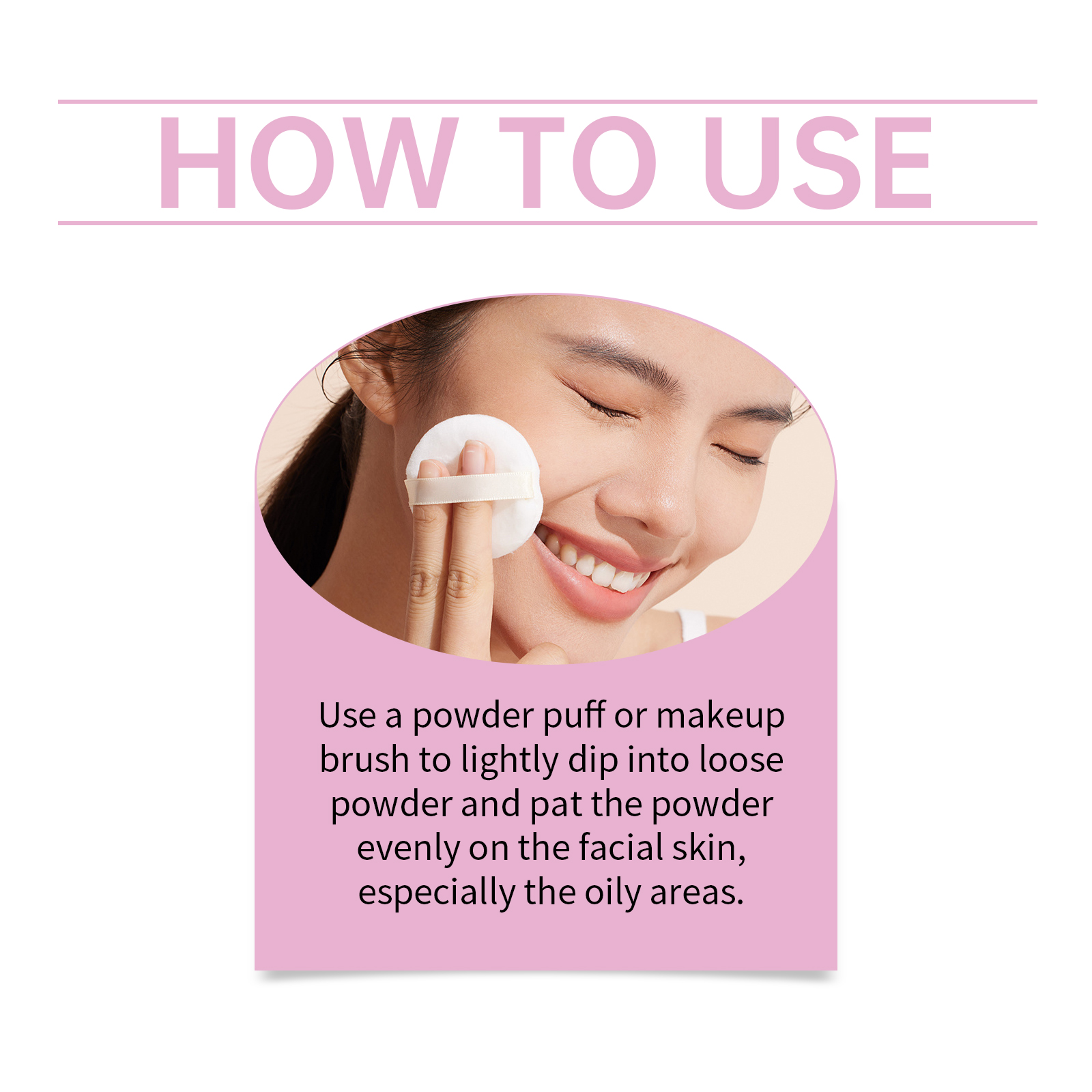 我们的定妆散粉含有滑石粉、云母、二氧化硅。它可以帮助肌肤保持水分,令妆容更自然。它的使用方法很简单:用粉扑或化妆刷轻轻蘸取散粉,将粉末均匀拍打在面部皮肤上,尤其是油性部位。并且可以有效控制油脂,防止油光,并能长时间保持哑光的妆容效果。