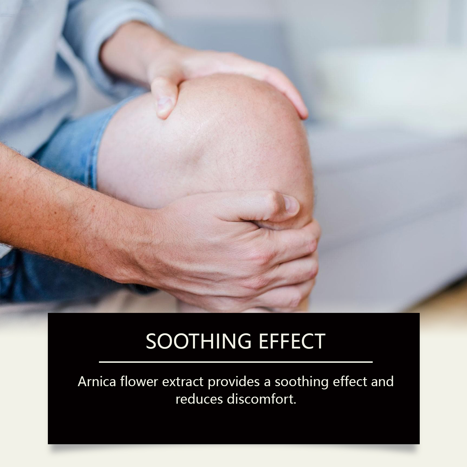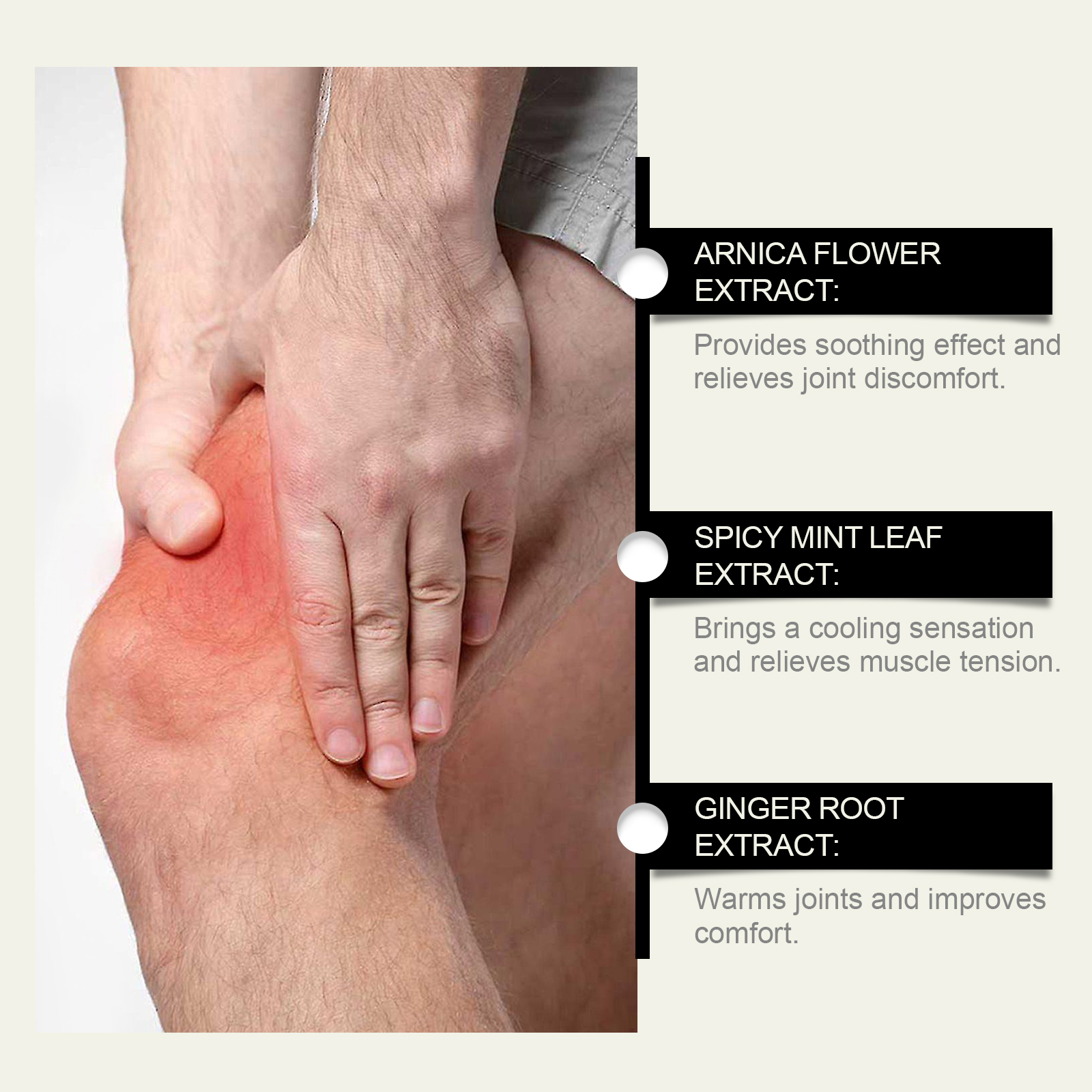 我们的关节护理霜含有山金车花提取物、辣薄荷叶提取物、姜根提取物。它可以有效锁住水分,缓解关节不适。它的使用方法很简单:清洁和干燥的皮肤。取本品适量,均匀涂于患处。轻轻按摩至吸收。并且有助于改善血液循环,增强关节灵活性。