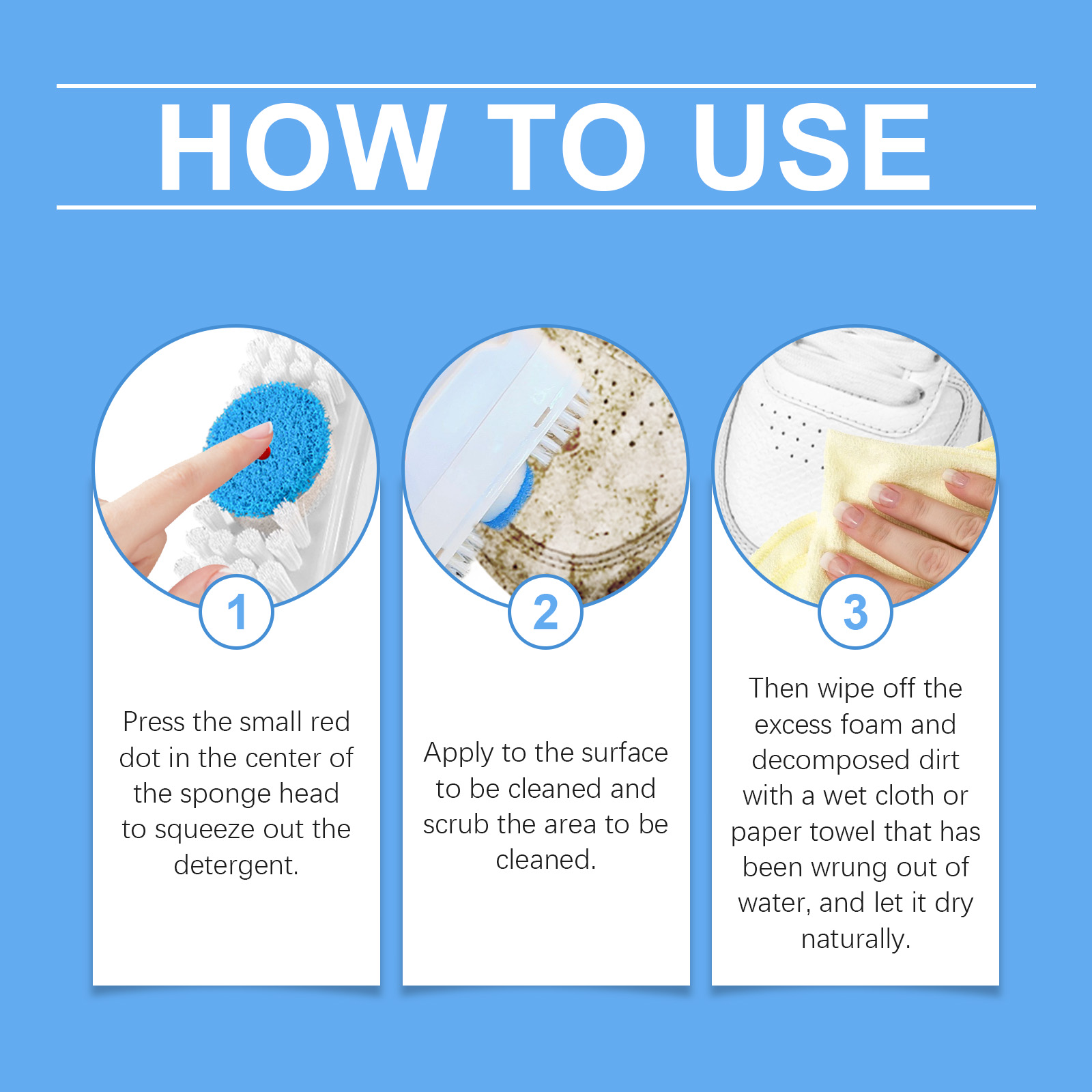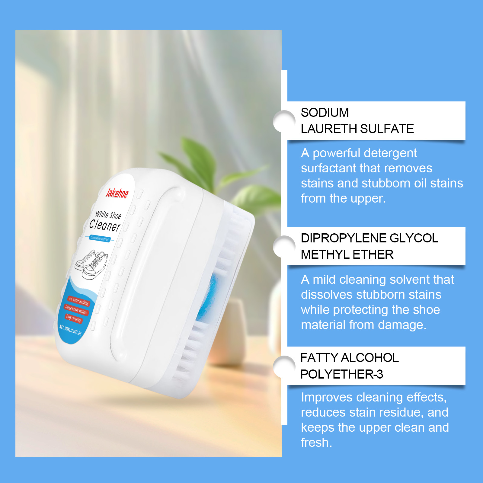 我们的小白鞋清洁刷含有月桂醇聚醚硫酸酯钠、脂肪醇聚醚-3。它可以有效分解顽固污渍使鞋面恢复如新鞋刷的设计可以快速去除污渍,节省时间和精力。它的使用方法很简单:按海绵头中央的小红点,挤出洗涤剂。涂于待清洁表面擦洗待清洁区域。然后用拧干水的湿布或纸巾擦去多余的泡沫和分解的污垢,让其自然风干。并且它柔软,不损坏鞋材,适用于各种材料制成的鞋子。