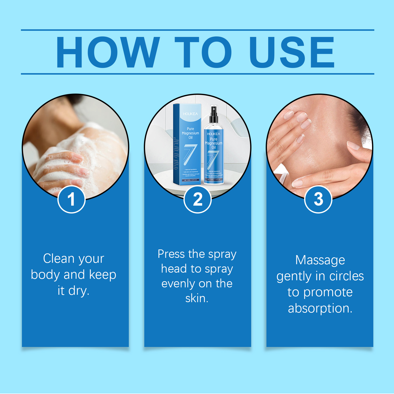 我们的矿物质镁油喷雾含有丁羟甲苯、氯化镁、生育酚(维生素E)。它可以为肌肤提供深层滋养,修复干燥区域并使肌肤长时间保持滋润柔软。它的使用方法很简单:清洁身体并保持干燥。按下喷雾头,均匀地喷洒在皮肤上。轻轻打圈按摩以促进吸收。并且为敏感肌肤设计,呵护娇嫩肌肤。