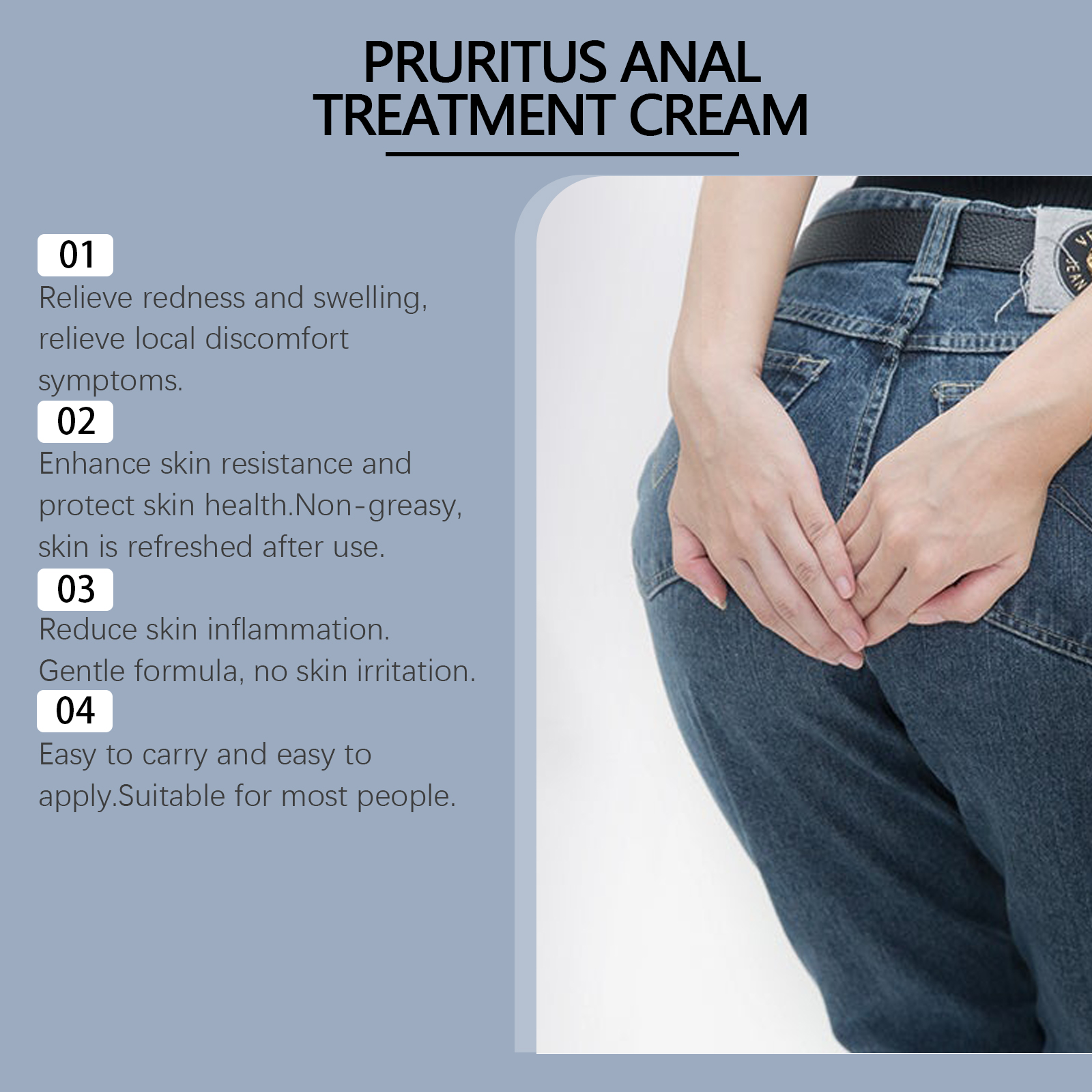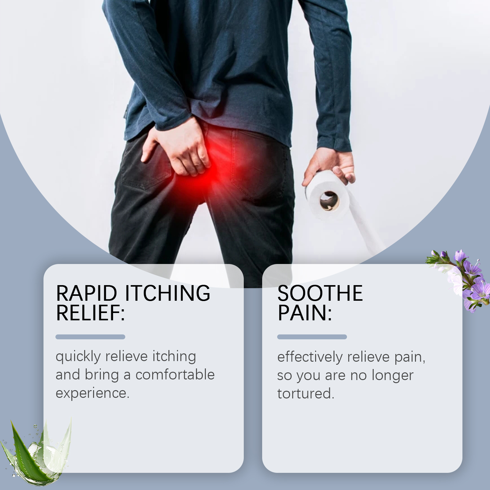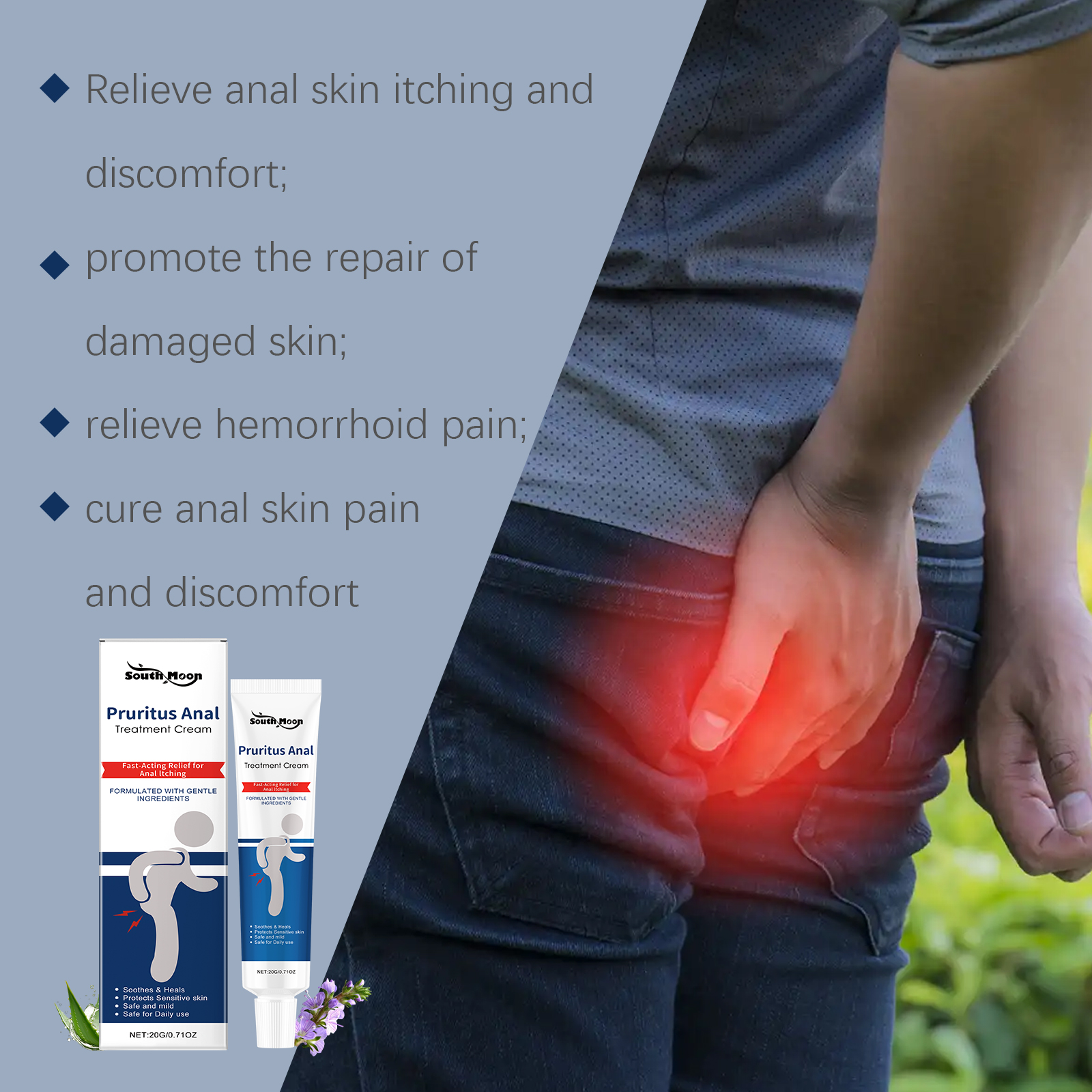 我们的身体舒缓软膏含有紫草根、薄荷叶。它可以快速缓解瘙痒有效缓解疼痛,并带来舒适,让你不再受折磨。它的使用方法很简单:清洁肛门皮肤并保持干燥,取适量本品涂于肛门皮肤,轻轻按摩至吸收。并且可以亲肤无刺激。精心包装,便于携带和储存。