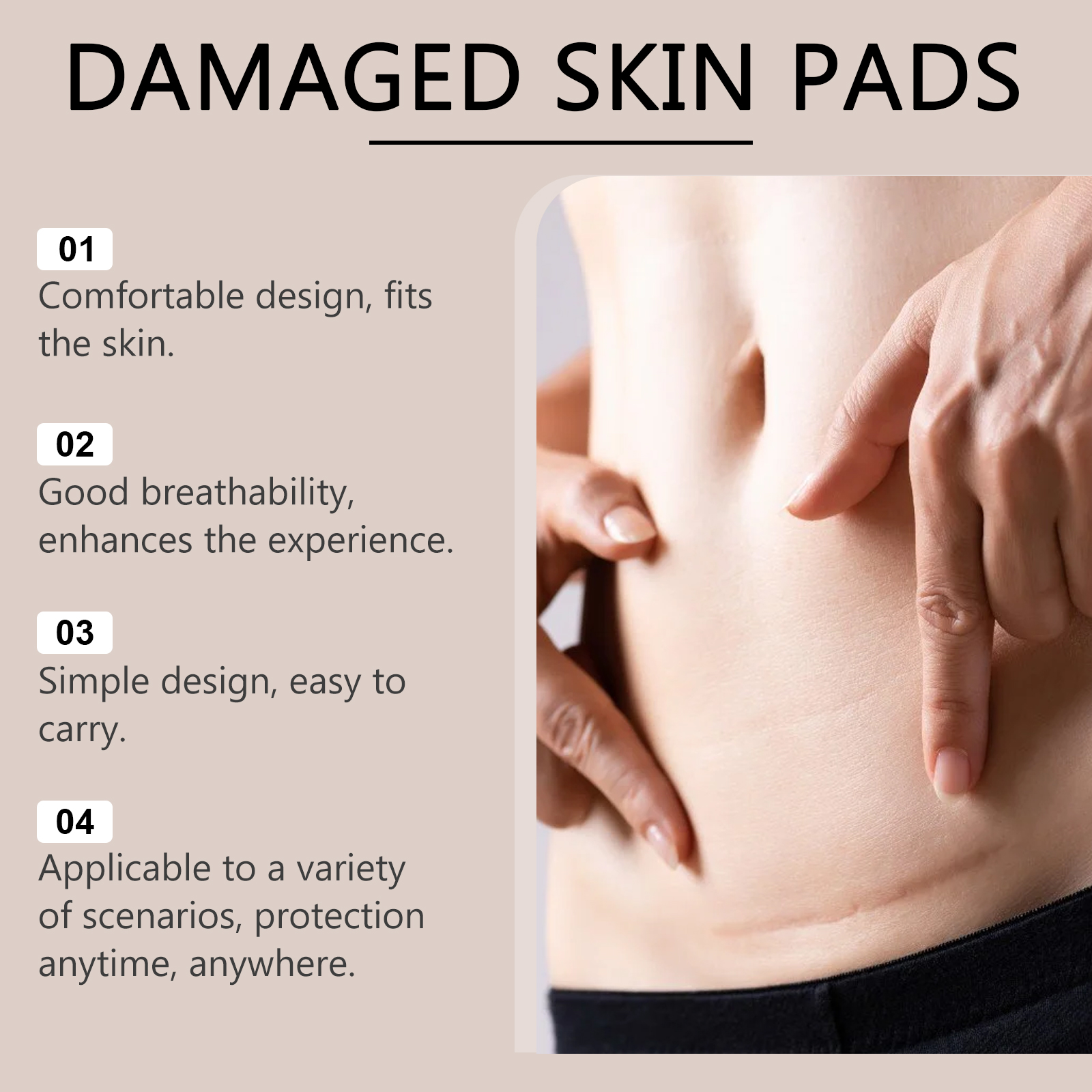 我们的皮肤护理贴含有PU膜。它可以温柔护理皮肤。采用柔软的材料设计,确保长时间的舒适。它的使用方法很简单:将垫子放在受损的皮肤区域,以确保牢固贴合。并且可以适合肌肤表面,带来全天的舒适。