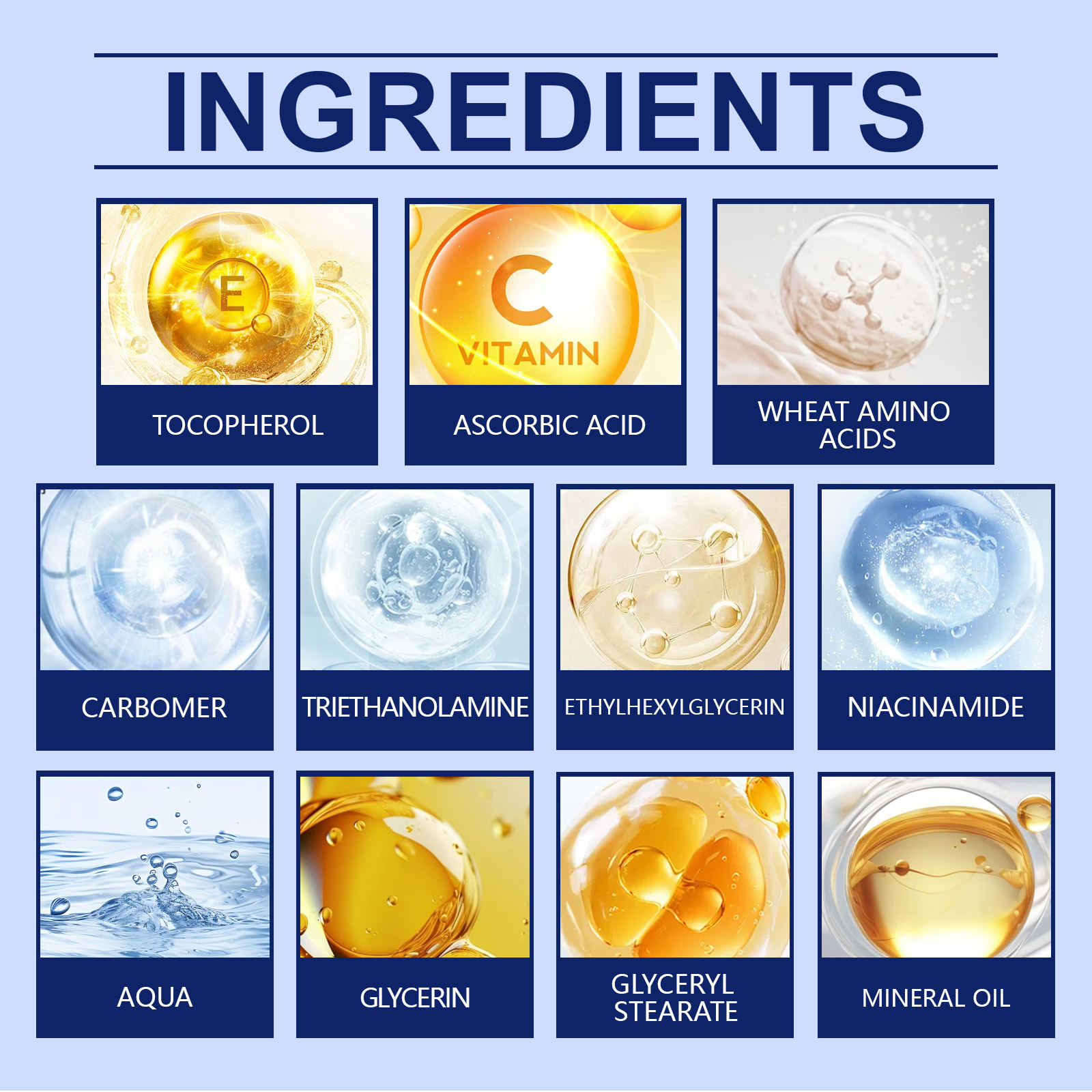 我们的去皱紧致润肤霜含有生育酚、抗坏血酸、小麦氨基酸。它可以深层滋养配方,呵护每一寸肌肤。它的使用方法很简单:清洁脸部并保持干燥。将本品均匀涂于面部,按摩至吸收。并且可以减少细纹和皱纹保持皮肤光滑。