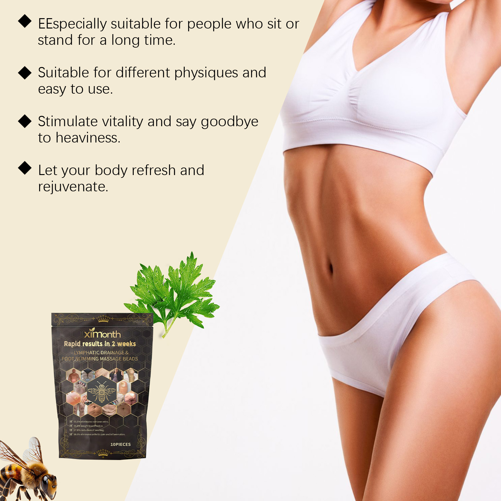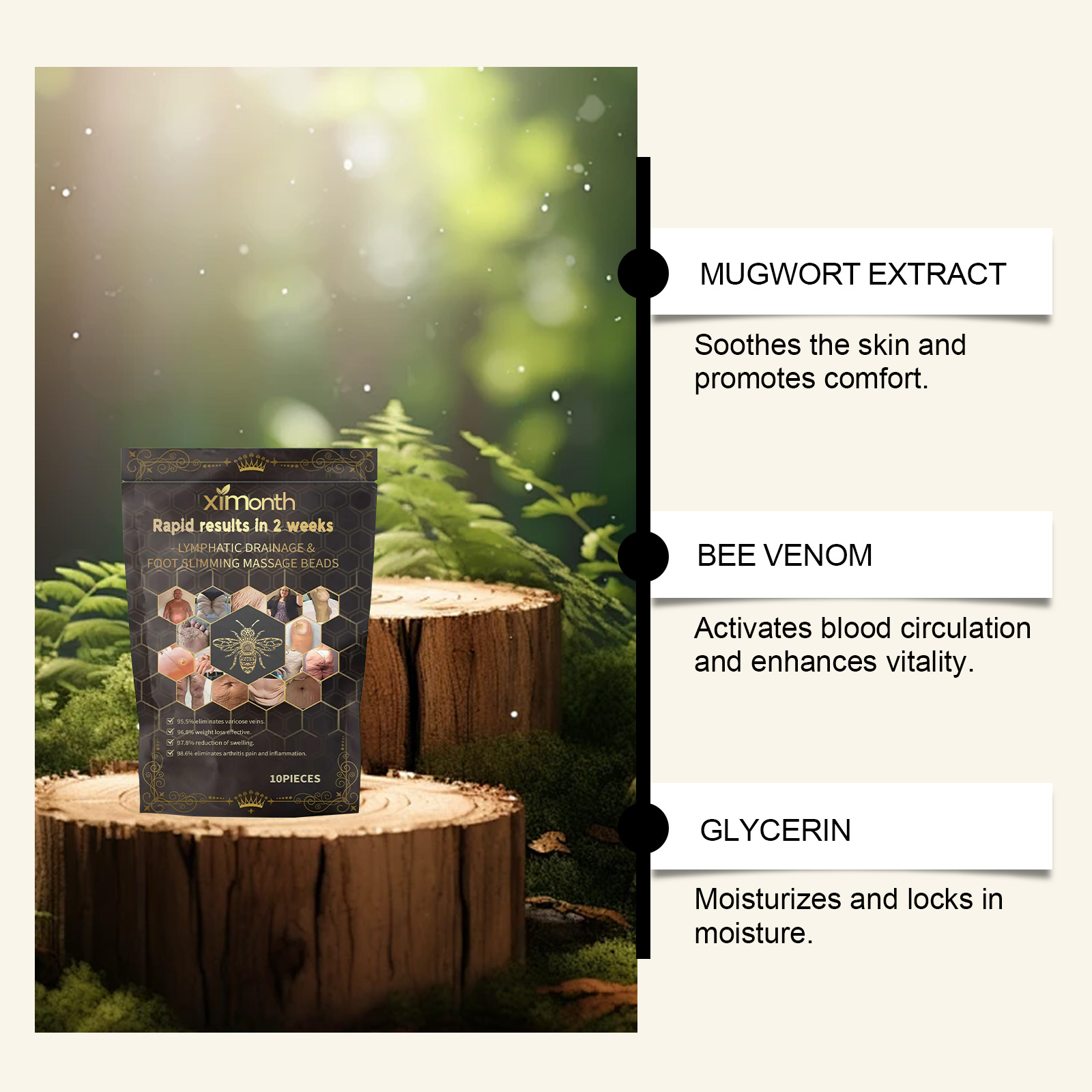 我们的蜂毒护理足浴珠含有艾草提取物、蜂毒。它可以改善血液循环,缓解疲劳。深层清洁身体废物并支持健康。它的使用方法很简单:取出1-2瓶该产品,放入适合足浴的容器中,加入40-50度的温水。待产品完全溶解后,将双脚浸泡其中,并静置15-30分钟。浸泡后,将双脚擦干。并且可以帮助身体放松和缓解压力。