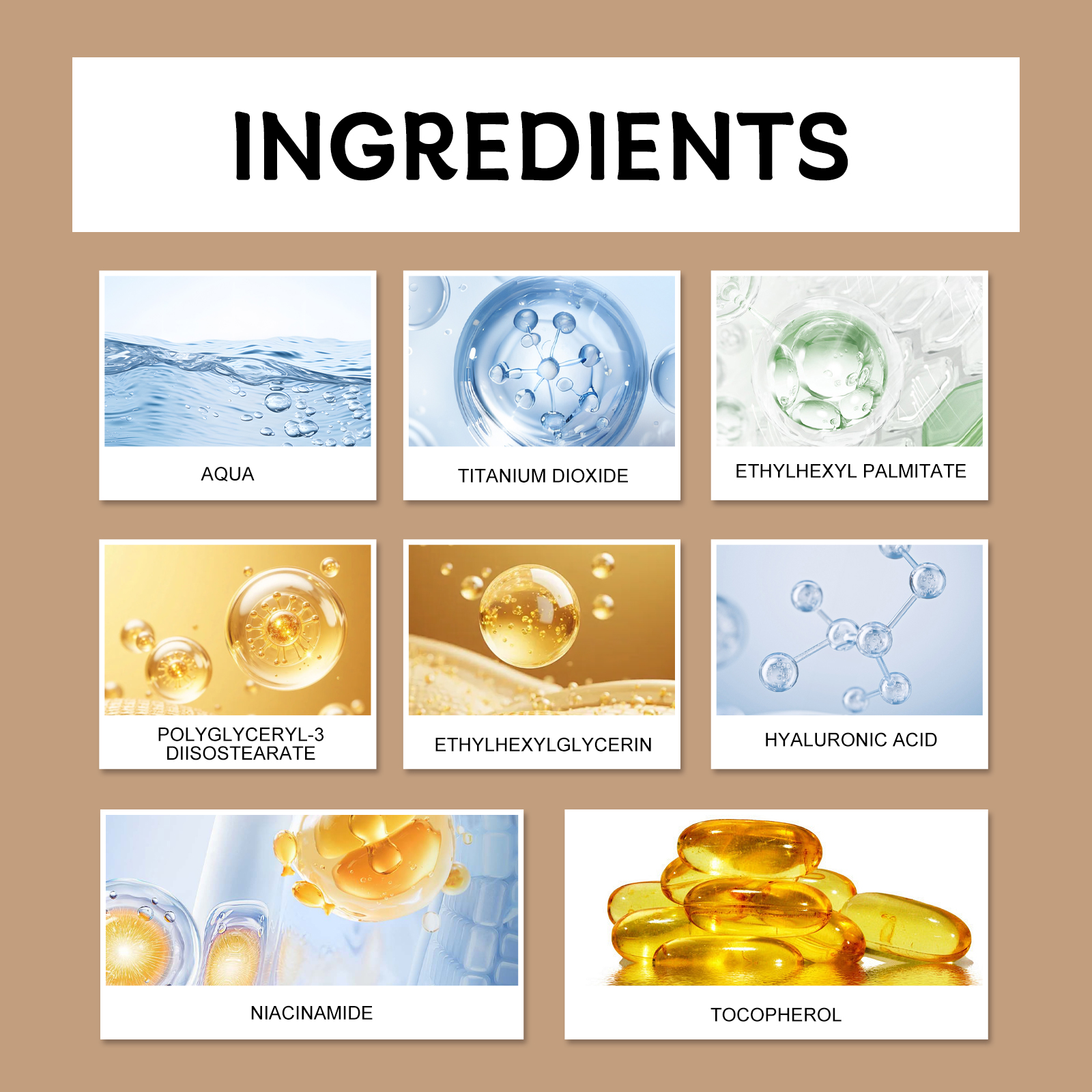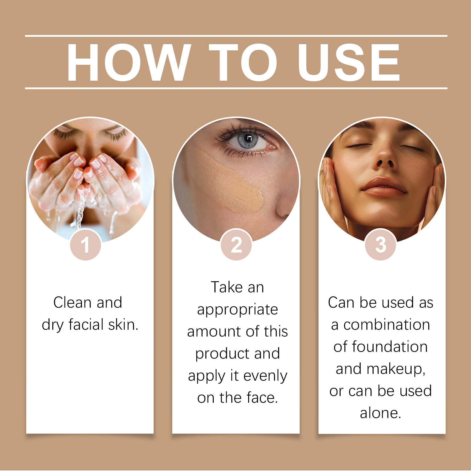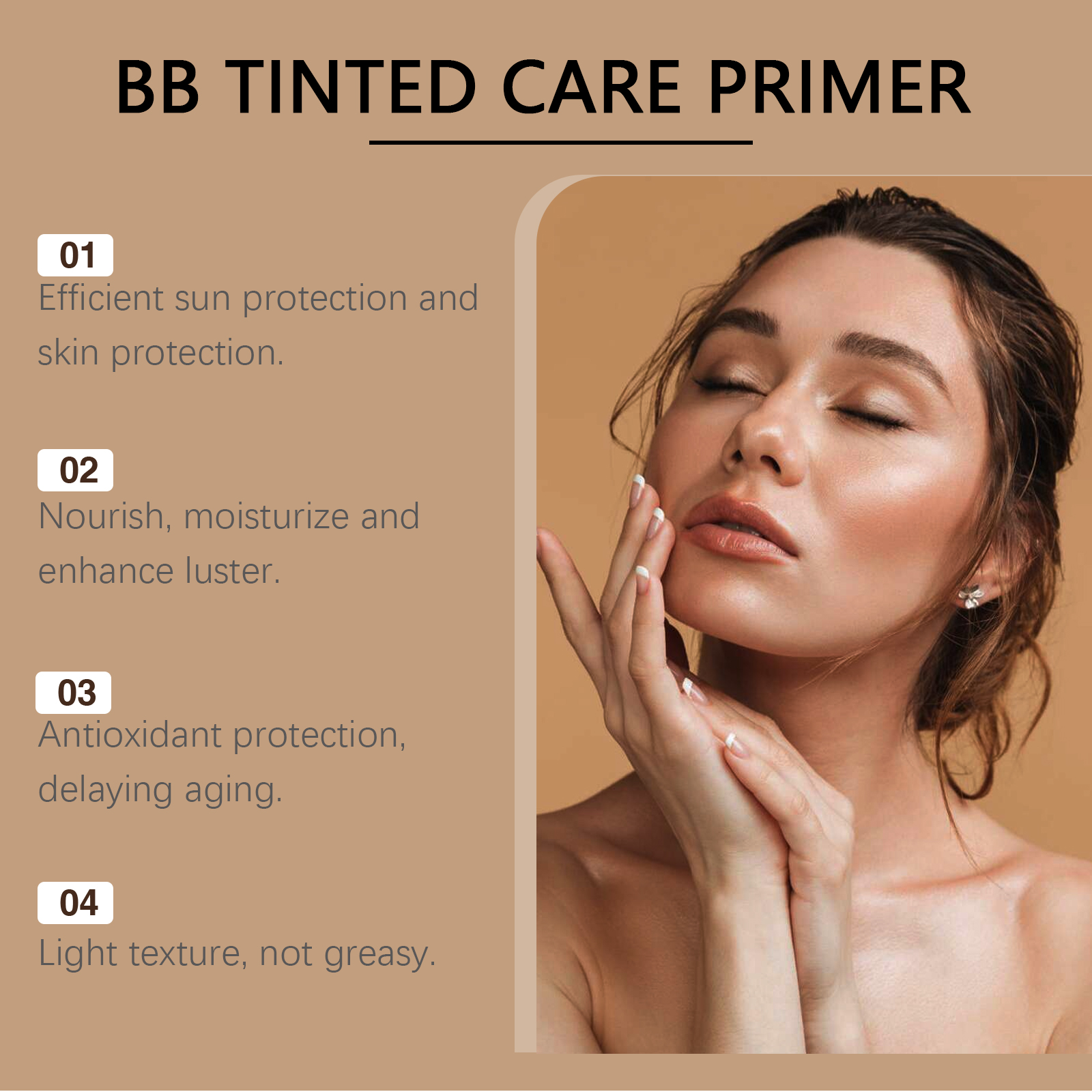 我们的防护BB霜(小麦色)含有烟酰胺、生育酚(维生素E)、霍霍巴籽油。它可以保护皮肤免受紫外线伤害。它的使用方法很简单:清洁和干燥面部皮肤。取适量本品均匀涂抹于面部。可以作为粉底和化妆品的组合使用,也可以单独使用。并且可以增强皮肤光泽并减少干燥。