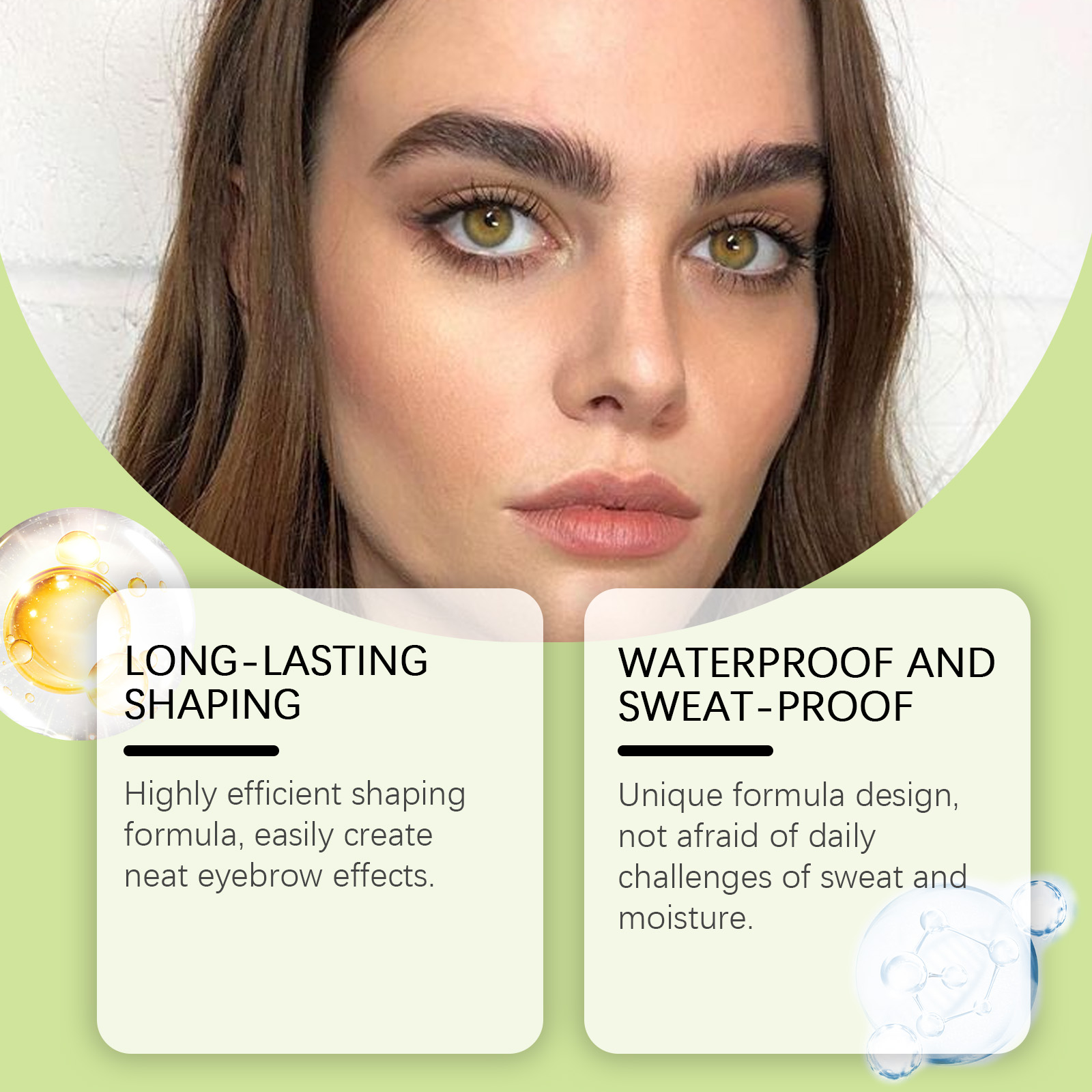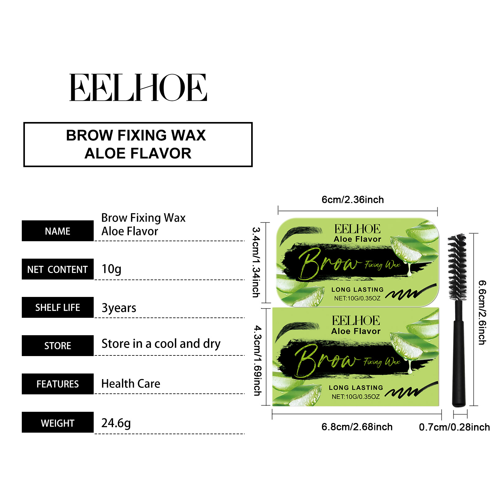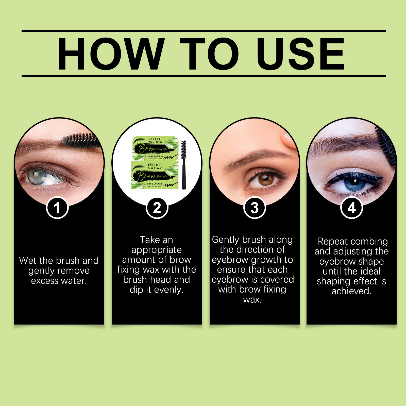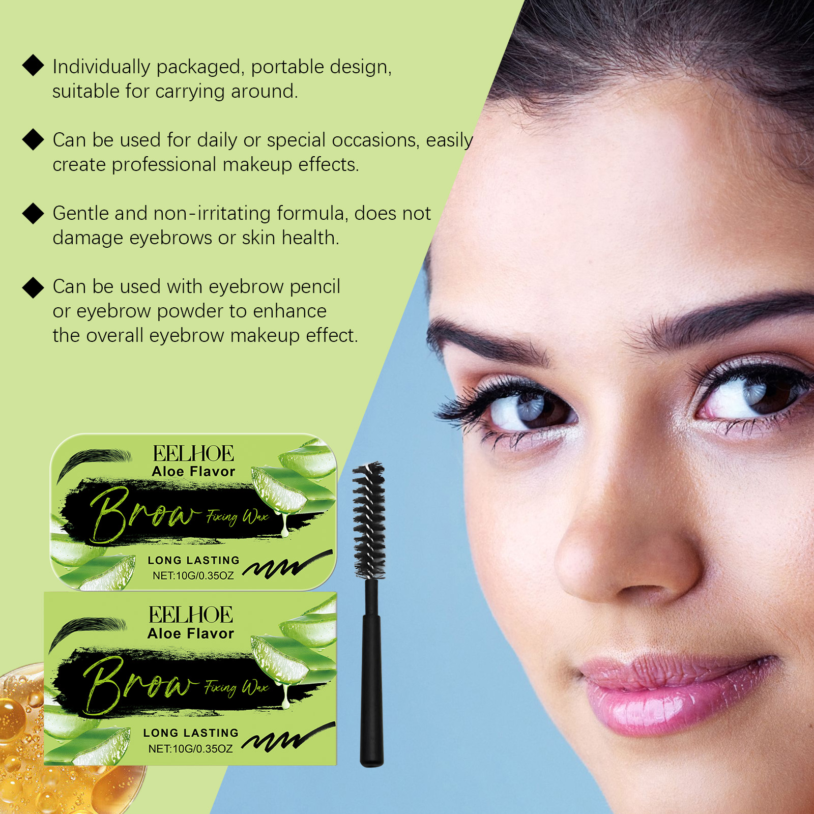 我们的眉毛造型蜡(芦荟味)含有三乙醇胺、卡波姆、芦荟叶提取物。它可以轻松打造整齐的眉形效果。它的使用方法很简单:把刷子弄湿,轻轻去掉多余的水分。用刷头取适量眉部固定蜡,均匀涂抹。轻轻地沿着眉毛生长的方向刷,确保每一根眉毛都覆盖上眉毛固定蜡。重复梳理和调整眉形,直到达到理想的成形效果。并且采用独特的配方设计,不怕日常的汗水和潮湿的挑战。