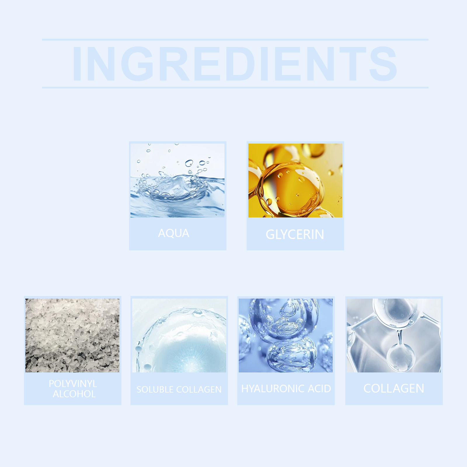 我们的胶原蛋白撕拉面膜含有可溶性胶原、胶原蛋白、透明质酸。它可以快速补充肌肤水分,令肌肤水润光泽。它的使用方法很简单:保持脸部干燥。取适量本品均匀涂抹于面部肌肤上,等待10-15分钟,轻轻剥下面膜,用温水洗掉即可。可与工具一起使用。并且轻易撕掉毛孔中的污垢,清洁毛孔中的残留物。
