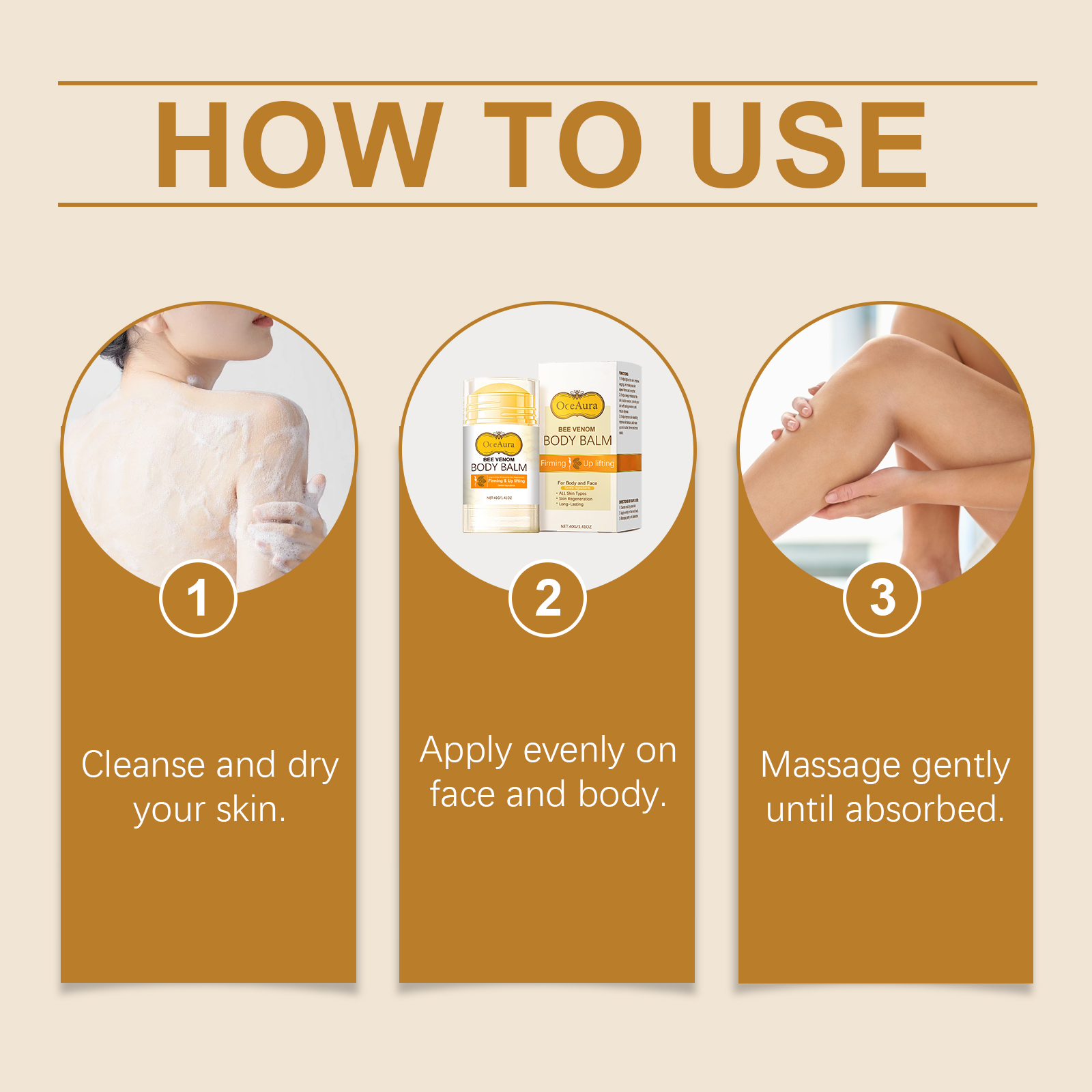 我们的蜂毒皮肤护理棒含有蜂毒、矿脂、白蜂蜡。它可以改善肌肤松弛,增强紧致度。它的使用方法很简单:清洁和干燥你的皮肤。均匀涂抹于面部和身体。轻轻按摩至吸收。并且可以深层滋润肌肤,让肌肤保持长时间的滋润。