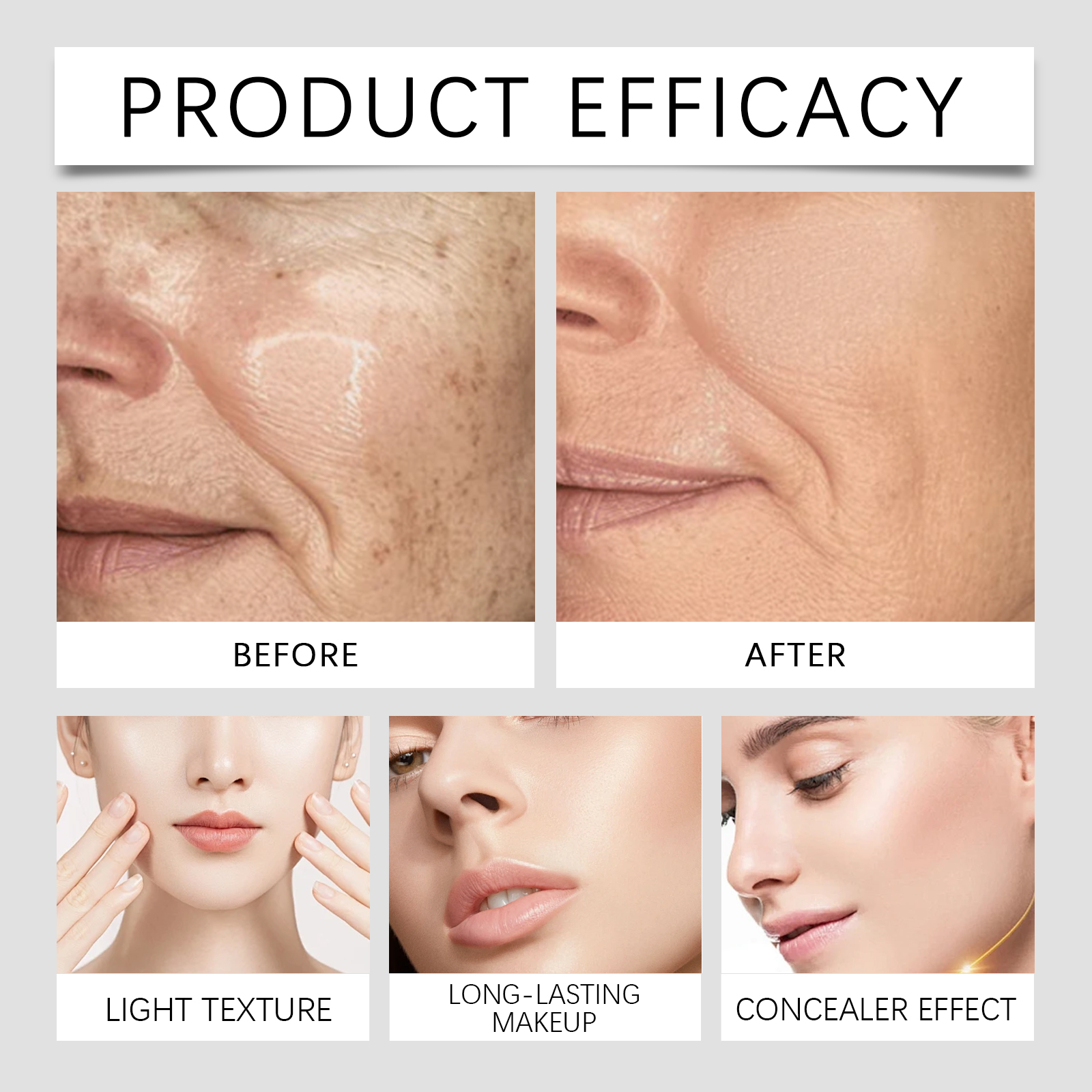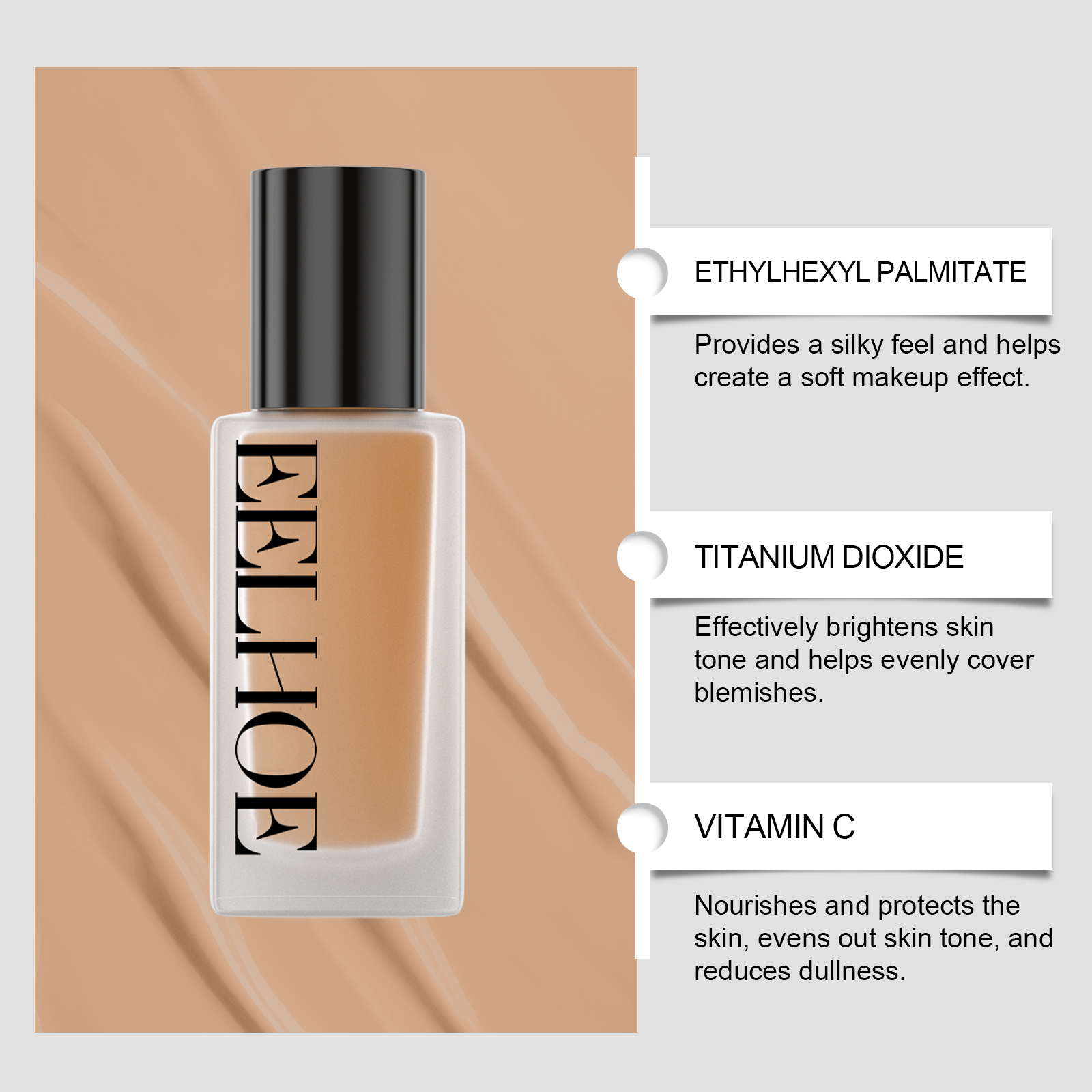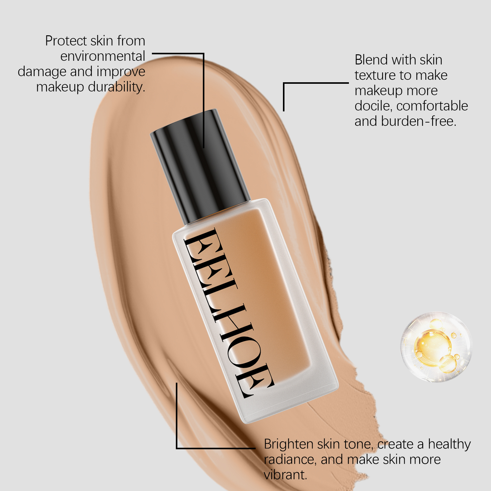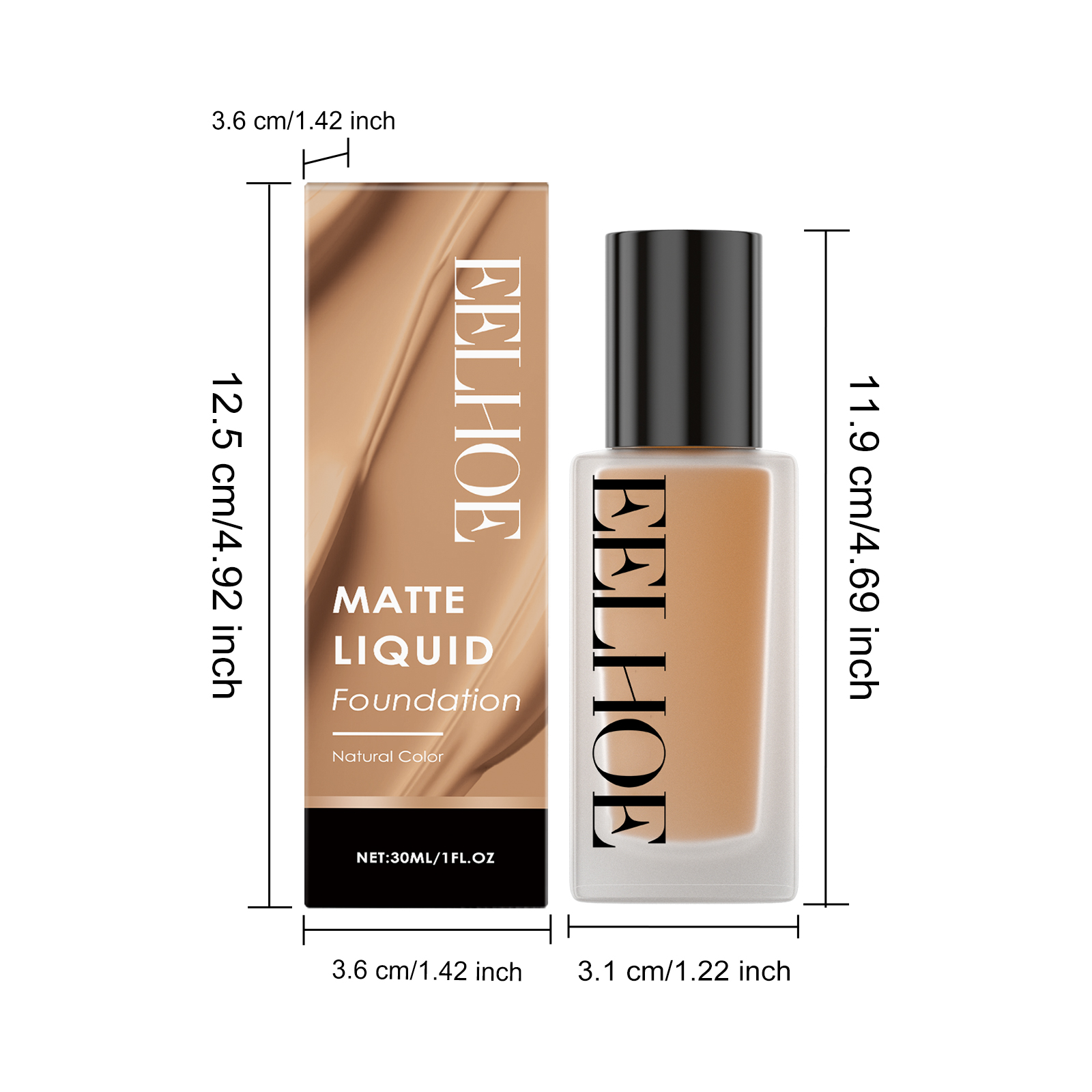 我们的哑光无暇粉底液含有二氧化钛、维生素C(抗坏血酸)。它可以轻质感易于扩散,创造出裸体妆效。它的使用方法很简单:基础护肤后,取适量本品从面部中央向外涂抹,并用指尖、海绵或刷子混合均匀。并且可以有效的控油和锁妆,妆容整天焕然一新。