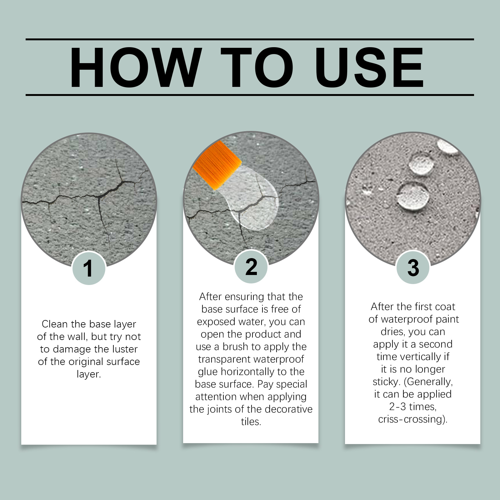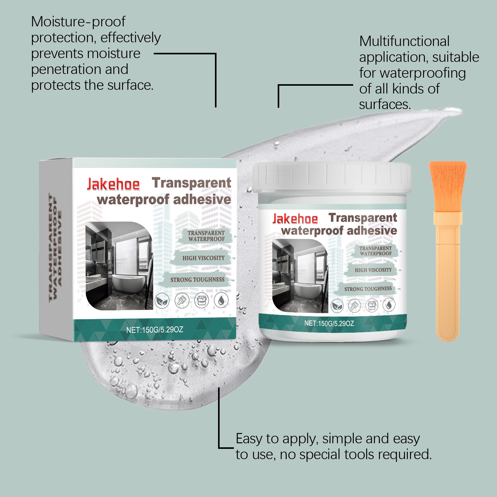 我们的多功能透明防水胶含有聚氨酯乳液、防水剂。它使用高级配方为基底表面创建坚固持久的保护屏障,可以有效抵抗水分渗透。告别与水分相关的各种问题、漏水和不雅污渍。透明、耐用、附着力强防水、防紫外线,有效隔离空气、水和湿气。它的使用方法很简单:清洁墙壁的底层,但尽量不要损坏原始表面层的光泽。在确保基面没有暴露的水分后,您可以打开产品,并使用刷子将透明防水胶水水平涂抹到基面上。在涂抹装饰瓷砖的接缝时请特别注意。在第一层防水漆干燥后,如果它不再粘稠,可以垂直地再涂一次(通常可以涂2-3次,交叉涂抹)。并且可以广泛使用,适用于各种表面,包括木材、墙壁。混凝土、砖石等。非常适合甲板、围栏、车道以及无数需要防水安全保护的室内和室外空间。