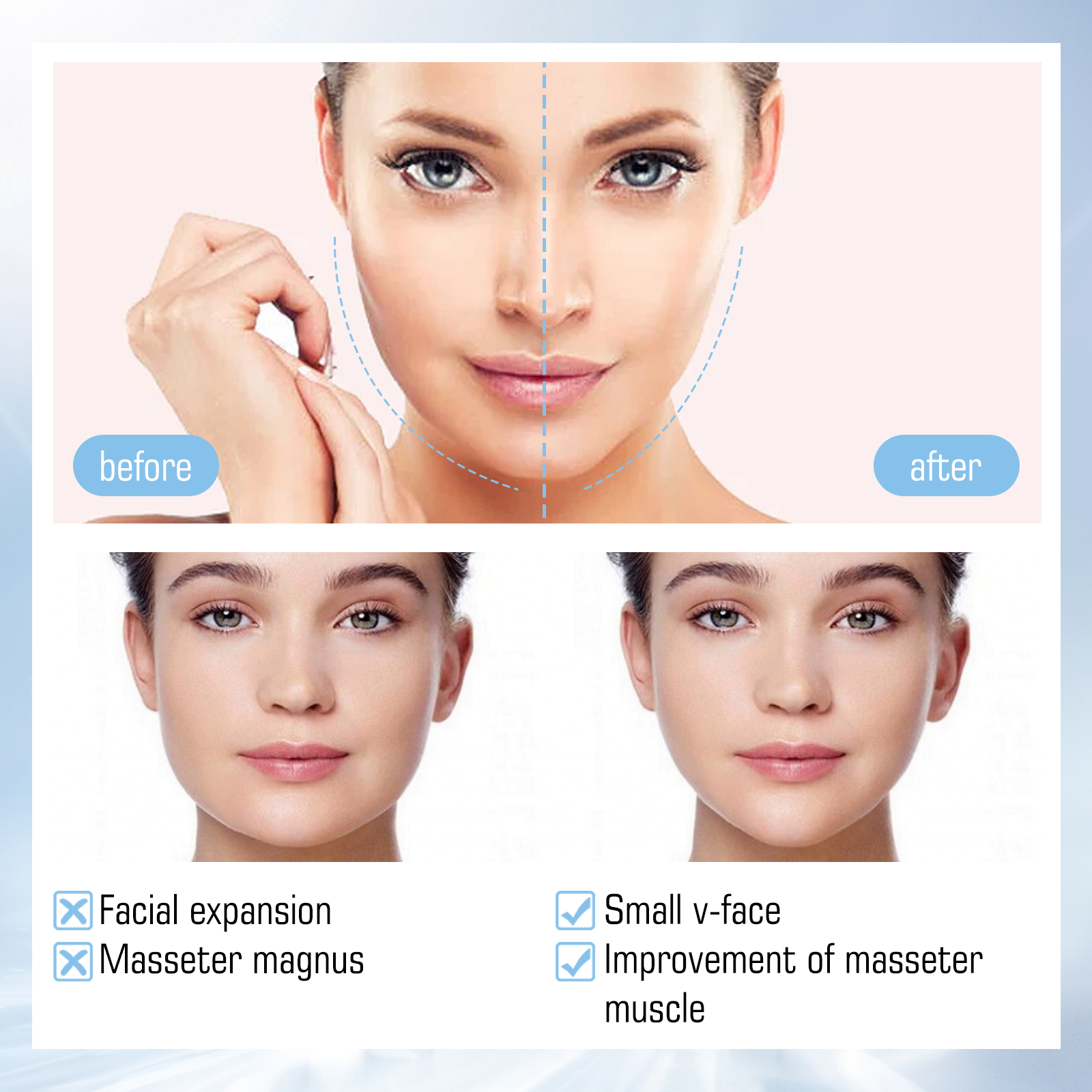 我们的V型提升面膜(盒装)含有胶原蛋白、透明质酸、芦荟提取物。它可以提升脸颊和下巴线条,收紧皮肤,改善双下巴和肉下巴,可以稳固脸部轮廓,改善松弛肌肤,淡化细纹,创造立体轮廓。它的使用方法很简单:清洁你的面部皮肤,打开包装取出面膜,均匀地贴在脸上,静置15-20分钟,让精华液完全吸收,揭开面膜,用水冲洗掉残留物即可。可以让脸部整体轮廓得到改善,脸部紧致,下巴线条凸起,侧面照更美。