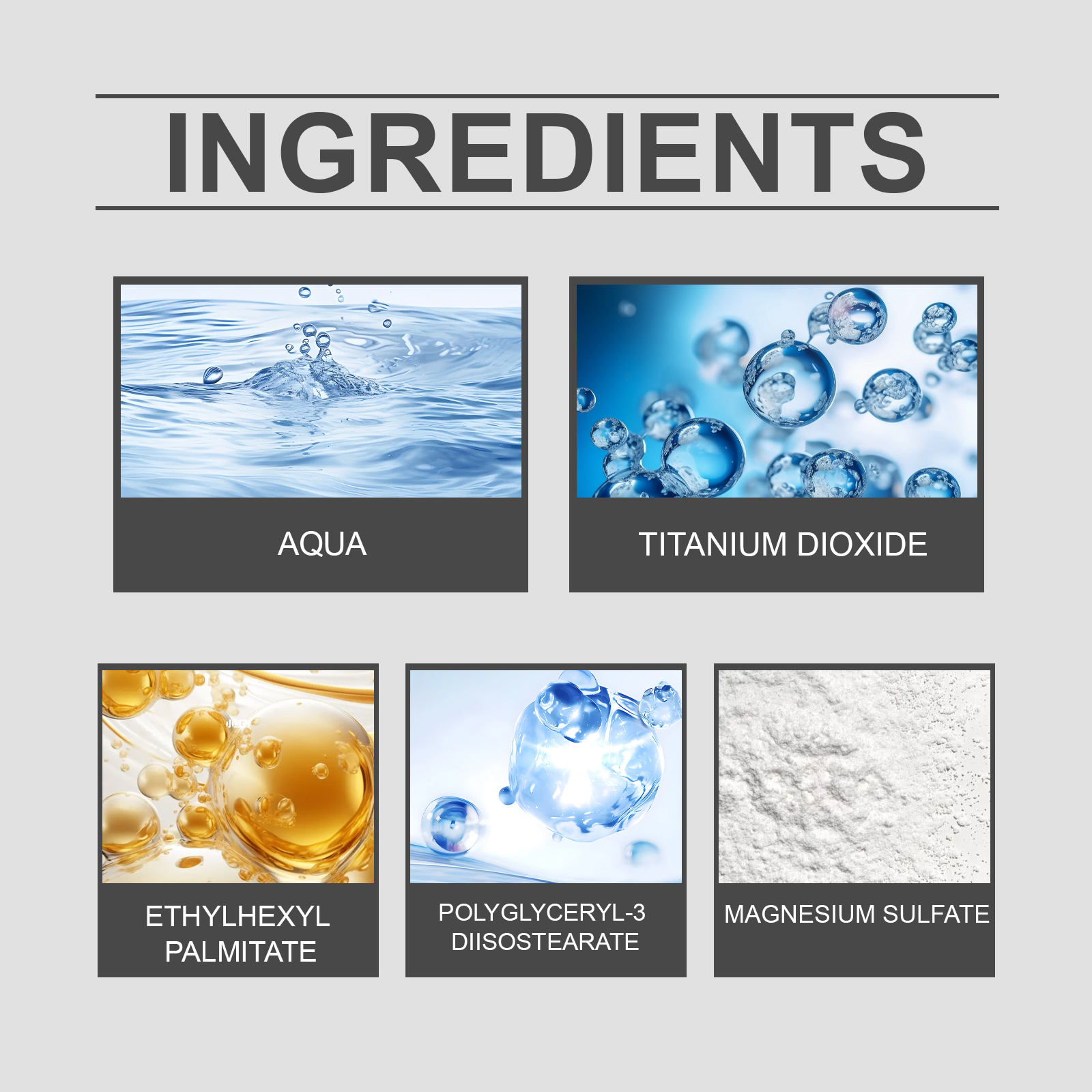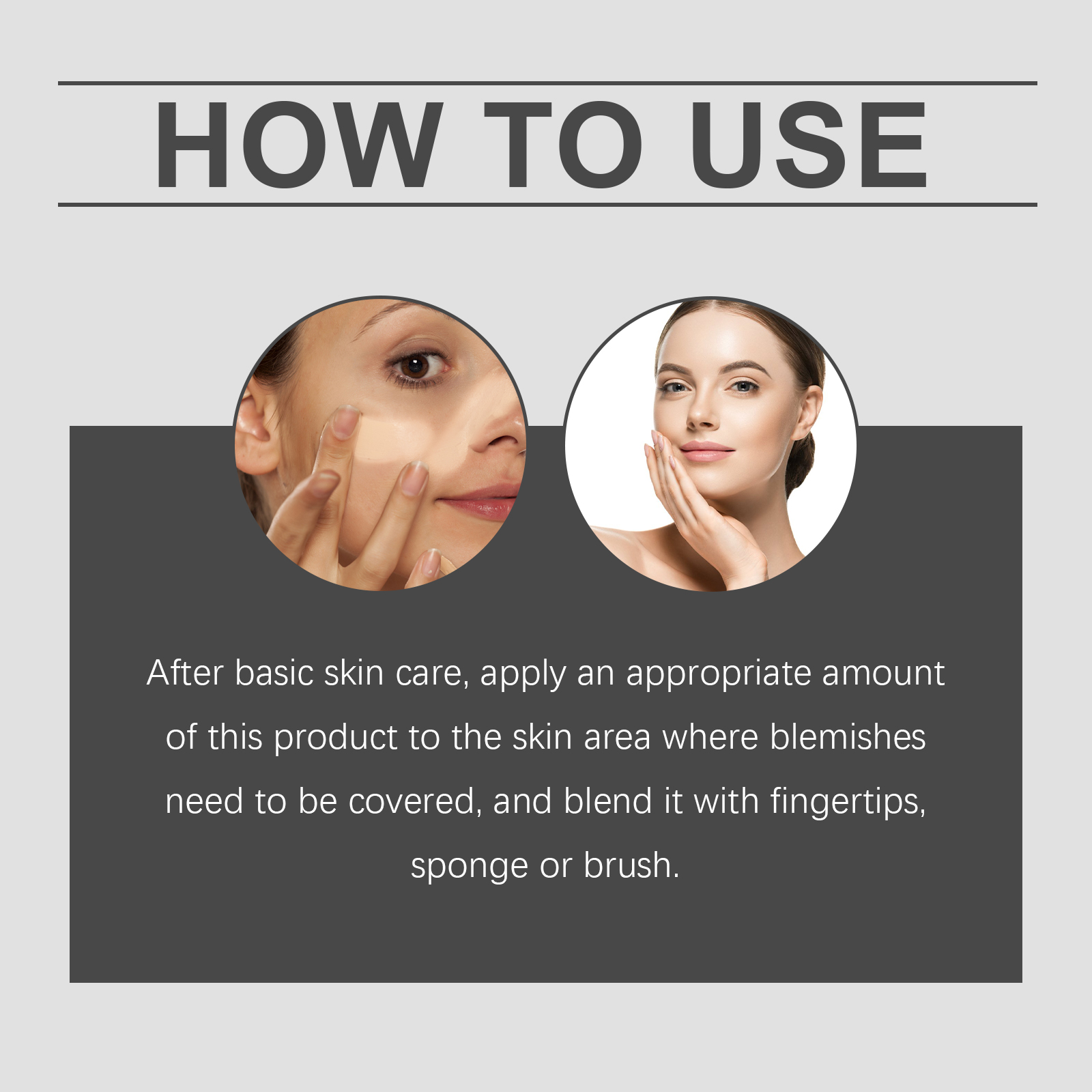 我们的保湿遮瑕膏,由二氧化钛、棕榈酸乙基己酯精心调配而成。专为轻松遮盖瑕疵、痤疮痕迹等,带来光滑无瑕的肌肤效果设计。使用方法极为便捷:在进行基本的皮肤护理后,将适量的本品涂抹在需要遮盖瑕疵的皮肤区域,并用指尖、海绵或刷子将其混合均匀。并且可以持久妆效,全天遮瑕效果保持不变,肌肤焕然一新。