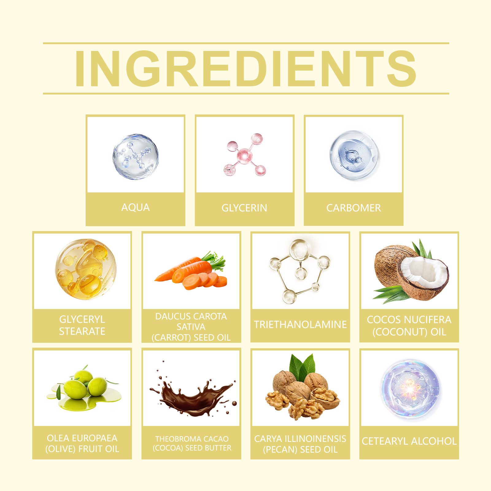 我们的户外轻透助黑霜,由橄榄油、可可脂、核桃油精心调配而成。专为深层滋养肌肤,保持肌肤柔软设计。使用方法极为便捷:清洁皮肤并保持干燥。将适量本品均匀涂抹于身体皮肤上。轻轻按摩以促进吸收。并且质地轻盈,易于均匀涂抹。