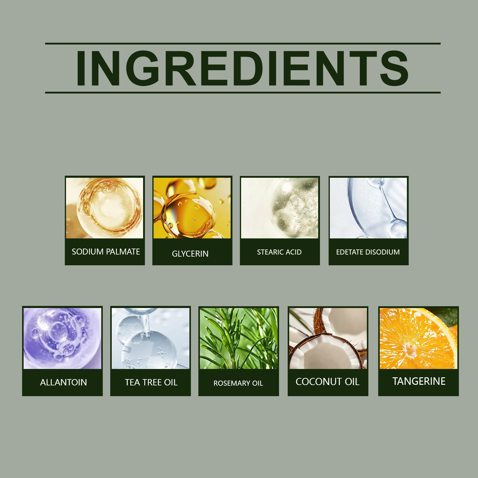 我们的茶树油香皂,由互生叶白千层叶油、迷迭香叶油、椰子油精心调配而成。专为调节皮肤油脂,有效减少痤疮设计。使用方法极为便捷:将身体和肥皂弄湿,在手掌上轻轻揉搓肥皂以产生泡沫,然后将泡沫涂抹在皮肤上,轻轻按摩并清洁皮肤2-3分钟,然后用清水冲洗。并且可以为皮肤提供舒适清爽的感觉。