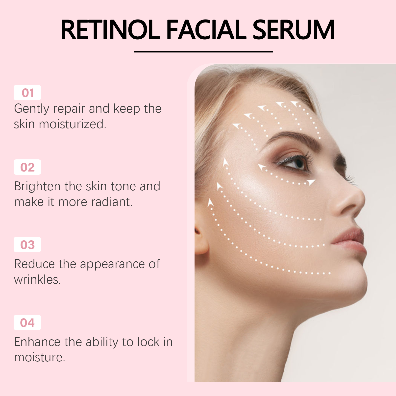 我们的视黄醇保湿面部精华液,由羟乙基纤维素、生育酚(维生素E)、视黄醇精心调配而成。专为减少皱纹问题,改善皮肤状况设计。使用方法极为便捷:清洁和调理后,取适量精华液,均匀涂抹于面部肌肤上。轻轻打圈按摩,促进吸收。并且可以长期使用,皮肤水分显著提高。