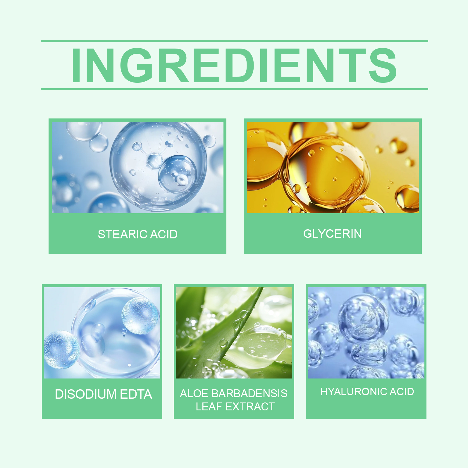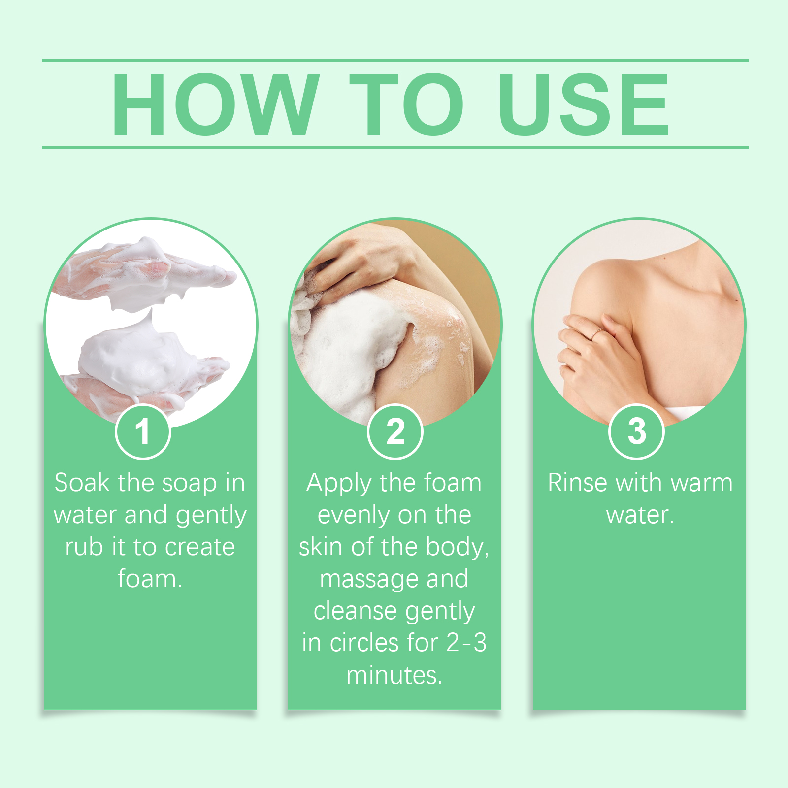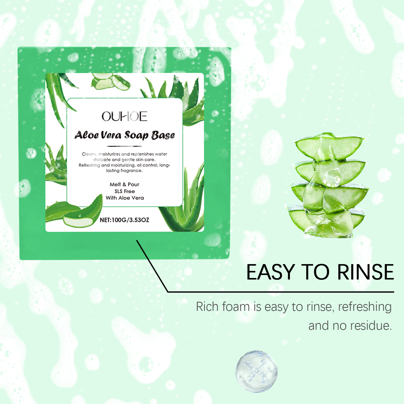 我们的芦荟温和清洁皂,由硬脂酸、甘油、EDTA二钠精心调配而成。专为清洁后皮肤感觉柔软细腻设计。使用方法极为便捷:将肥皂浸泡在水中并轻轻揉搓以产生泡沫。将泡沫均匀涂抹在身体皮肤上,以打圈方式轻柔按摩和清洁2-3分钟。用温水冲洗。并且细腻的泡沫包裹肌肤可以带来清爽体验。轻盈的泡沫触感顺渭清洁更细致。洗后清爽不紧绷,皮肤更加滋润。