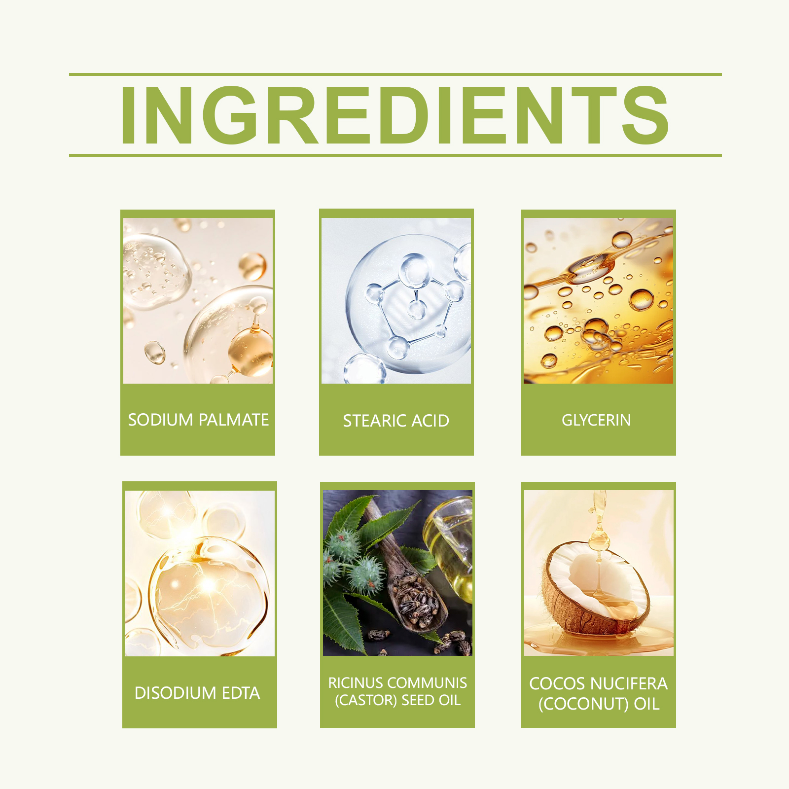我们的蓖麻油洗发皂,由棕榈油酸钠、硬脂酸精心调配而成。专为深层滋润和修复头发,改善头发的健康和光泽设计。使用方法极为便捷:用清水湿润头发和头皮。将适量的该产品揉入手心形成泡沫,然后将其涂抹在头发和头皮上,按摩3-5分钟。用清水冲洗干净。并且它可以富含滋养成分,温和滋养头皮和头发。抗氧化成分保护头发免受自由基损伤。